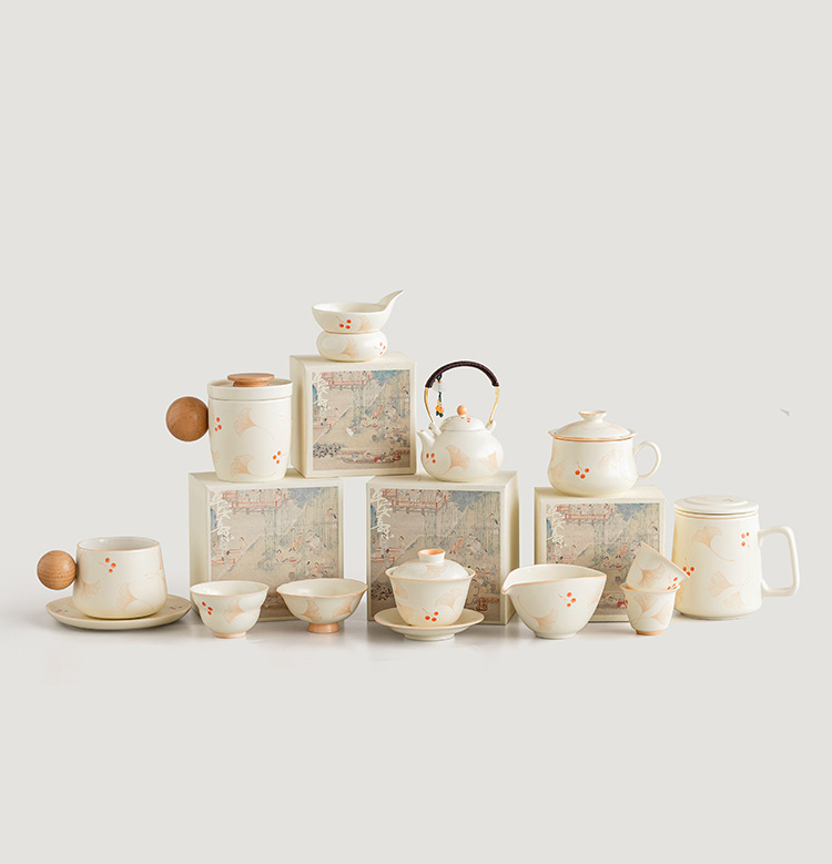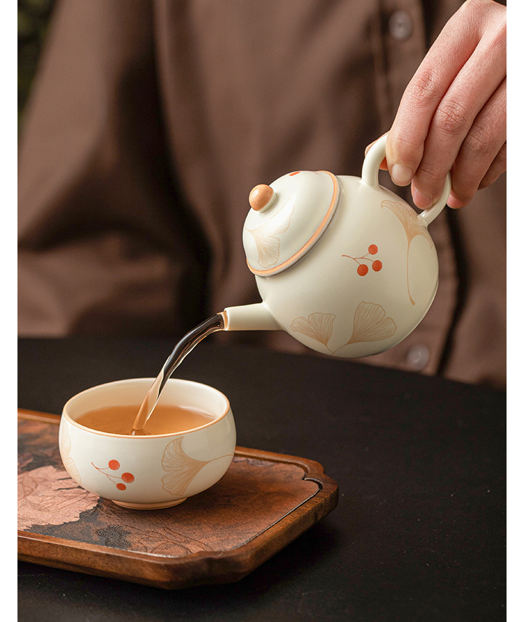 - Cốc trà bạch quả màu be, ấm trà, lọc trà, tách trà, tách trà, cốc chủ nhân, bộ trà gốm sứ tươi trẻ, sản phẩm duy nhất