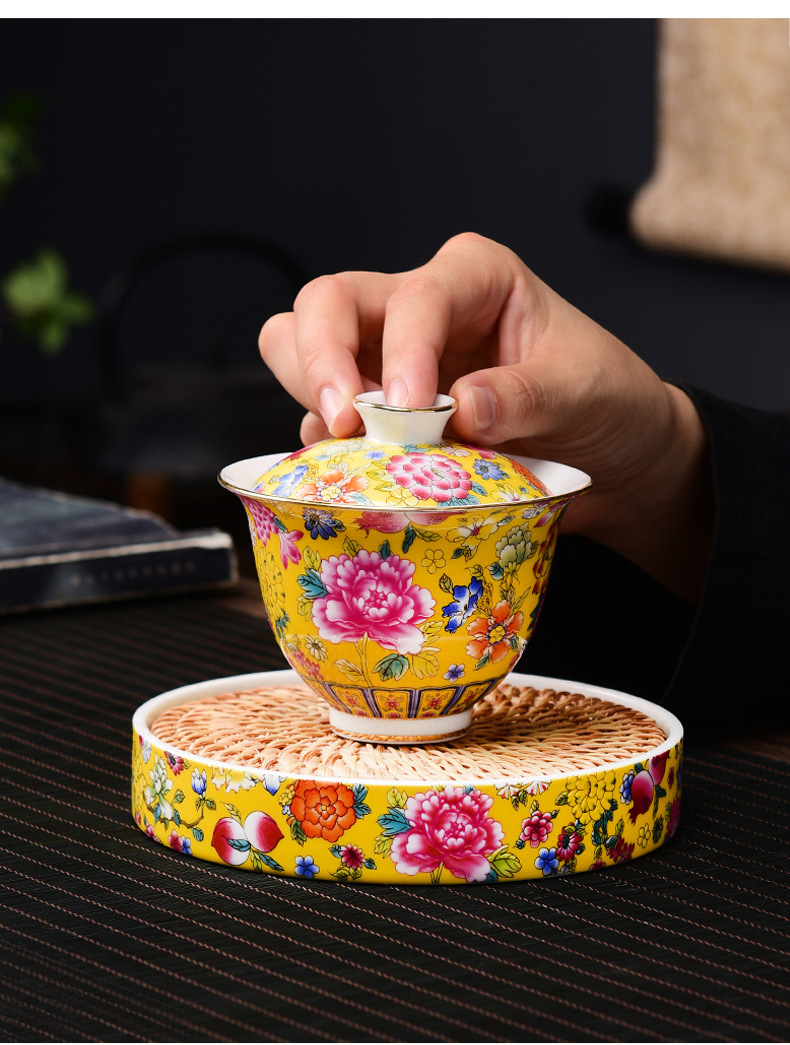 - Cốc trà bát có nắp tam tài tráng men đơn gốm sứ Jingdezhen bộ trà bát trà bộ bán buôn gia dụng