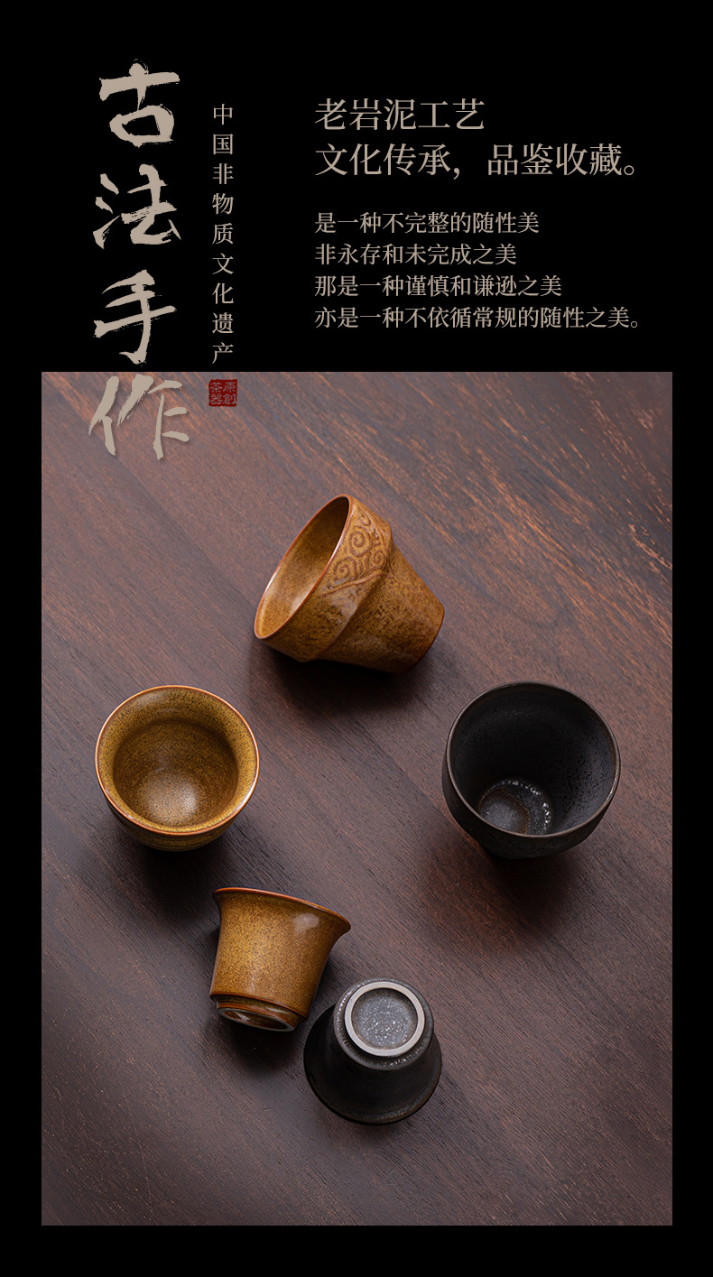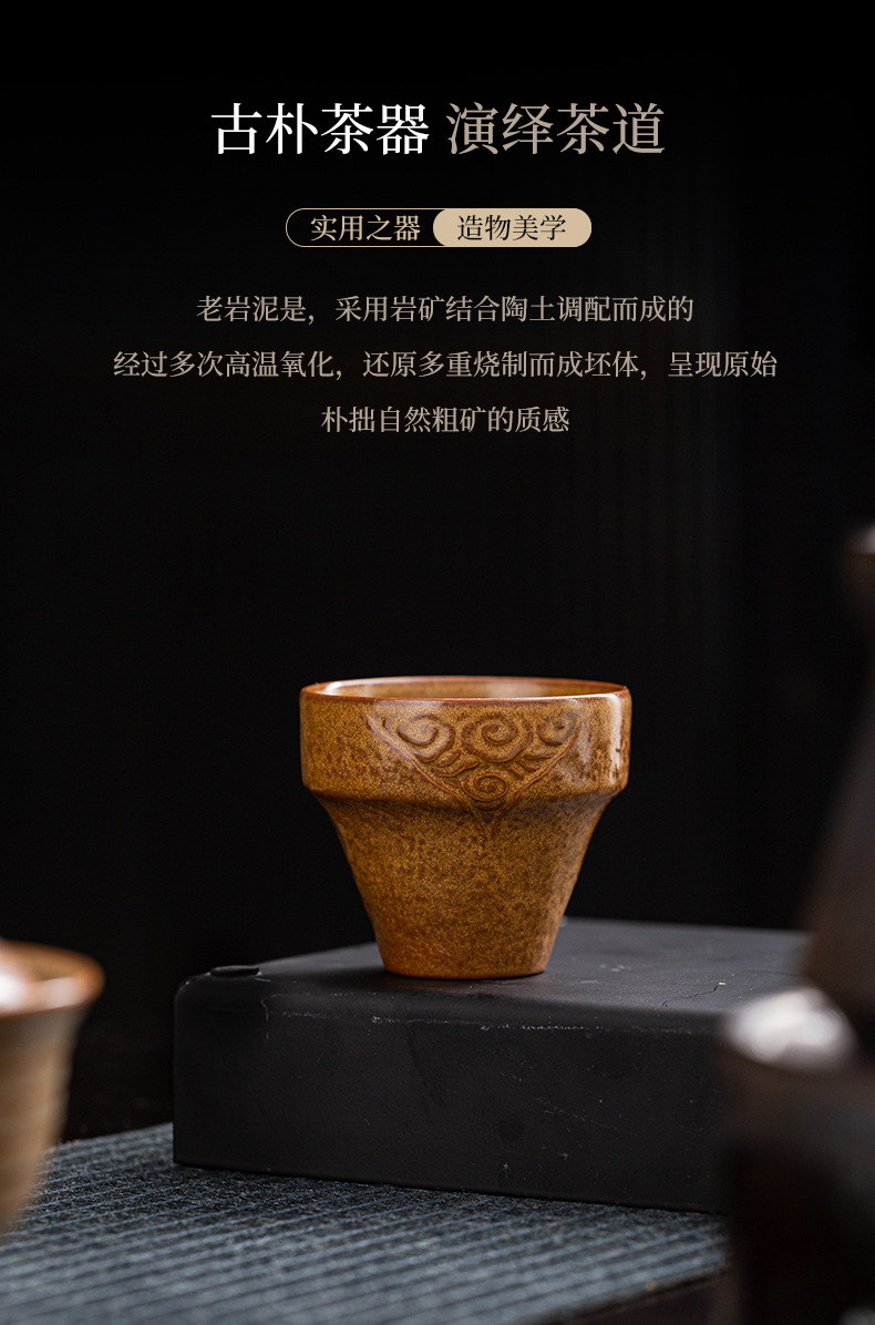 Cốc trà bùn đá cũ, cốc móng ngựa, cốc có ren, cốc đám mây tốt lành, cốc nhỏ uống trà gia dụng cổ điển, cốc đơn, hộp quà trà