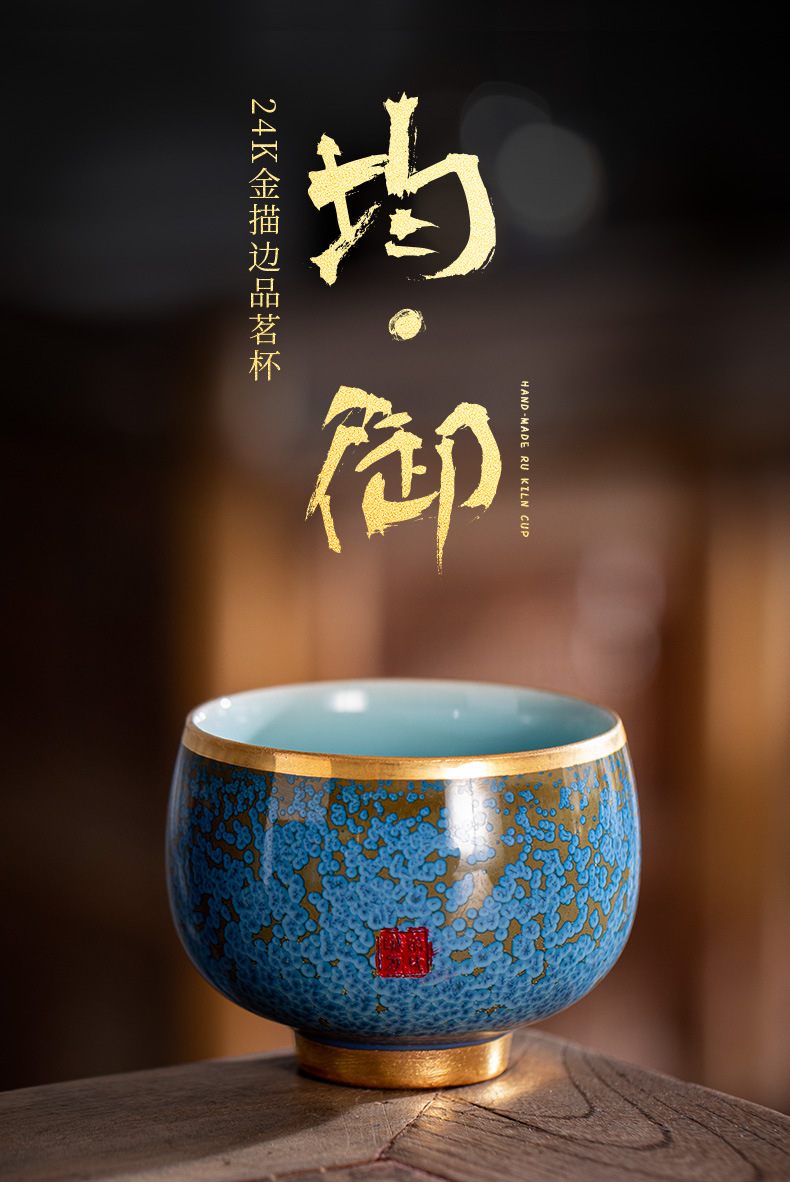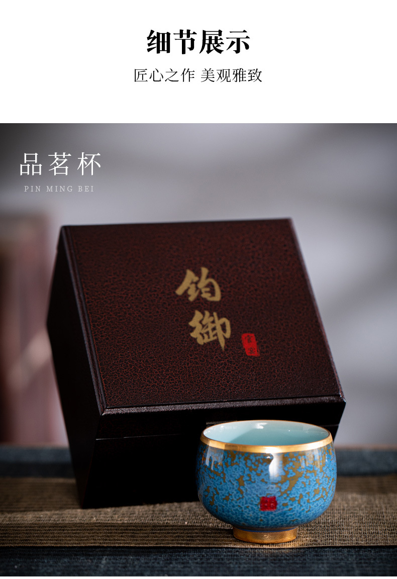 - Cốc trà cá nhân nam mạ vàng xây cốc chủ cao cấp cốc đơn bộ trà Kung Fu hộp quà gốm sứ