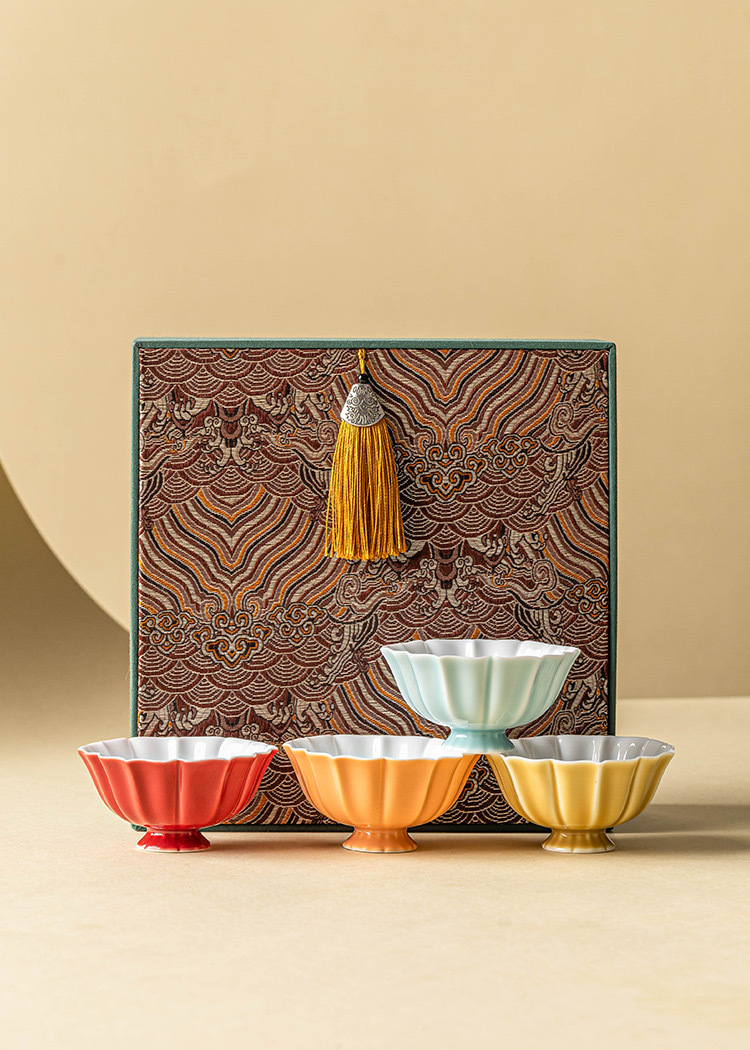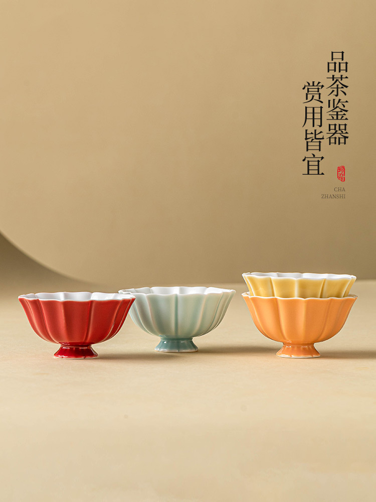 Cốc trà cánh sen chân cao cốc sứ cốc chủ nhân cốc trà nhỏ cổ điển kiểu Trung Quốc cốc trà đãi khách gia dụng hộp quà