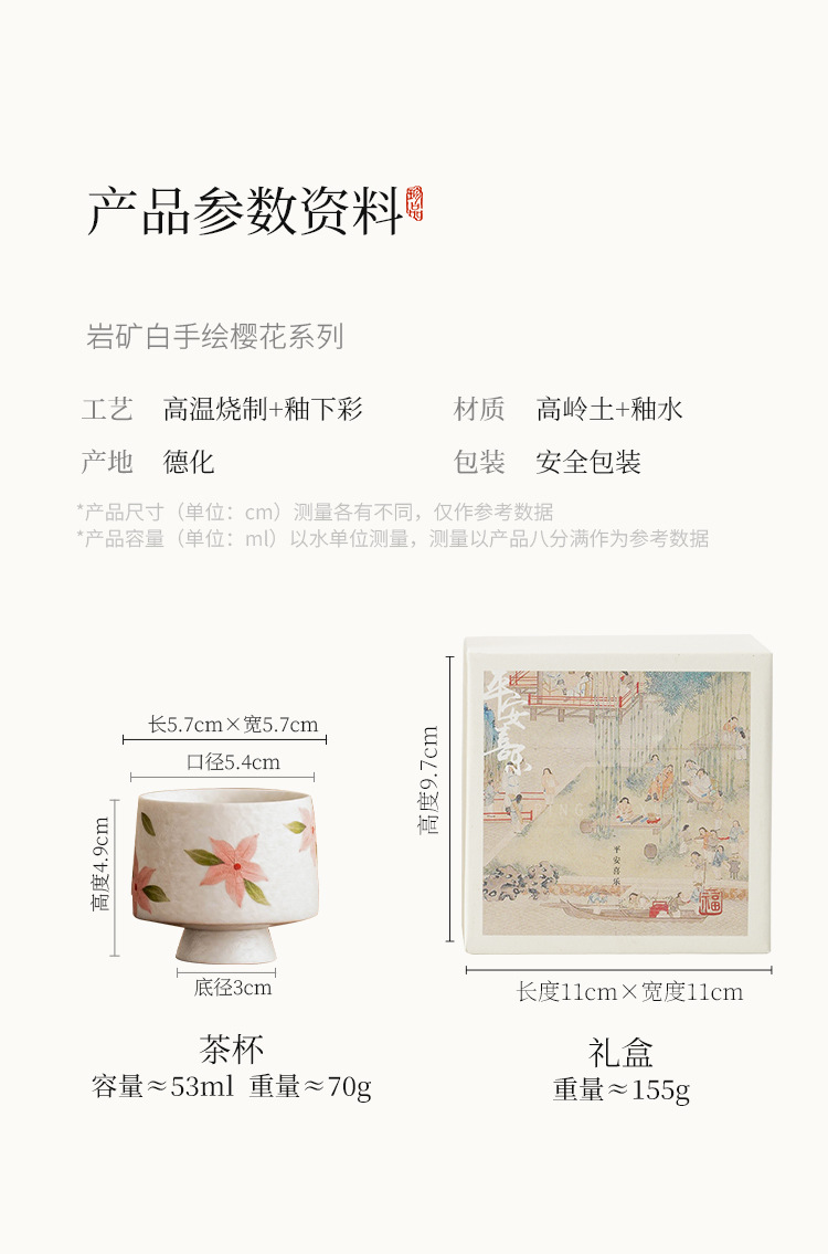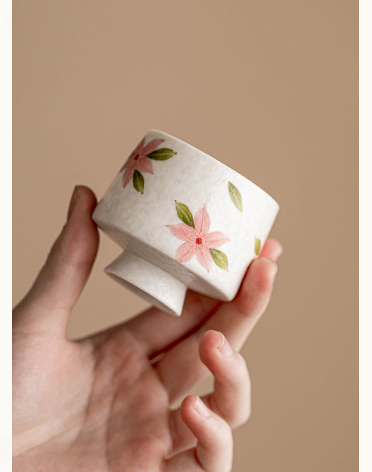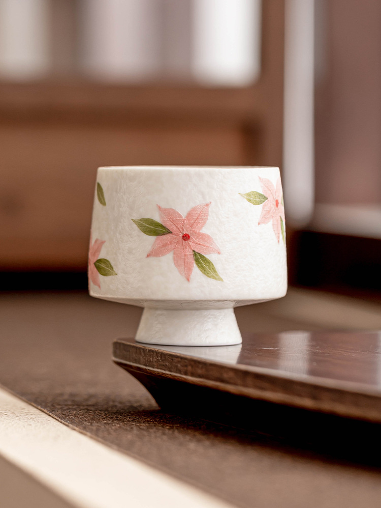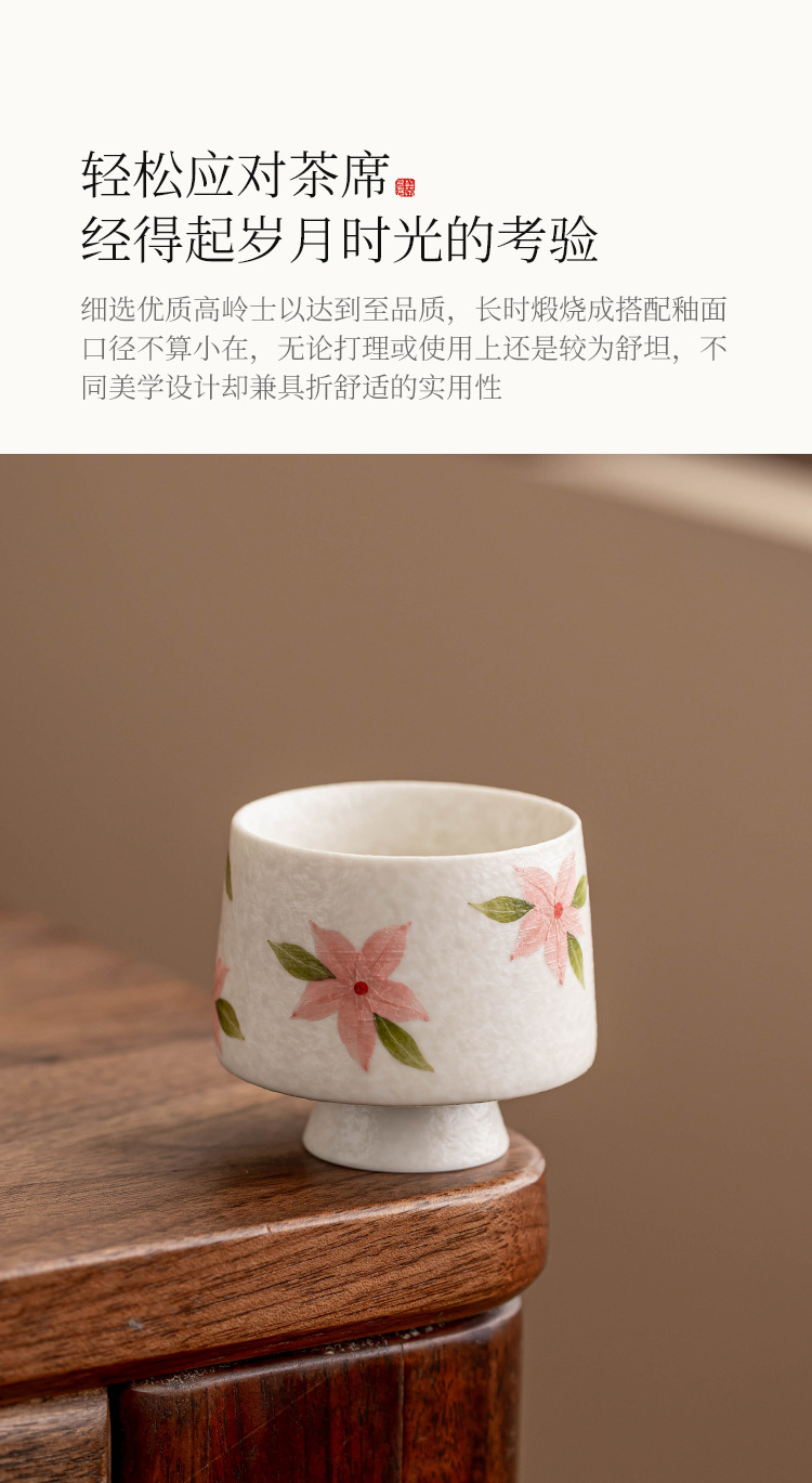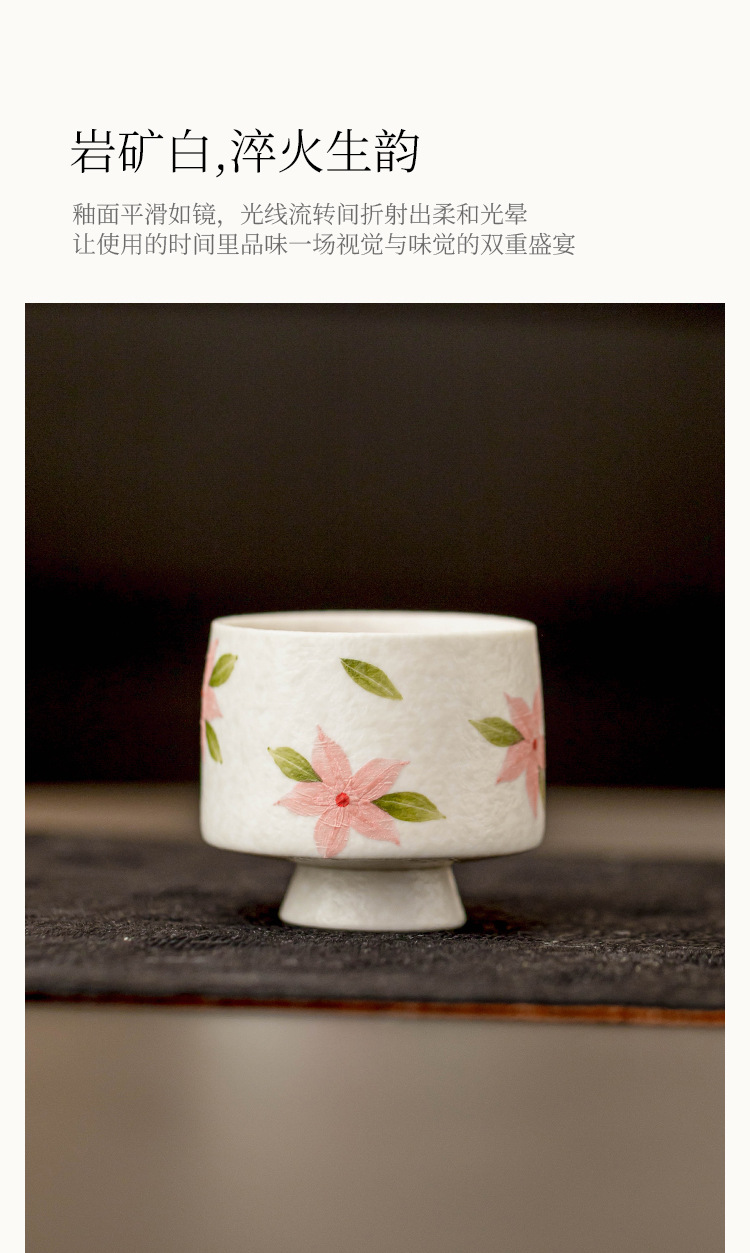Cốc trà chân cao hoa anh đào trắng mỏ đá, cốc trà gốm sứ, cốc trà kiểu Trung Quốc mới, bộ trà Kung Fu, cốc nữ, cốc đơn