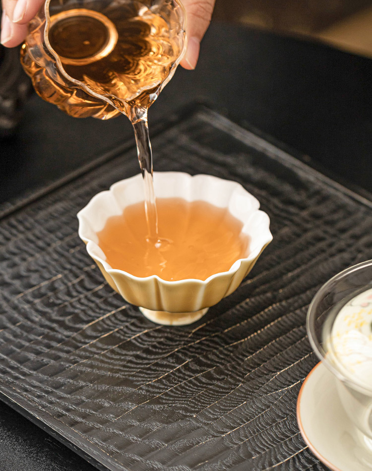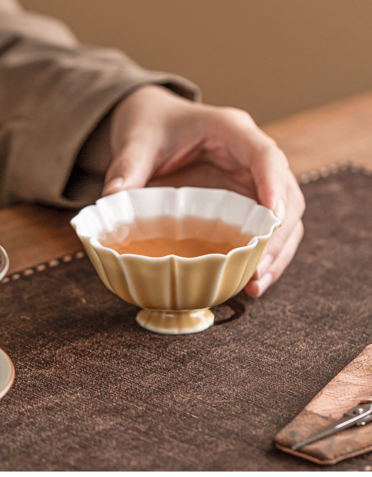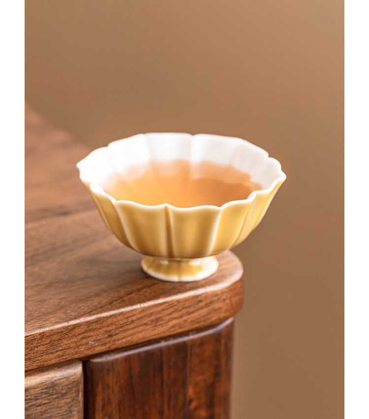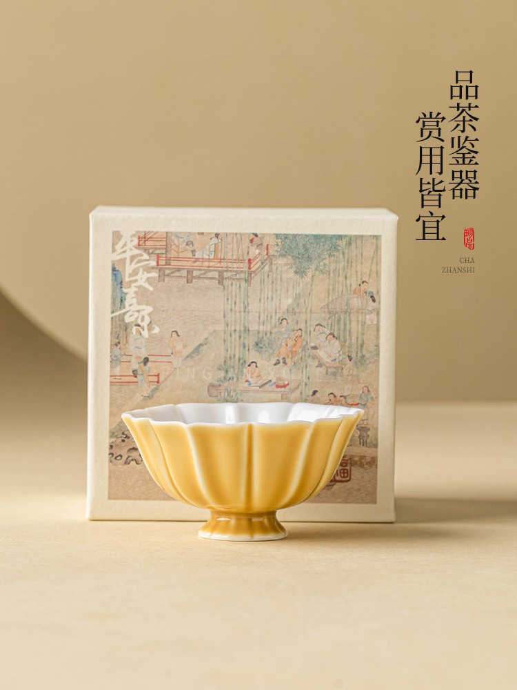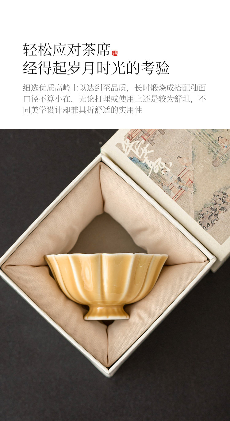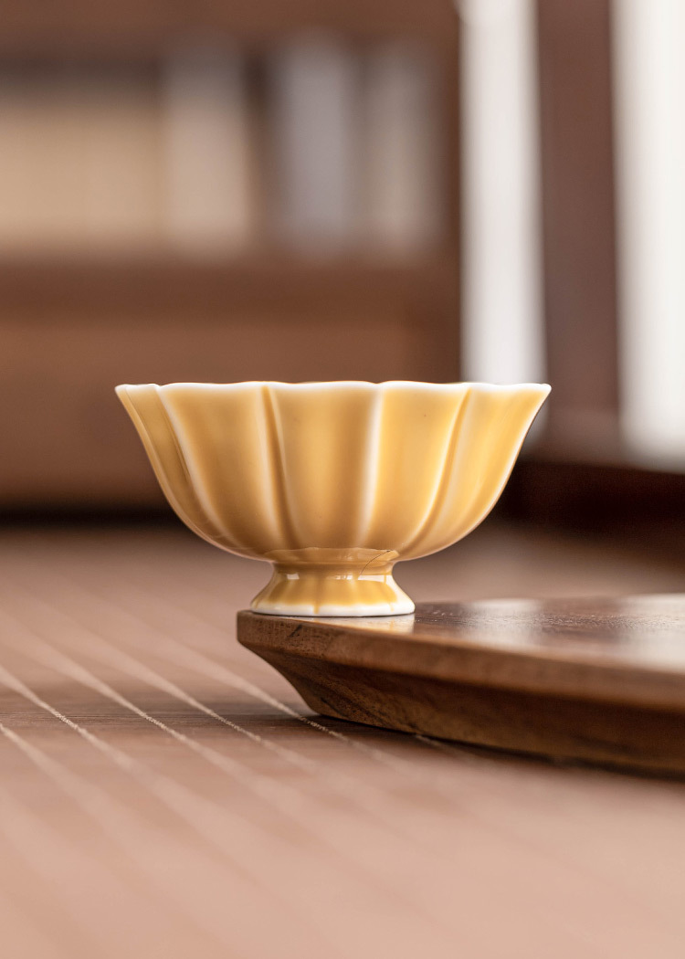- Cốc trà chân cao màu vàng ngỗng cốc chủ nhân gốm cốc đơn bộ trà gia dụng đơn giản cốc trà Kung Fu cốc trà chén trà chén cánh sen