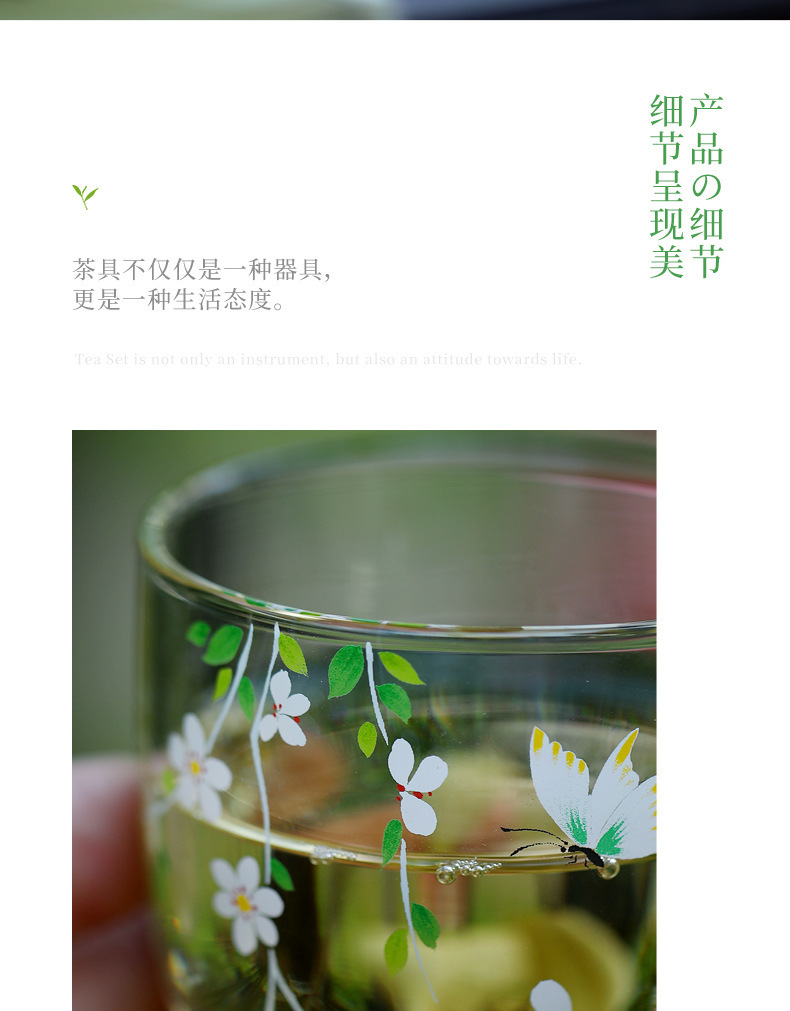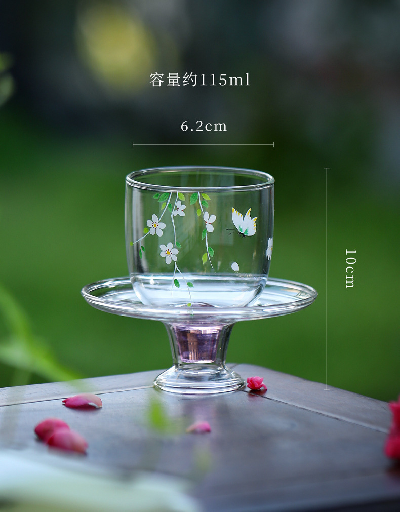 - Cốc trà chân cao thủy tinh chịu nhiệt Huachao tươi mát, bộ trà đặc biệt trà xanh, cốc trà, cốc chủ nhân có khay cốc