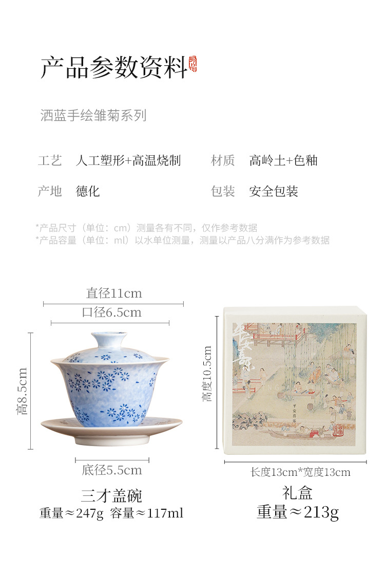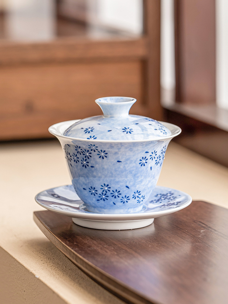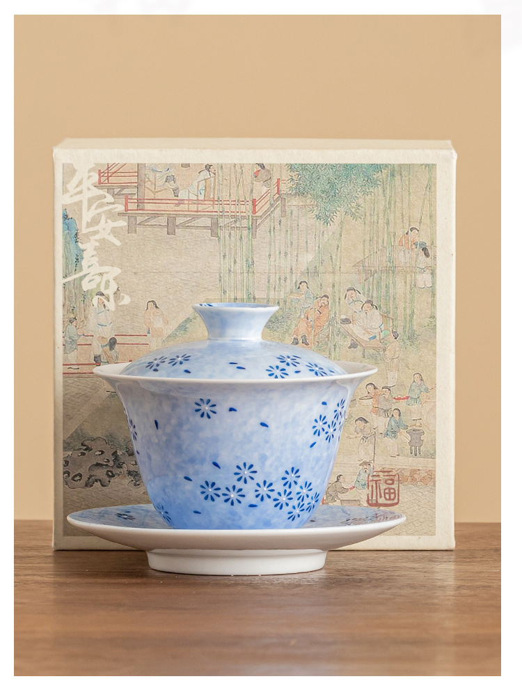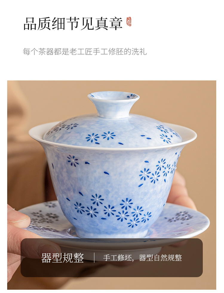 - Cốc trà chén trà chén trà gốm vẽ tay tinh xảo tam tài cao cấp có nắp bộ trà kungfu dùng trong gia đình
