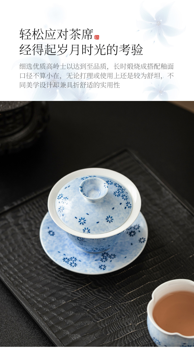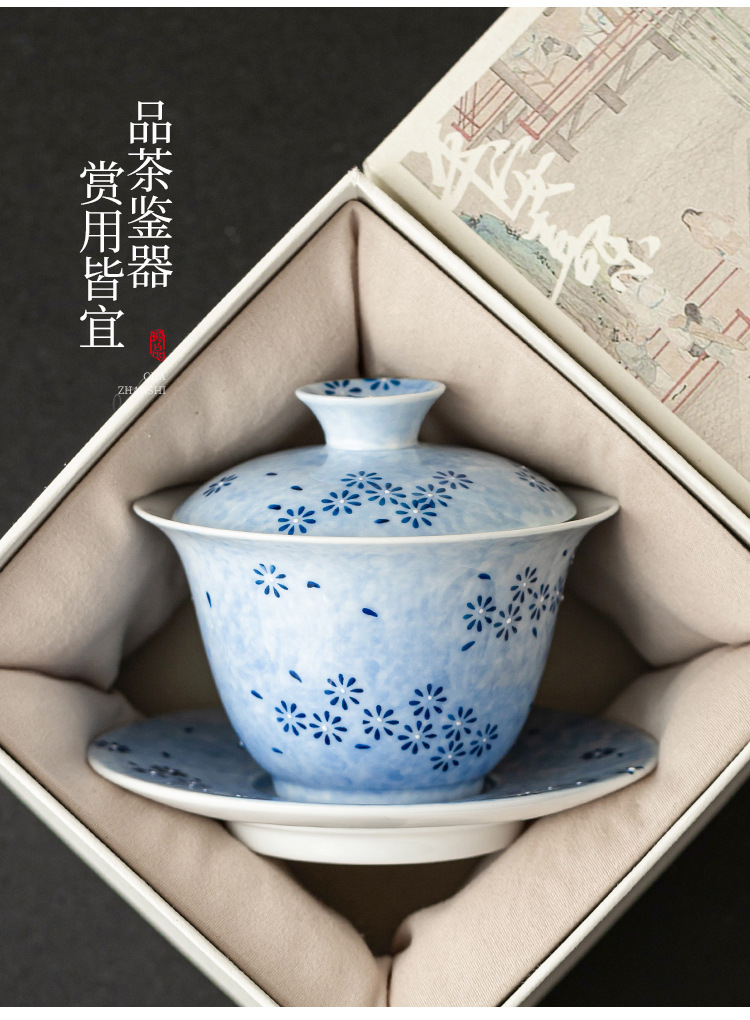 Cốc trà chén trà chén trà gốm vẽ tay tinh xảo tam tài cao cấp có nắp bộ trà kungfu dùng trong gia đình