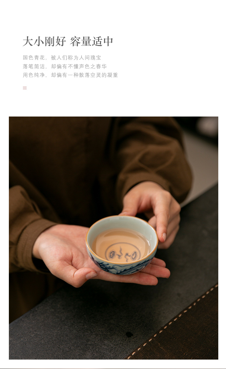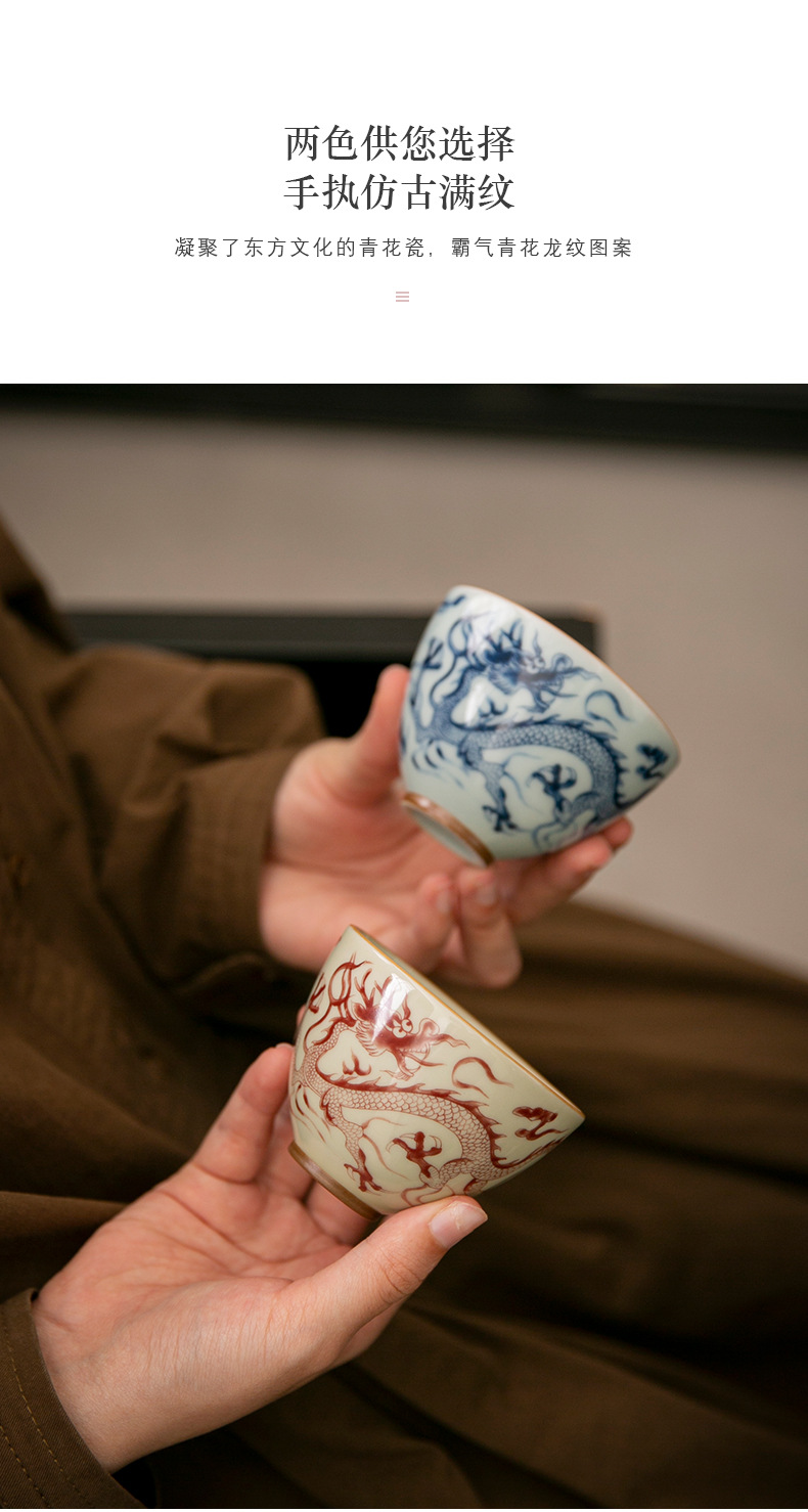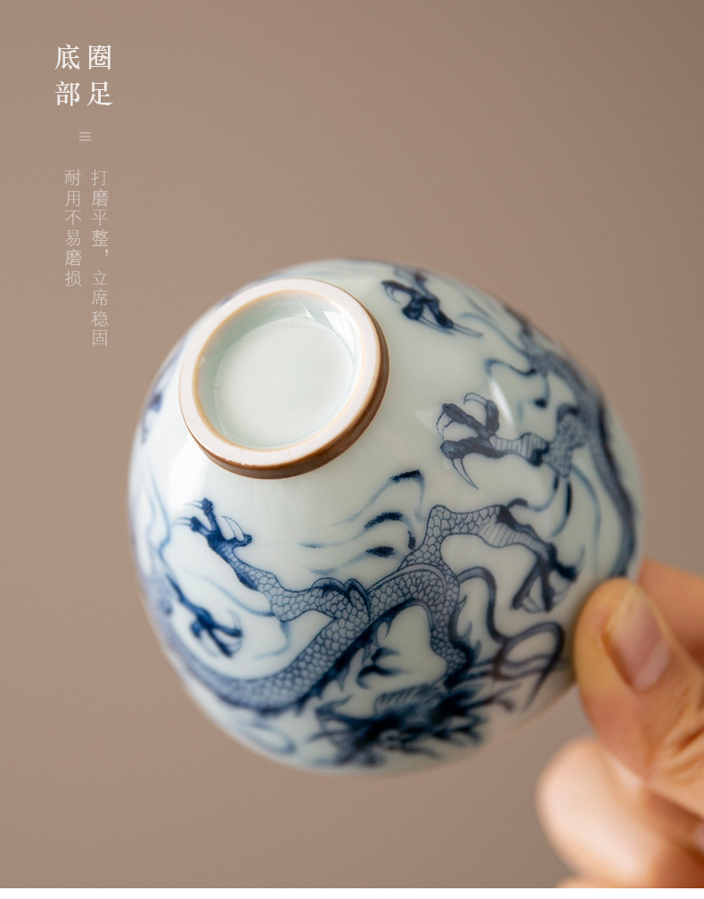 - Cốc trà cổ hình rồng xanh trắng cốc chủ nhân cốc trà Phổ Nhĩ gốm sứ gia dụng dụng dụng cụ trà Kung Fu tách trà cao cấp chuyên dụng cá nhân