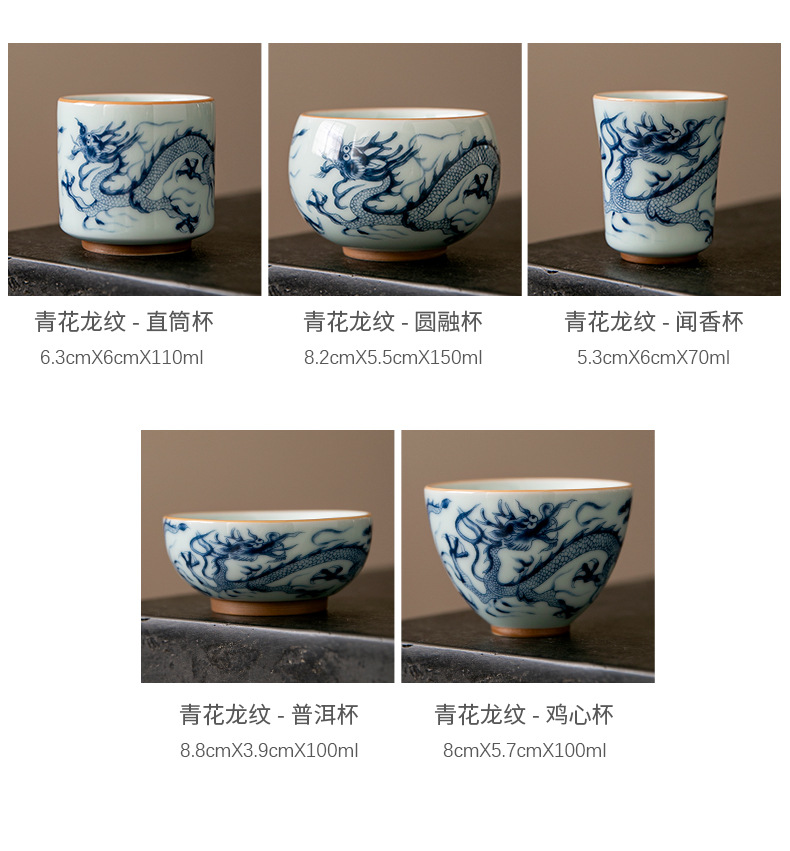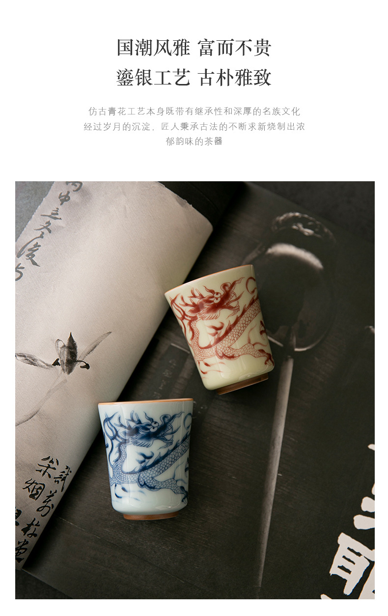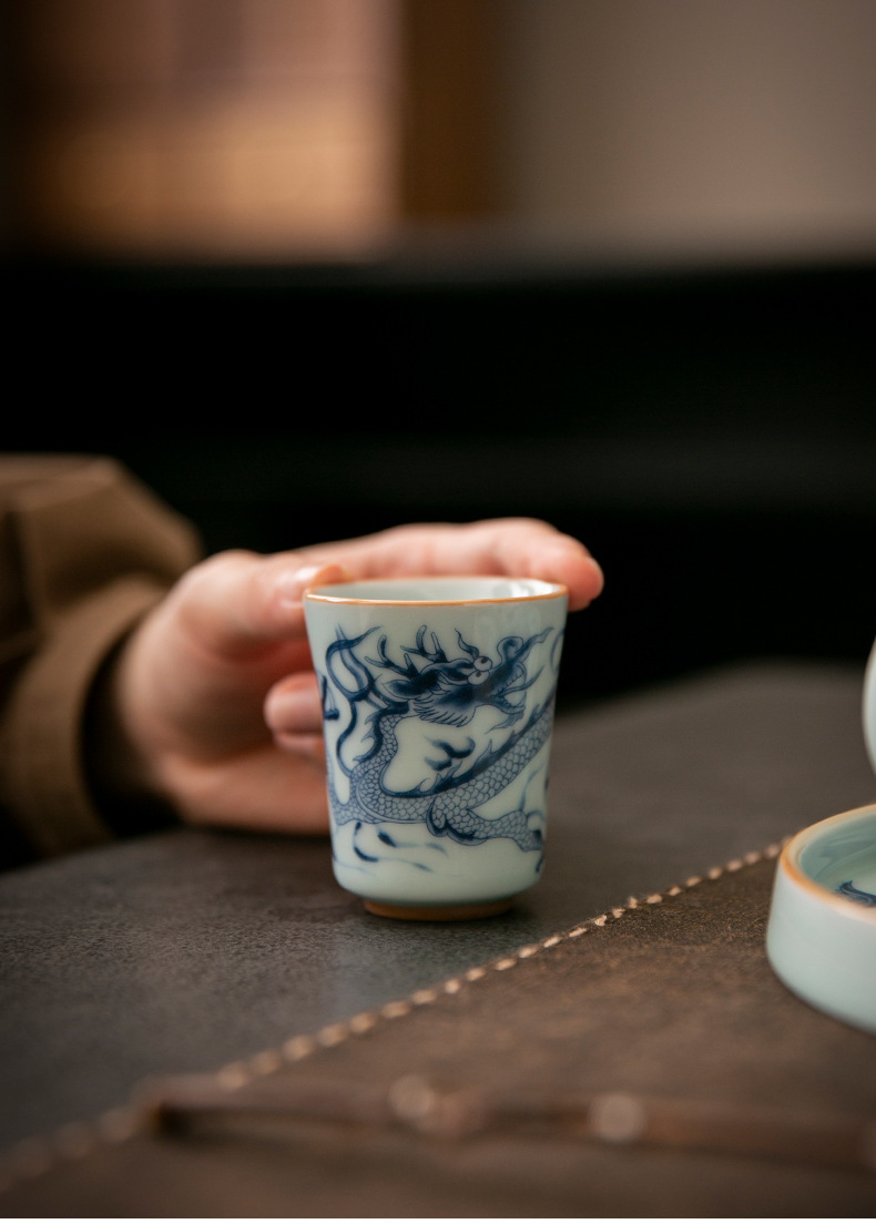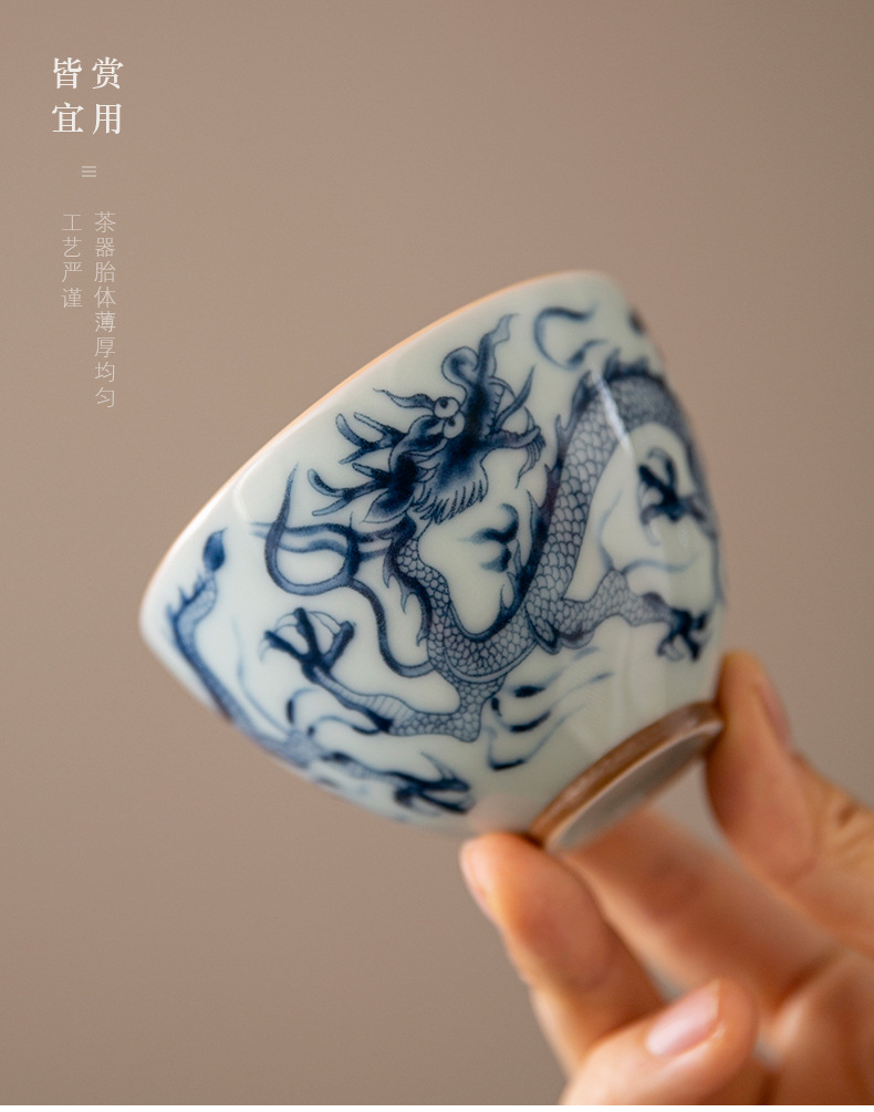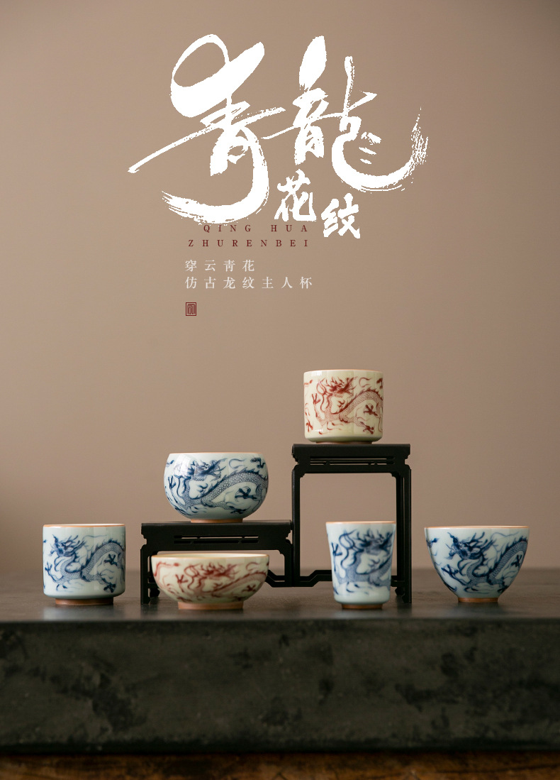 Cốc trà cổ hình rồng xanh trắng cốc chủ nhân cốc trà Phổ Nhĩ gốm sứ gia dụng dụng dụng cụ trà Kung Fu tách trà cao cấp chuyên dụng cá nhân
