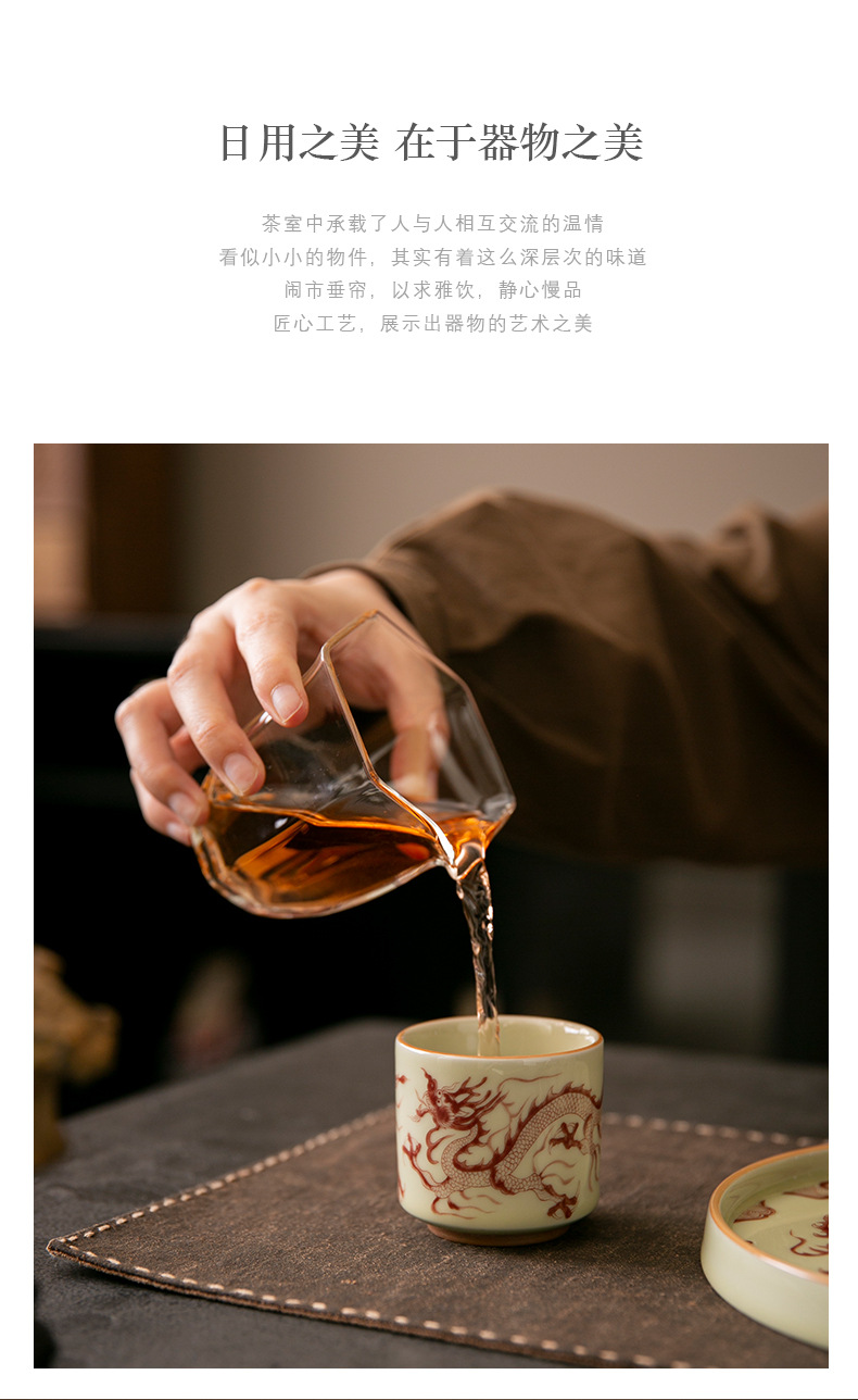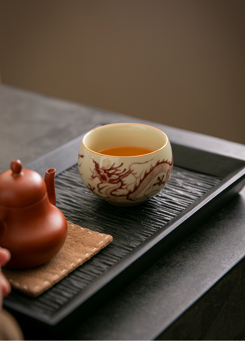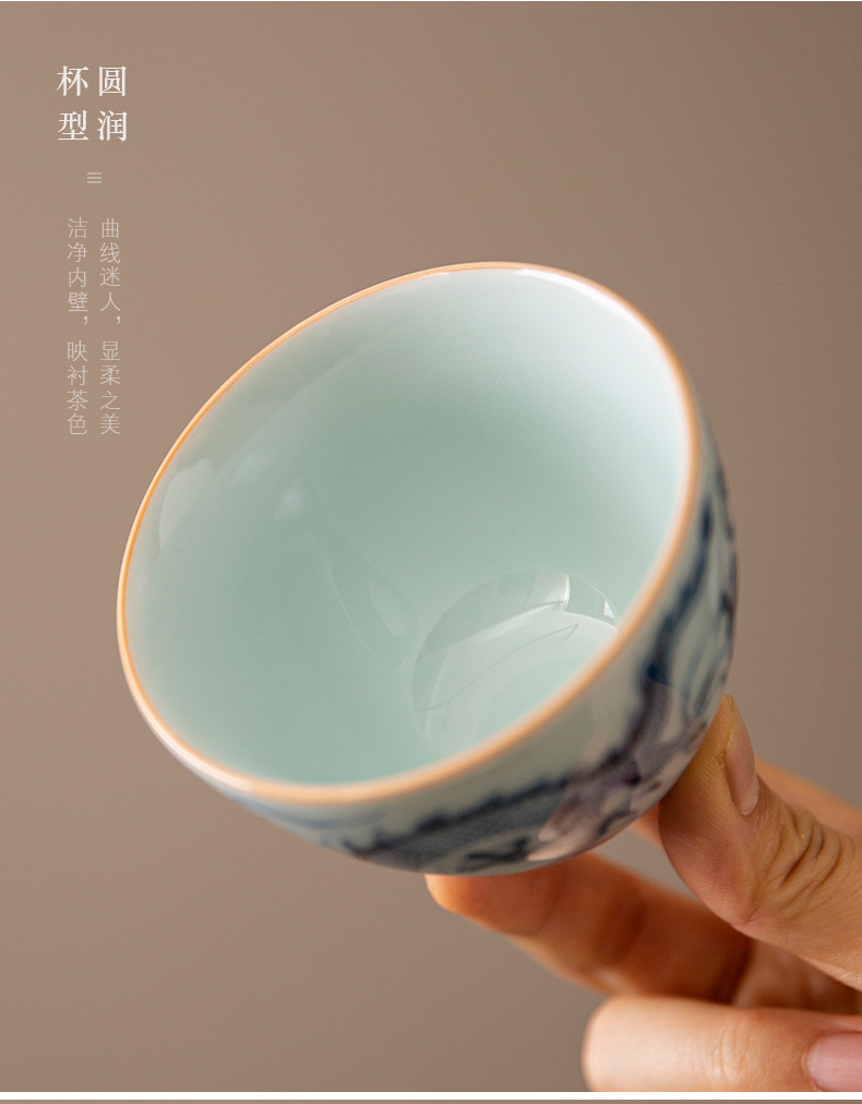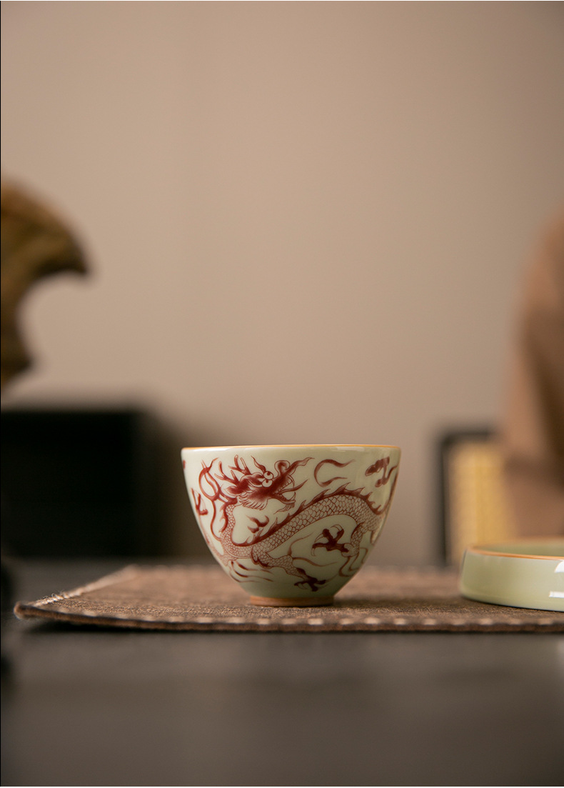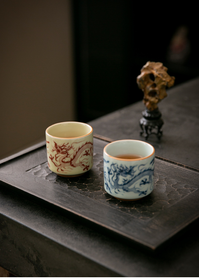 Cốc trà cổ hình rồng xanh trắng cốc chủ nhân cốc trà Phổ Nhĩ gốm sứ gia dụng dụng dụng cụ trà Kung Fu tách trà cao cấp chuyên dụng cá nhân
