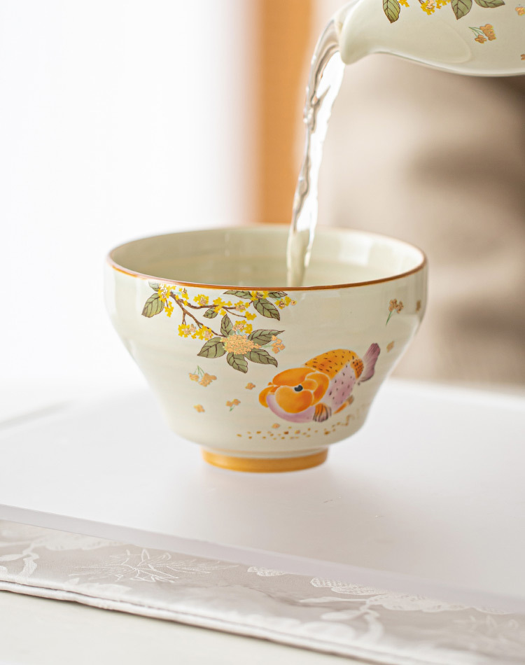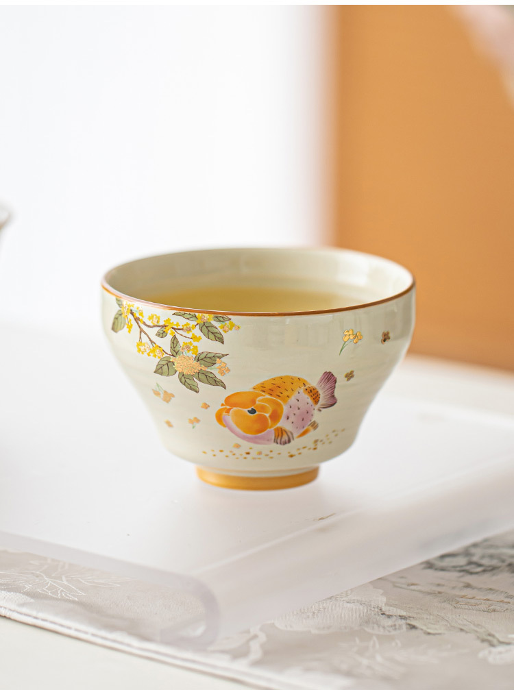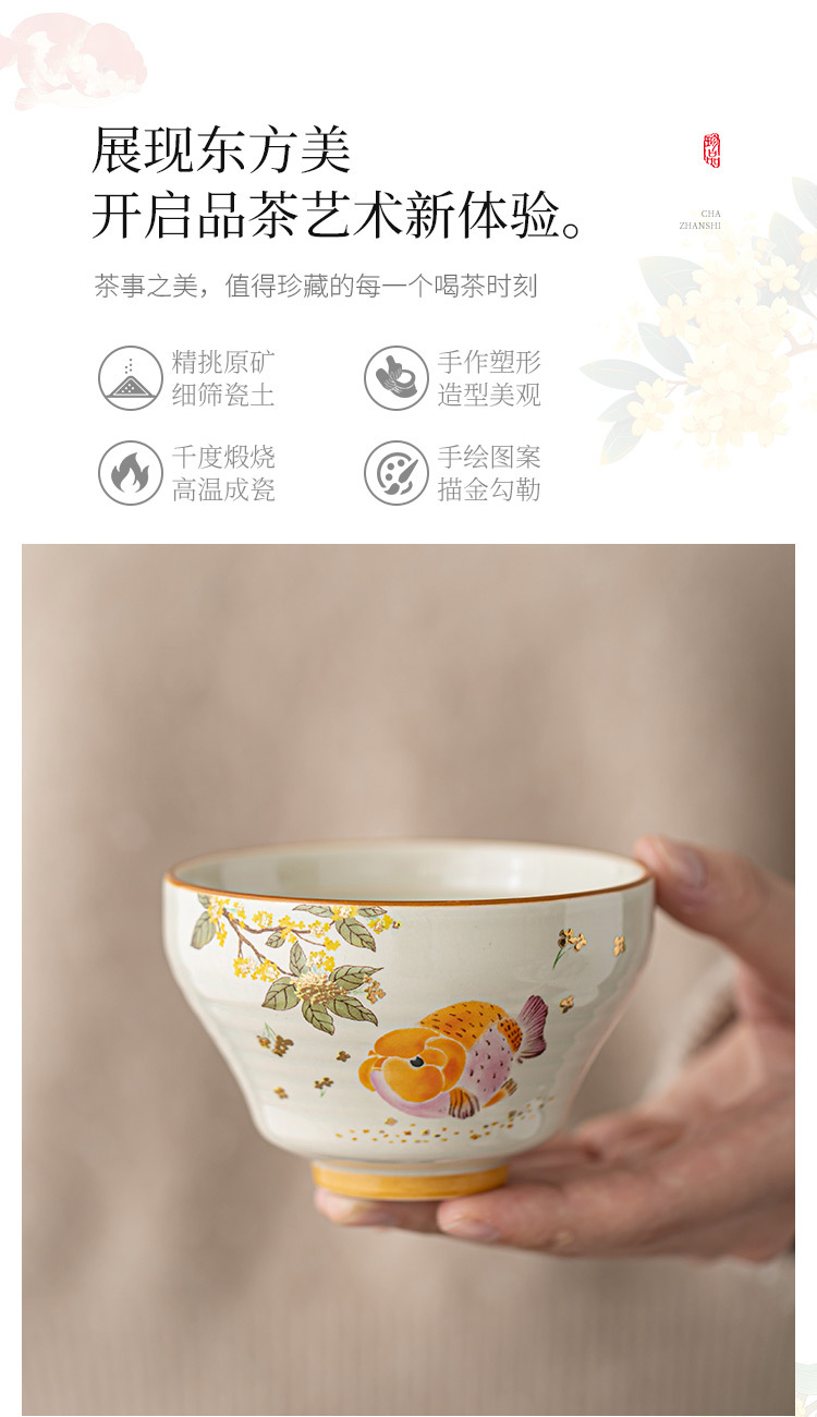 Cốc trà cổ màu xám thực vật cốc chủ nhân cá vàng osmanthus cốc cổ trăng cốc trà gia dụng cỡ lớn cốc chuyên dùng uống trà