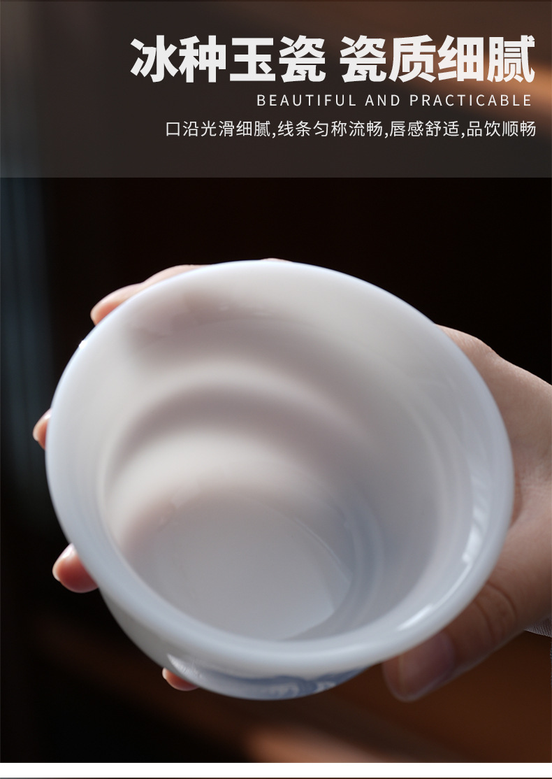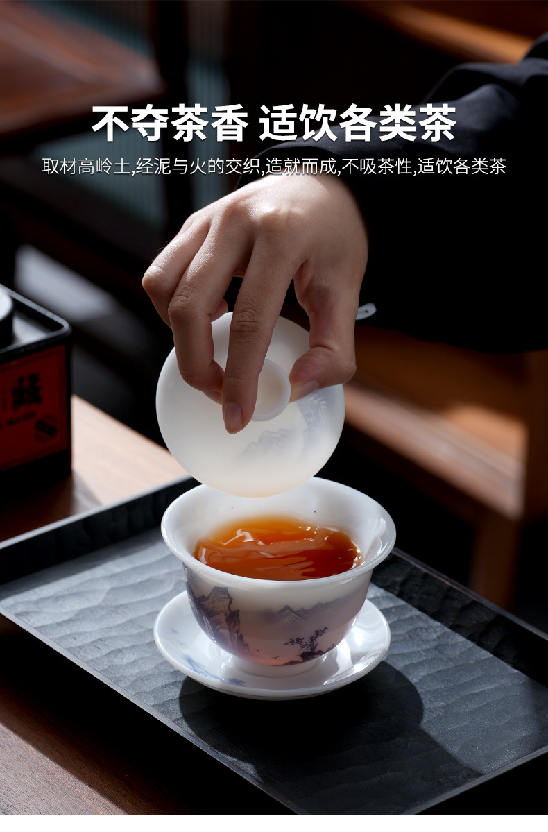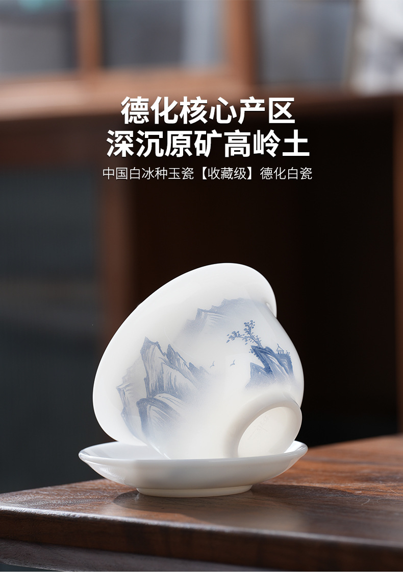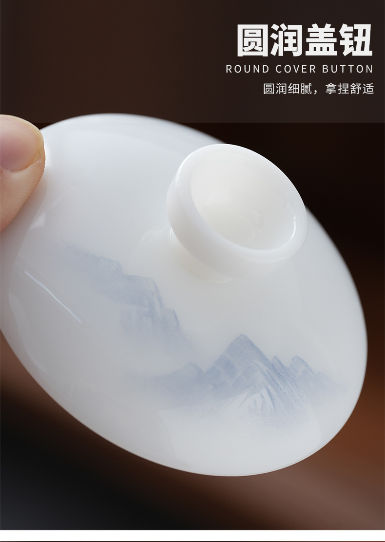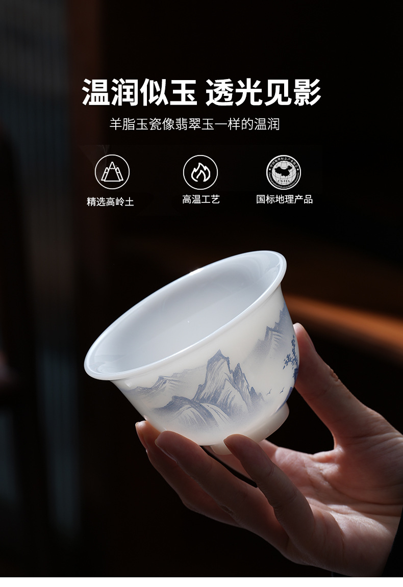 - Cốc trà có nắp sứ trắng vẽ tay cao cấp, bát trà hồng phong cảnh đơn, cốc pha trà ngọc cừu loại đá Đức Hoa