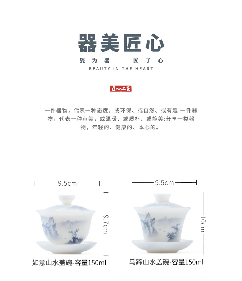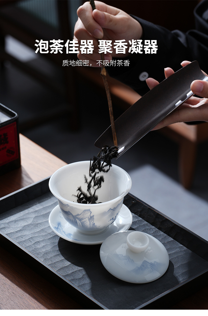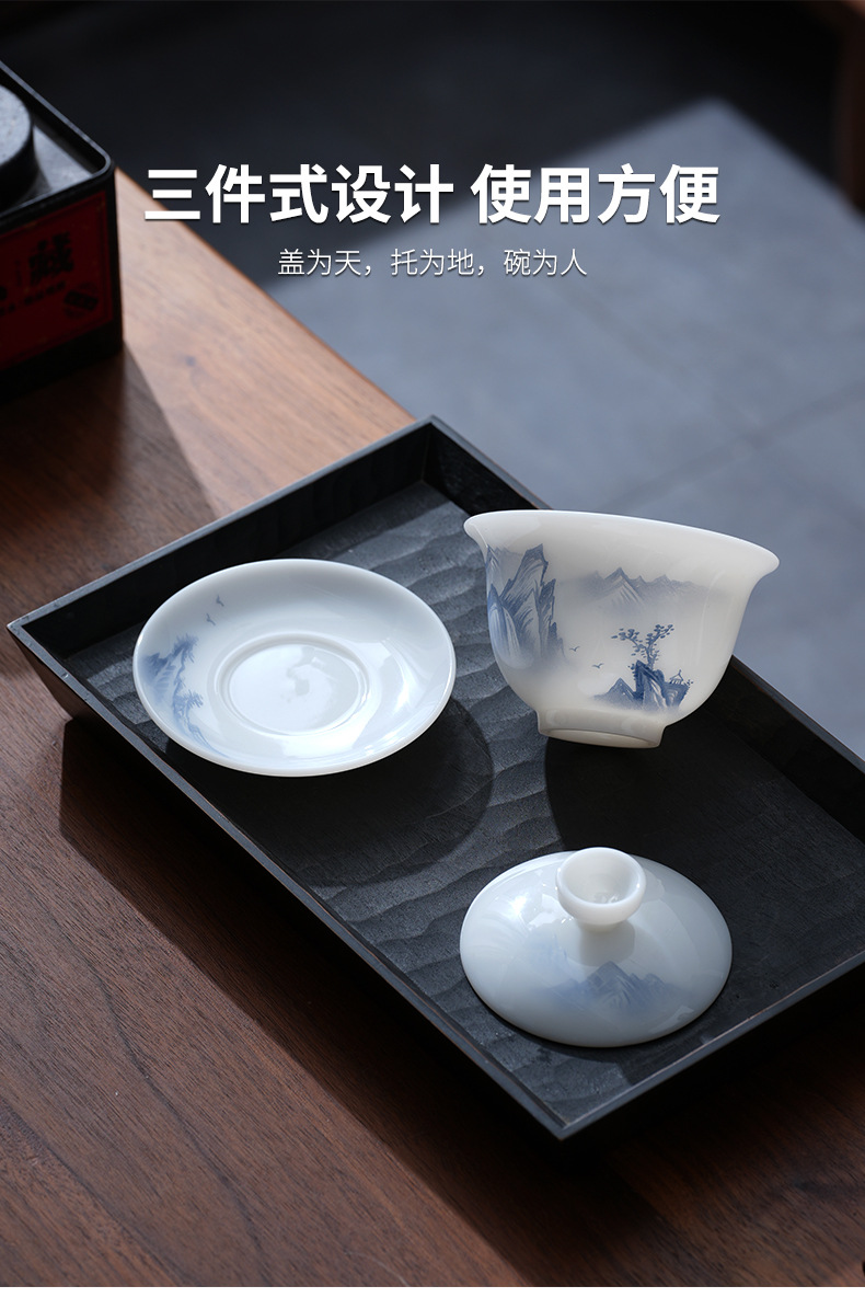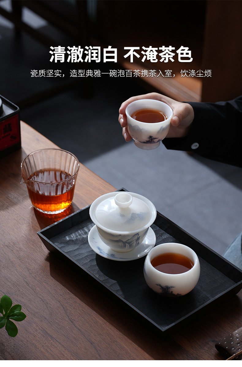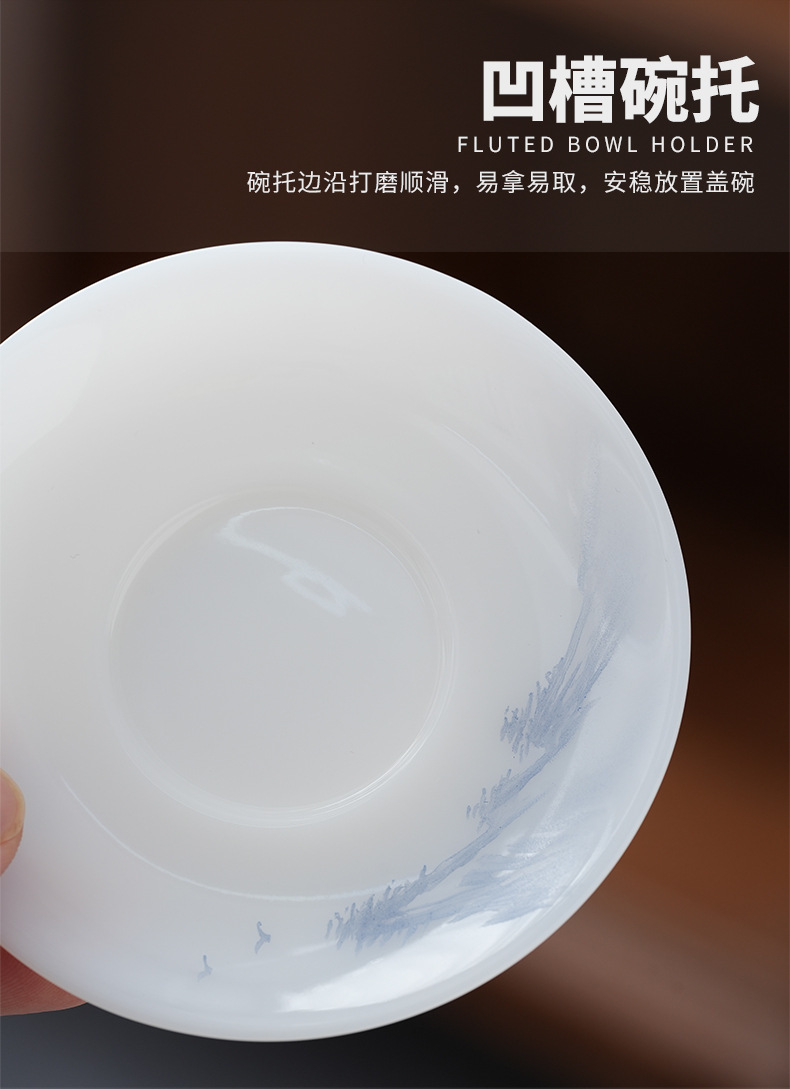 - Cốc trà có nắp sứ trắng vẽ tay cao cấp, bát trà hồng phong cảnh đơn, cốc pha trà ngọc cừu loại đá Đức Hoa