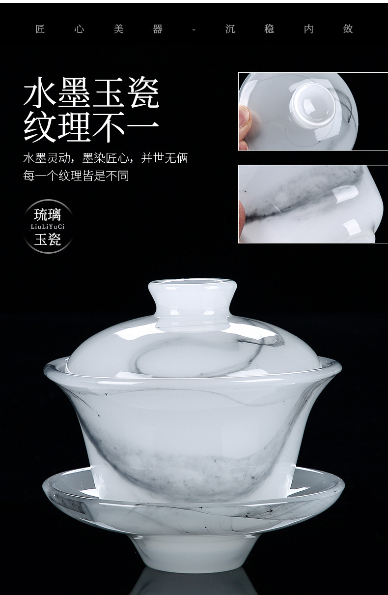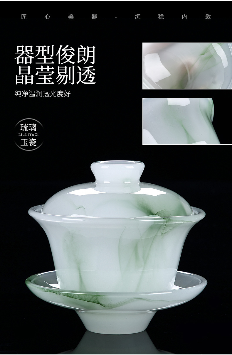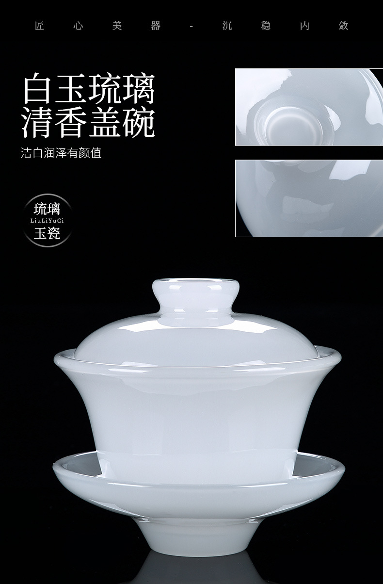 Cốc trà có nắp thủy tinh cốc trà đơn cao cấp lớn bát ba tài công phu bát trà sứ ngọc trắng bộ trà cầm tay
