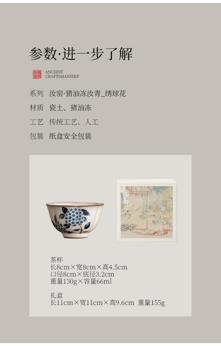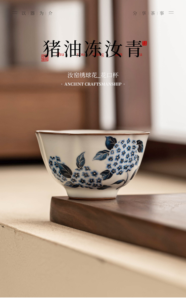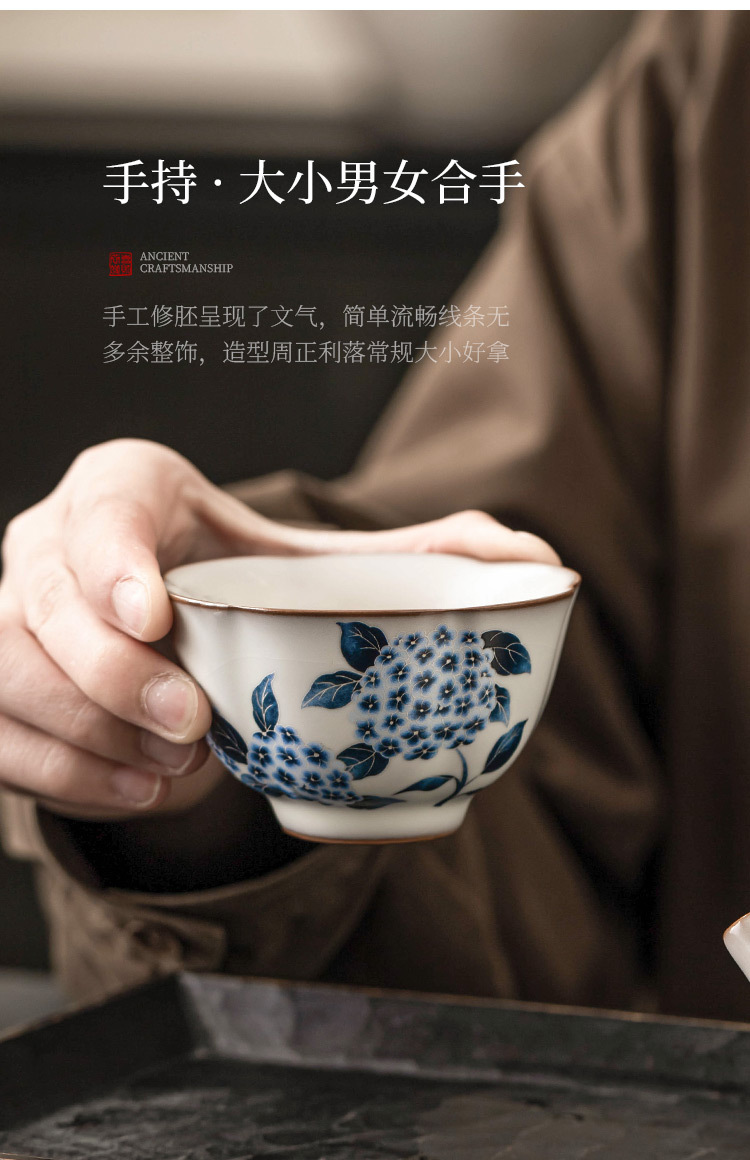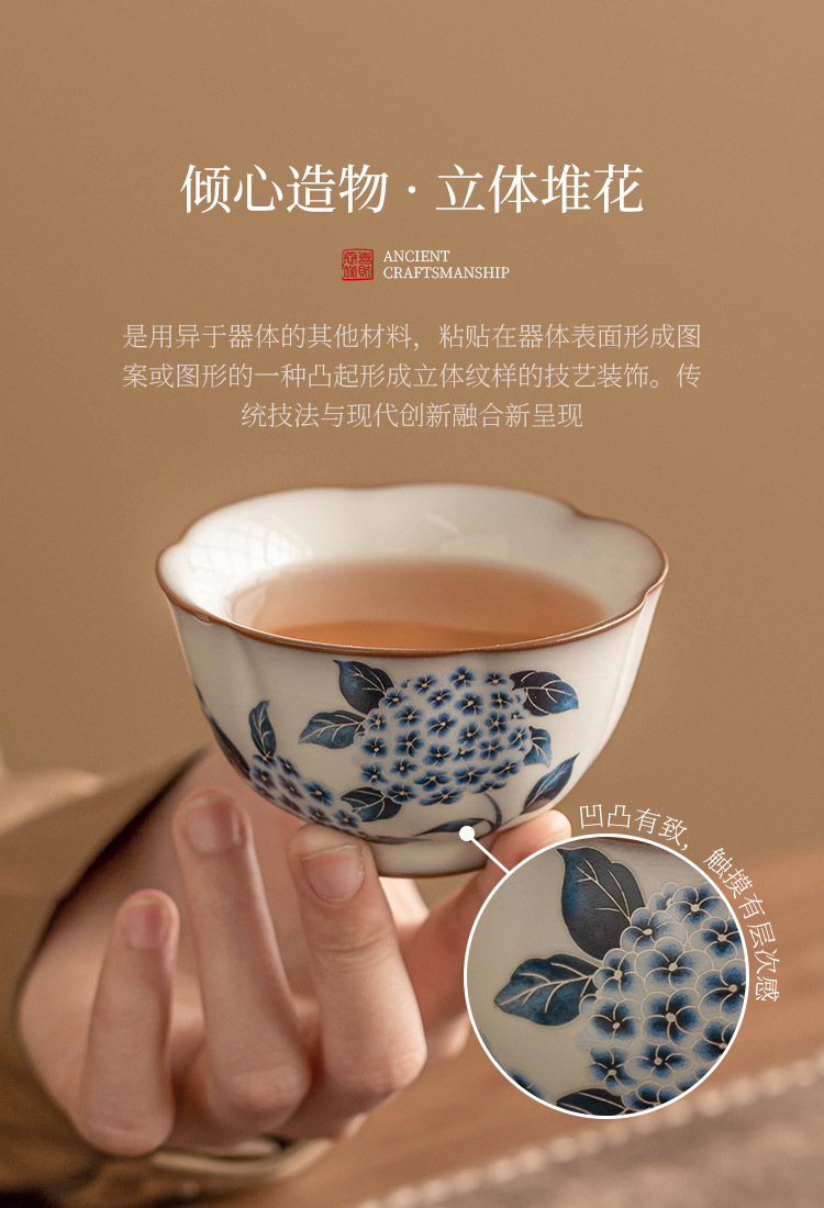 - Cốc trà cổ Ruyao cốc thạch mỡ lợn cốc hoa cẩm tú cầu Ruqing cốc chủ cao cấp cốc đựng trà dung tích lớn