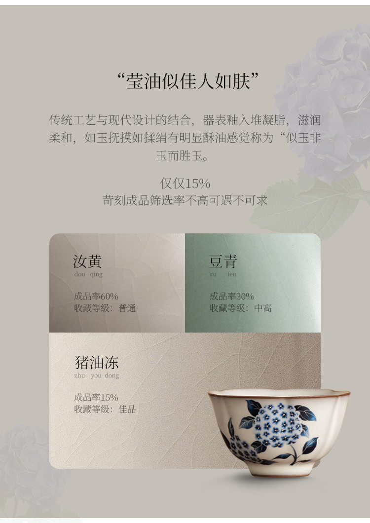 Cốc trà cổ Ruyao cốc thạch mỡ lợn cốc hoa cẩm tú cầu Ruqing cốc chủ cao cấp cốc đựng trà dung tích lớn