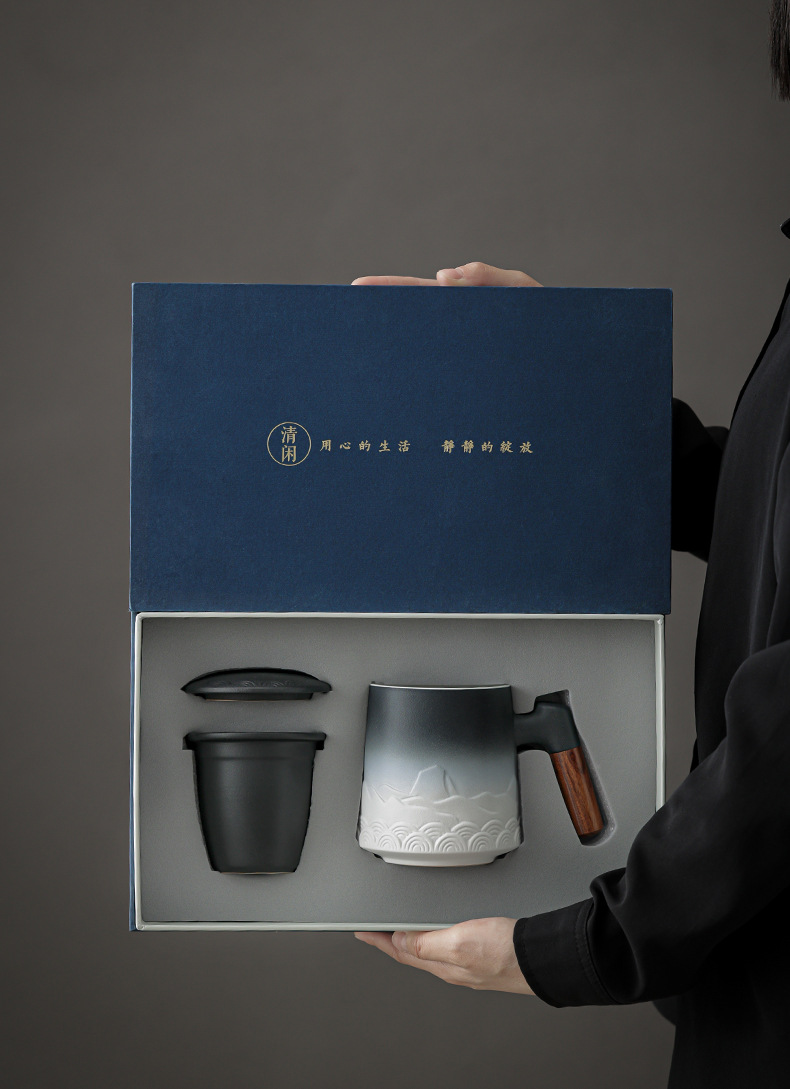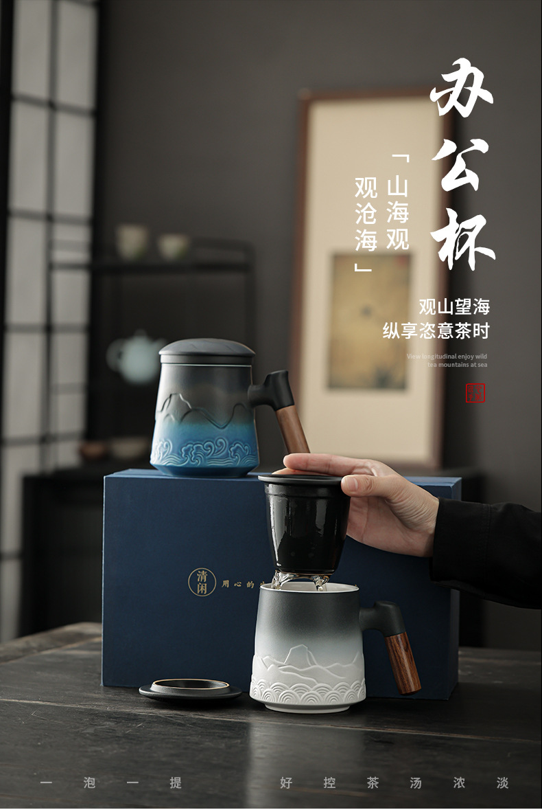 Cốc trà Cốc gốm sứ có nắp Cốc pha trà lọc dung tích lớn Cốc tách nước trà đơn giản văn phòng kiểu Nhật
