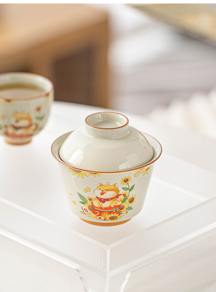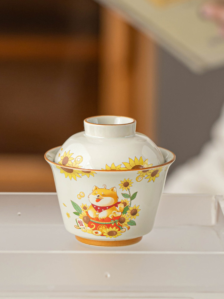Cốc trà cốc trà cốc trà cốc trà hình tròn bằng củi đơn bát trà thanh lịch có nắp bộ trà Kung Fu gốm sứ