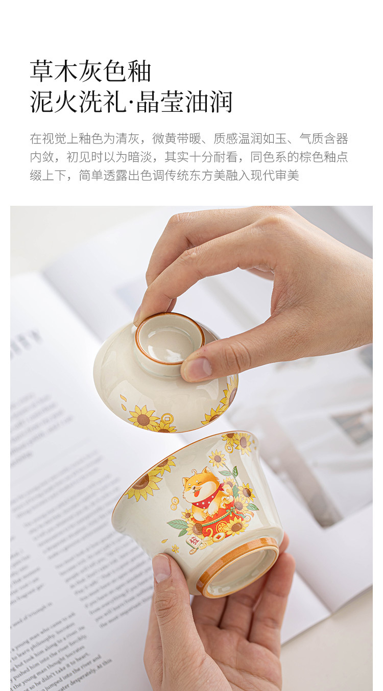 - Cốc trà cốc trà cốc trà cốc trà hình tròn bằng củi đơn bát trà thanh lịch có nắp bộ trà Kung Fu gốm sứ