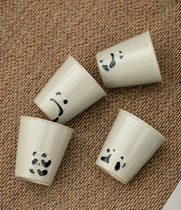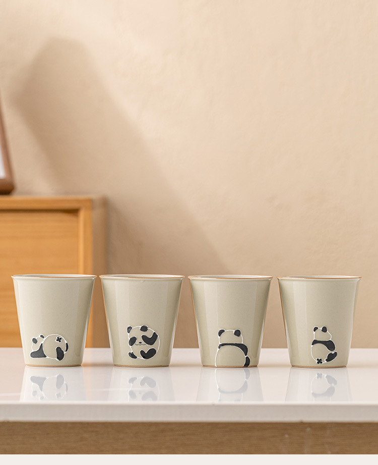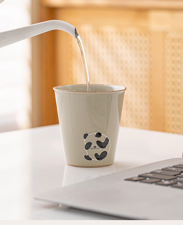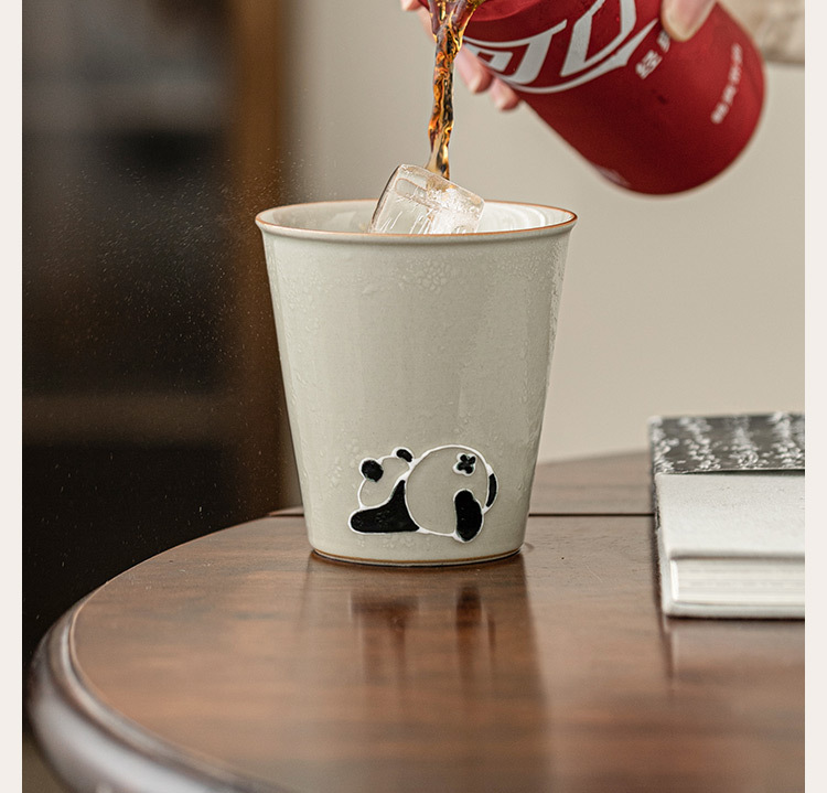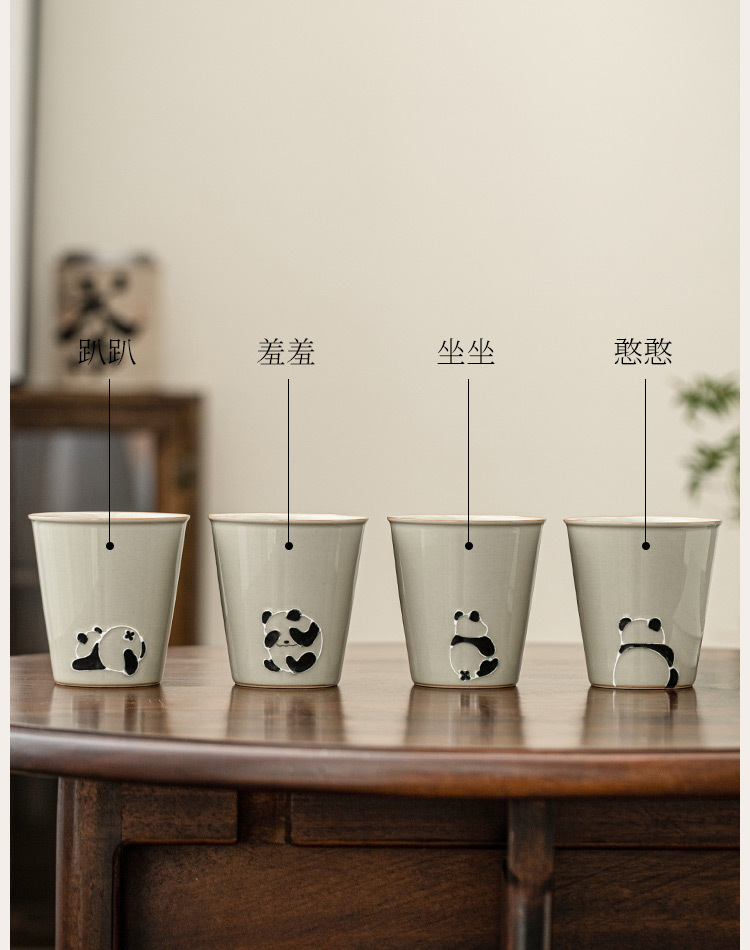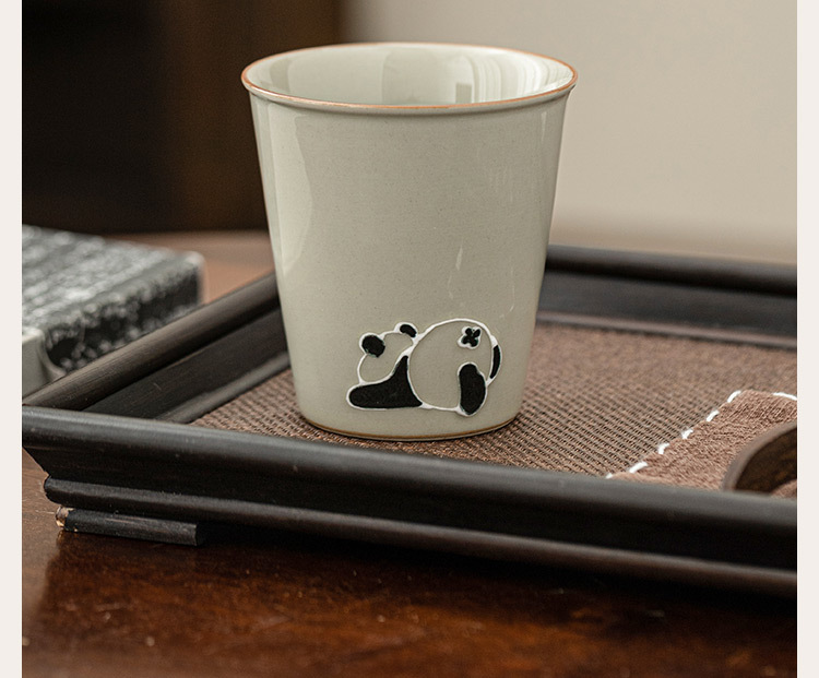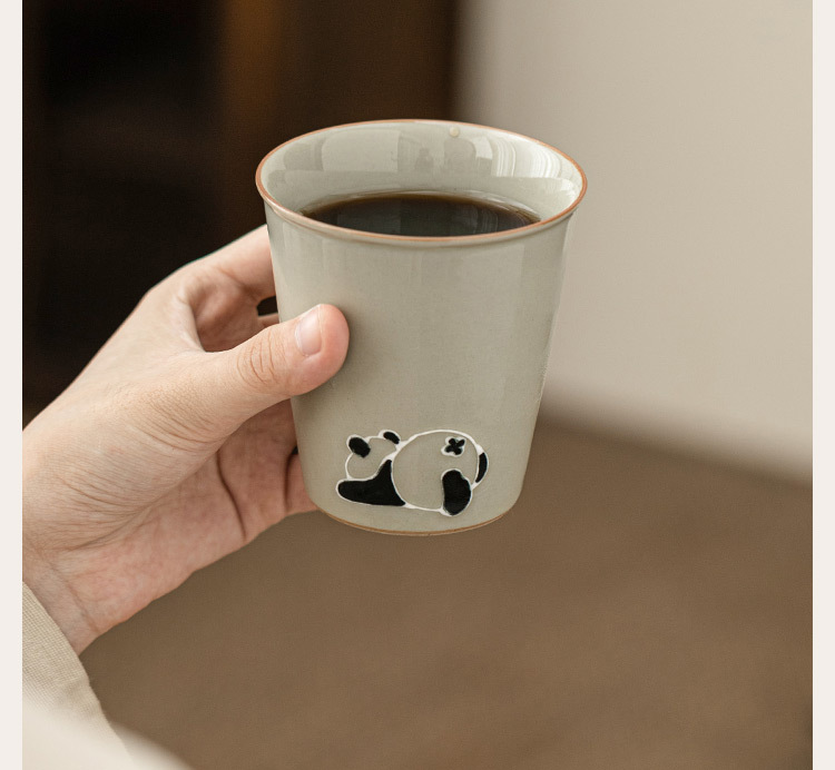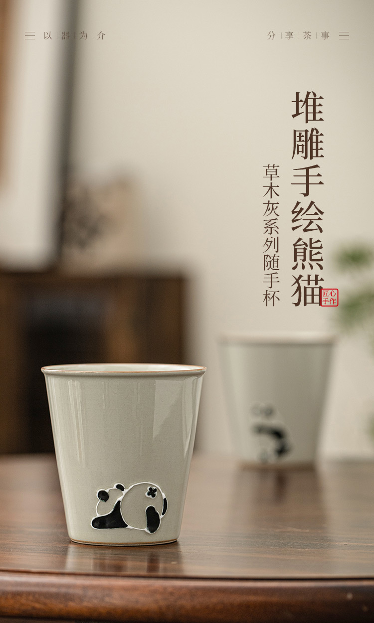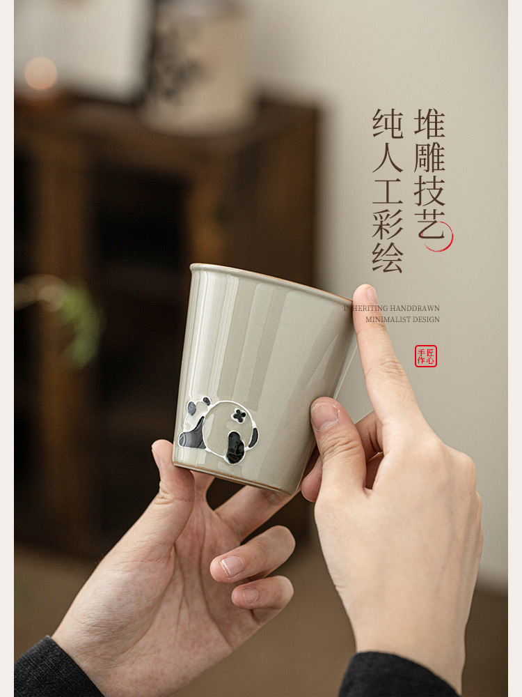 - Cốc trà gấu trúc chạm khắc đống tro thảm cốc chủ nhân cốc gốm sứ cỡ lớn dụng cụ trà kungfu gia dụng cốc uống nước