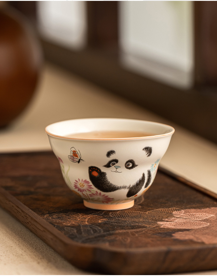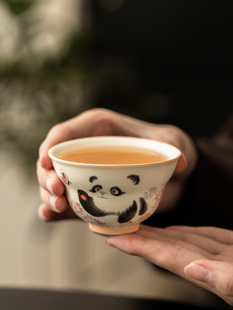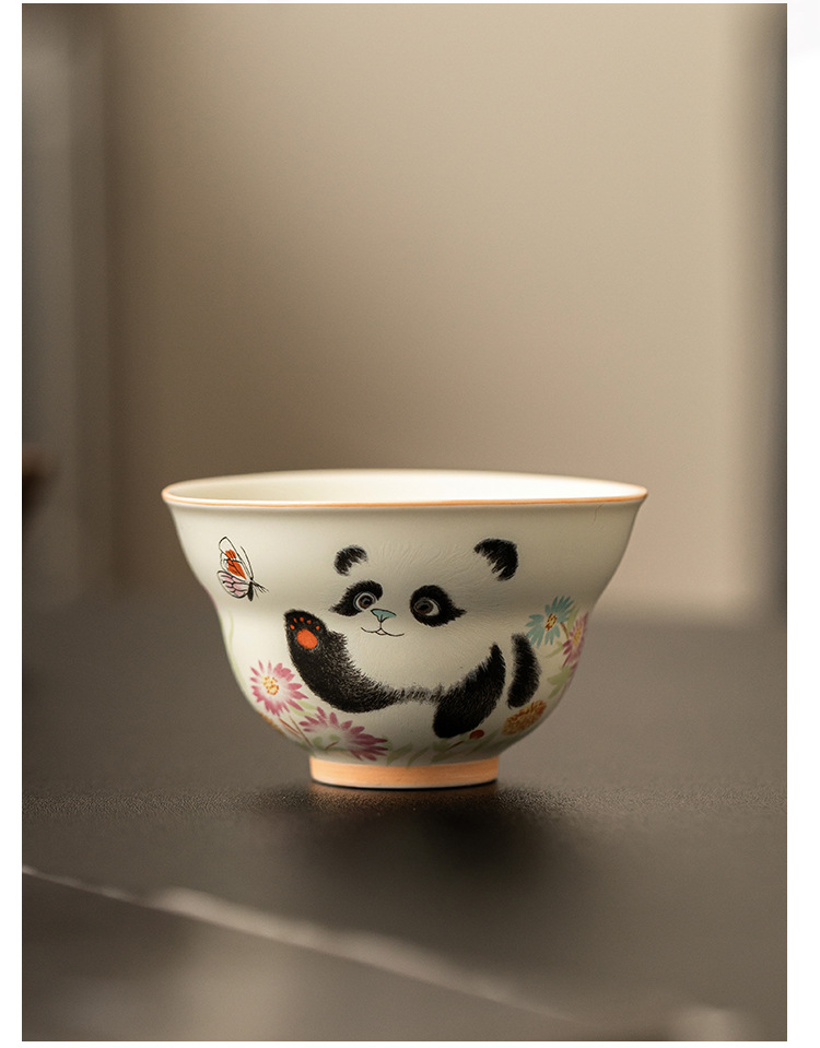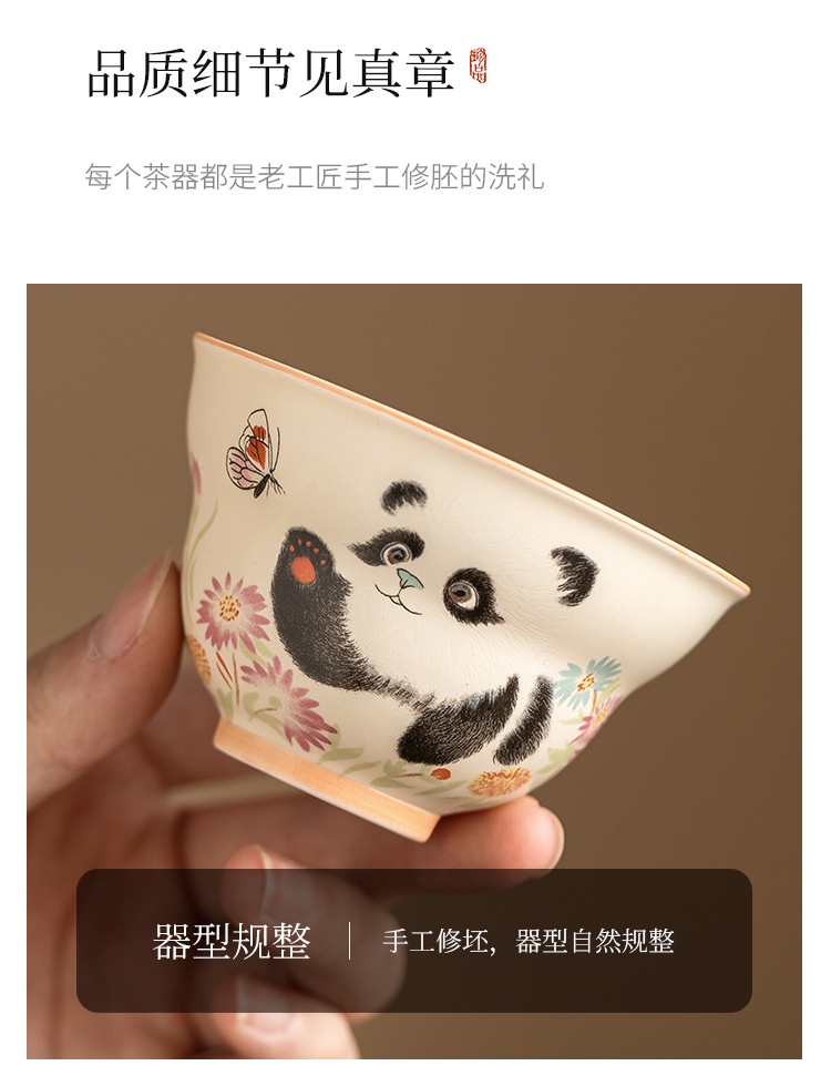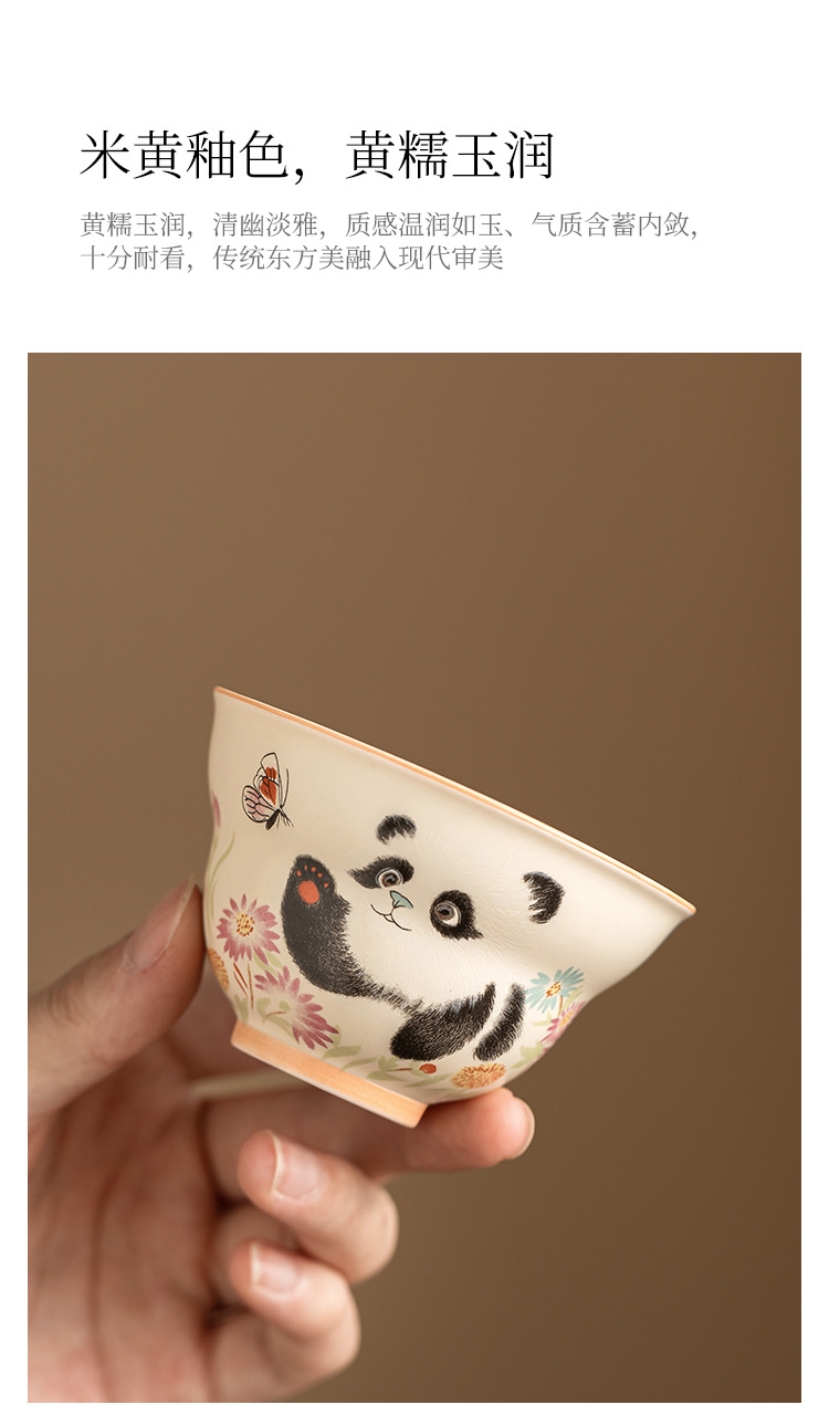- Cốc trà gấu trúc tráng men màu vàng cốc chủ nhân cốc trà Kung Fu dung tích lớn cốc trà gốm sứ cốc trà hộp quà