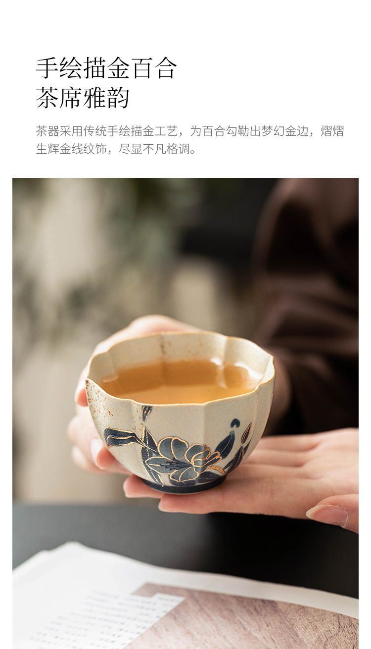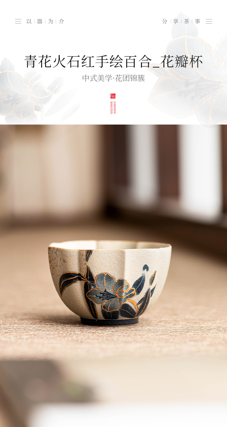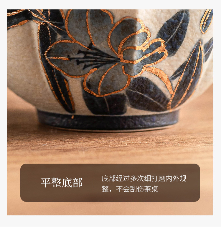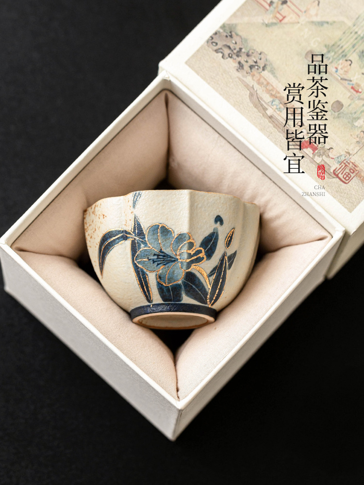 Cốc trà gốm đá lửa trắng xanh cốc chủ nhân cốc hoa huệ vẽ tay bằng vàng cốc uống trà cỡ lớn cốc trà gia dụng