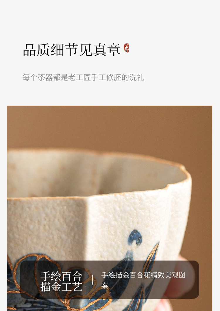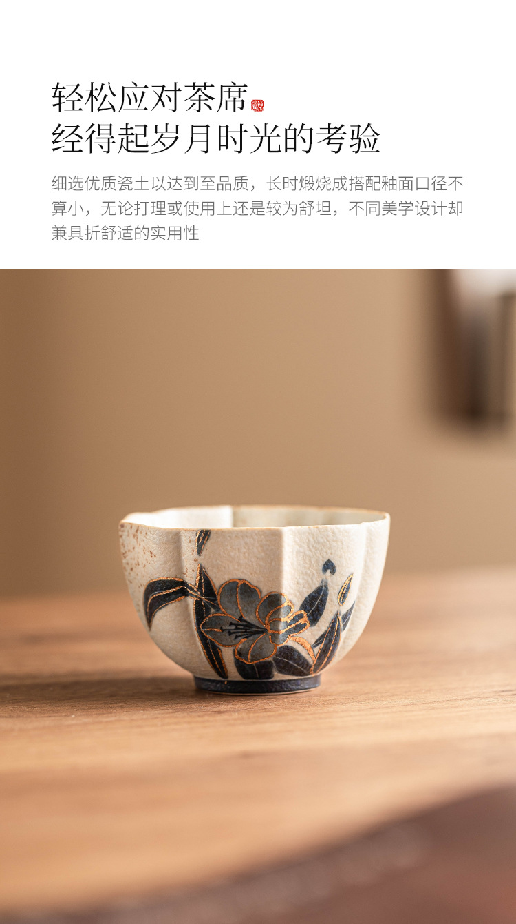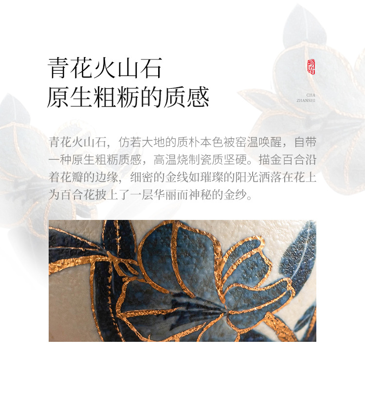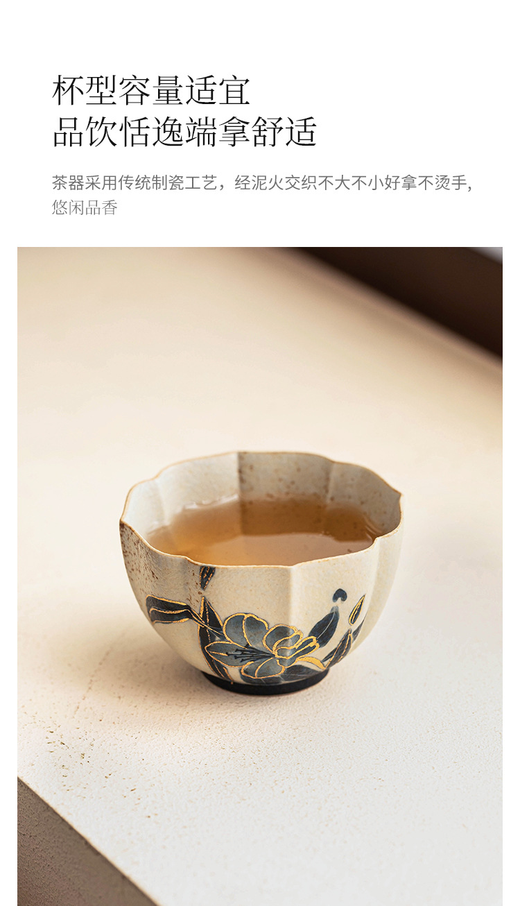 Cốc trà gốm đá lửa trắng xanh cốc chủ nhân cốc hoa huệ vẽ tay bằng vàng cốc uống trà cỡ lớn cốc trà gia dụng