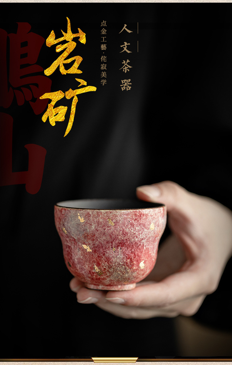 - Cốc trà gốm màu đá mỏ biến đổi kiểu Nhật cốc trà cốc chủ nhân đơn gốm thô cổ điển cốc trà gốm sứ gia dụng