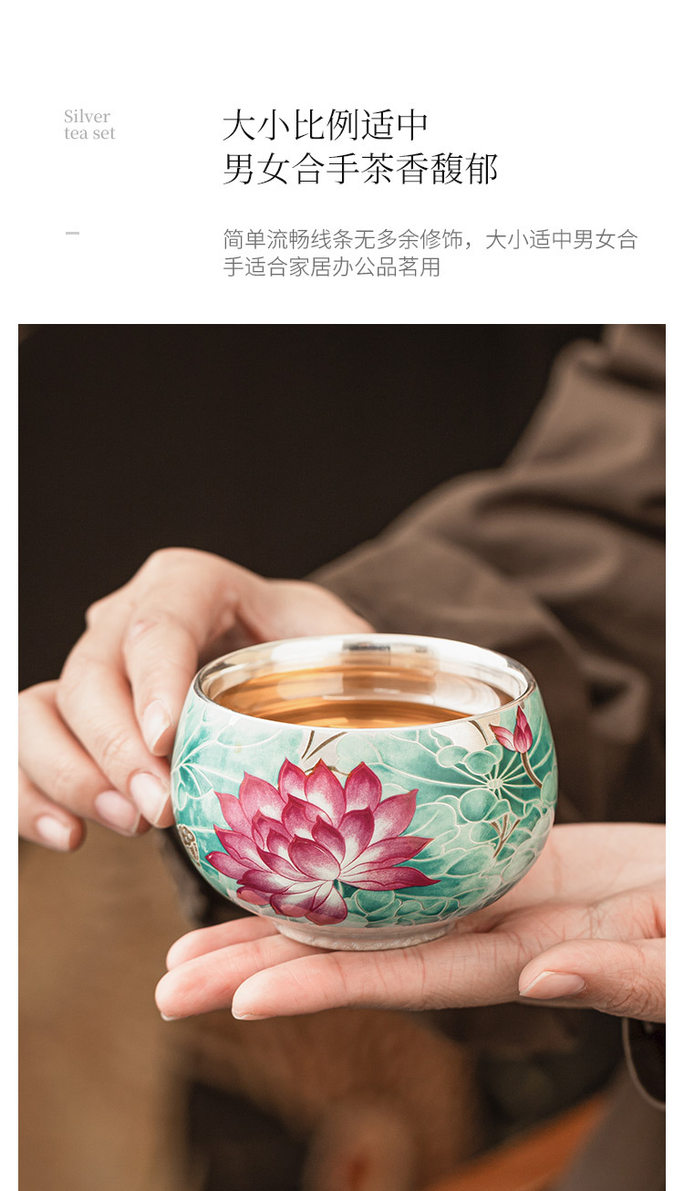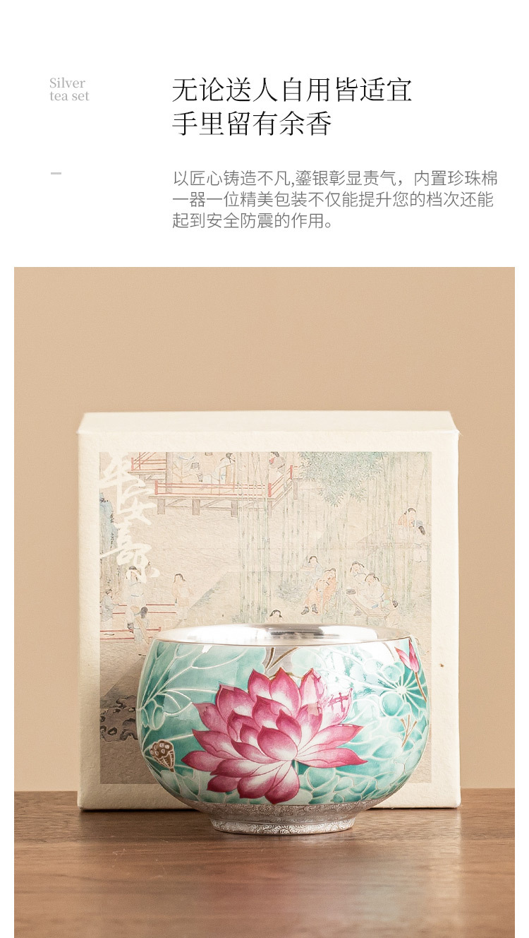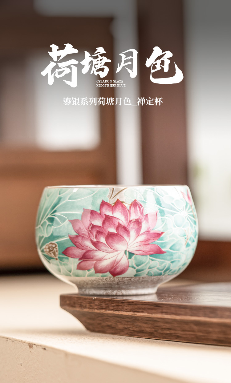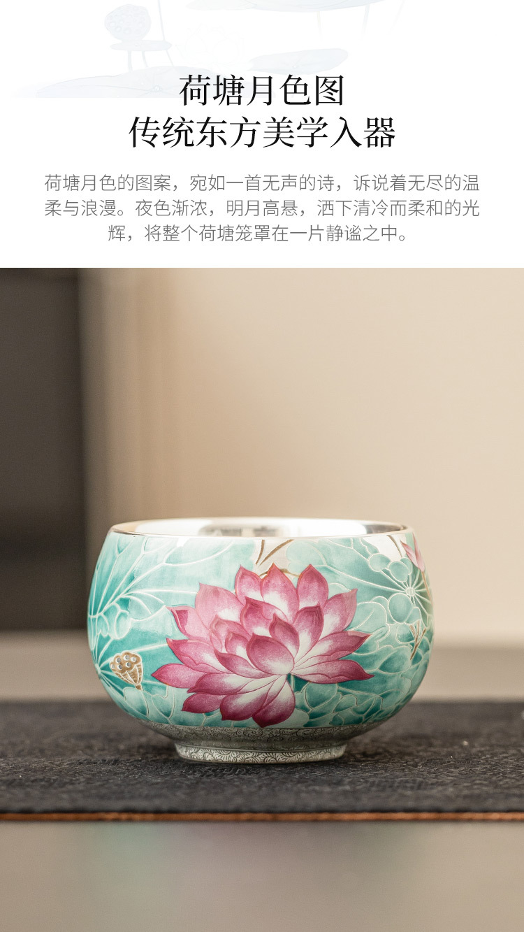 - Cốc trà gốm sứ ánh trăng ao sen mạ bạc 999 tách trà cốc chủ nhân cổ điển Trung Quốc cốc trà chuyên dụng cá nhân cốc đơn