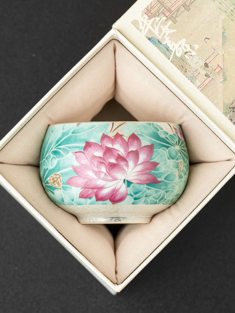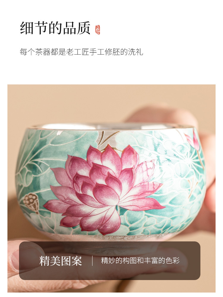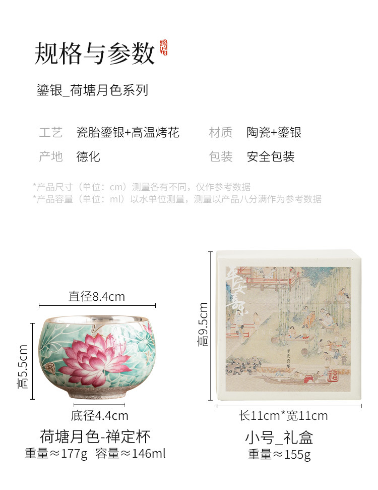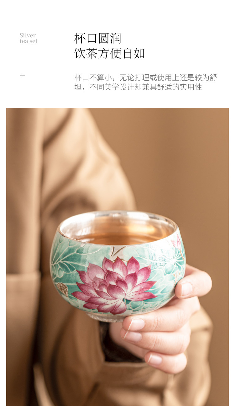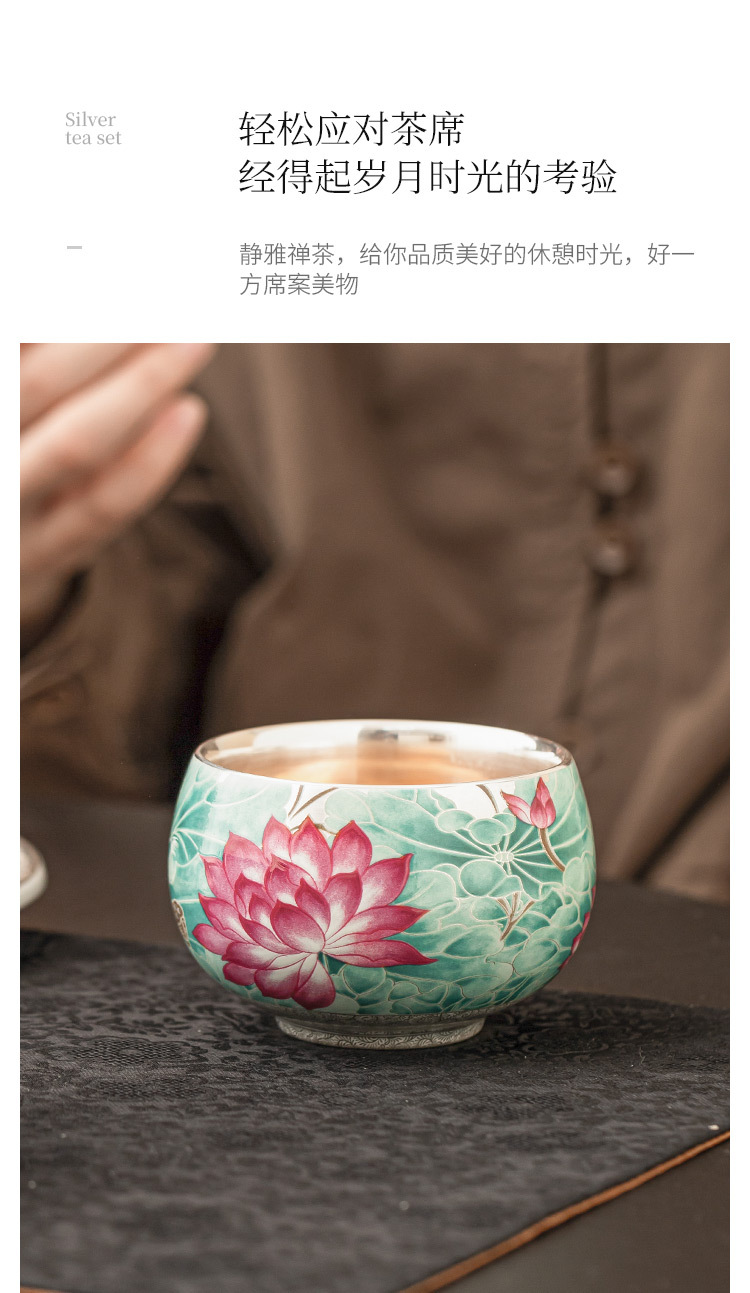 - Cốc trà gốm sứ ánh trăng ao sen mạ bạc 999 tách trà cốc chủ nhân cổ điển Trung Quốc cốc trà chuyên dụng cá nhân cốc đơn