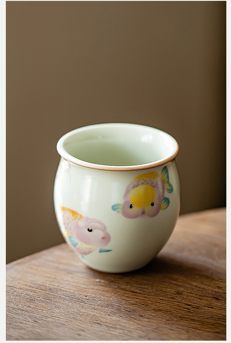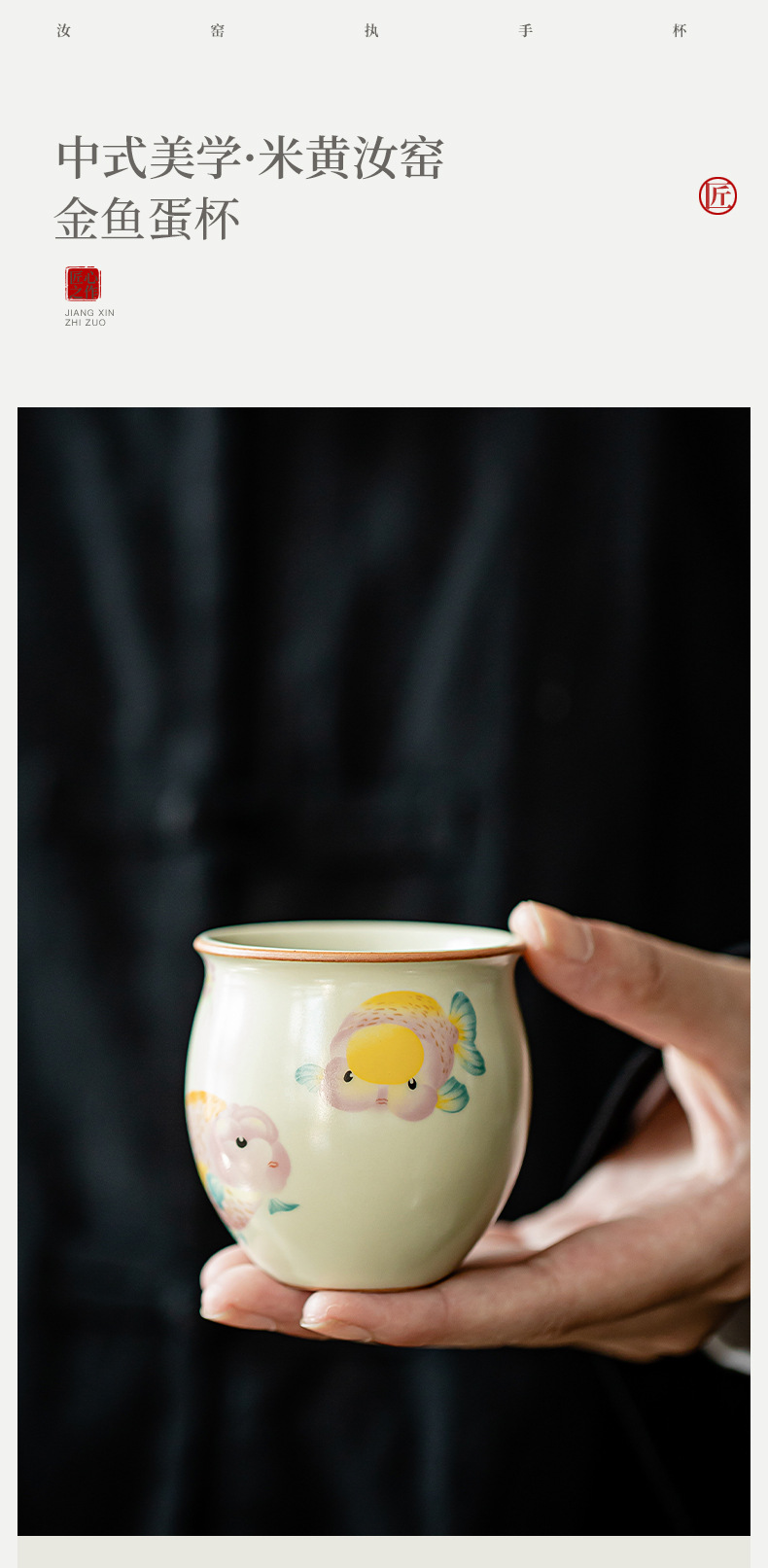 Cốc trà gốm sứ cá vàng Ruyao cốc trứng có thể mở được cốc chủ nhân cốc nếm trà cốc đơn Bộ trà Kung Fu Trung Quốc