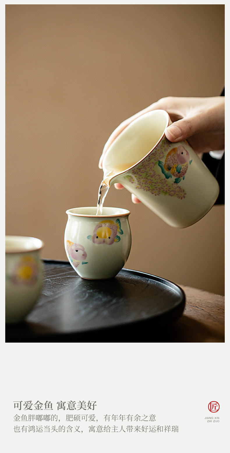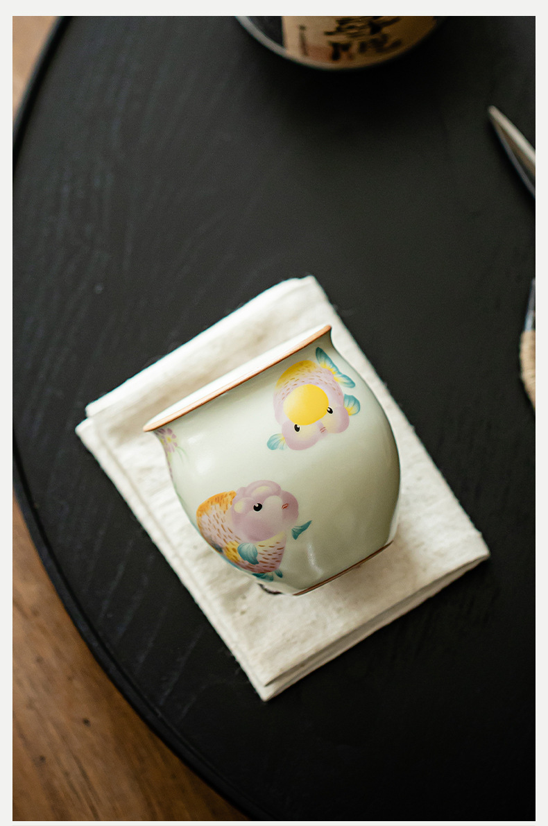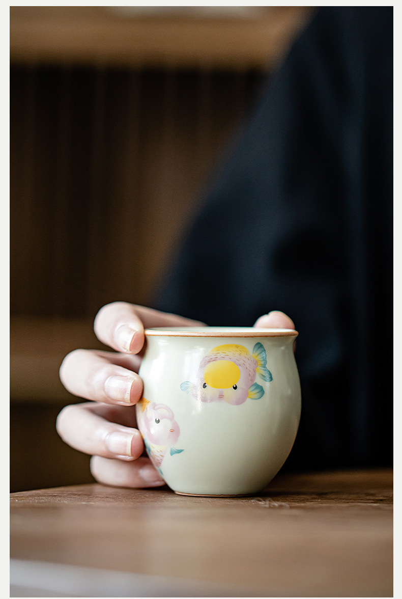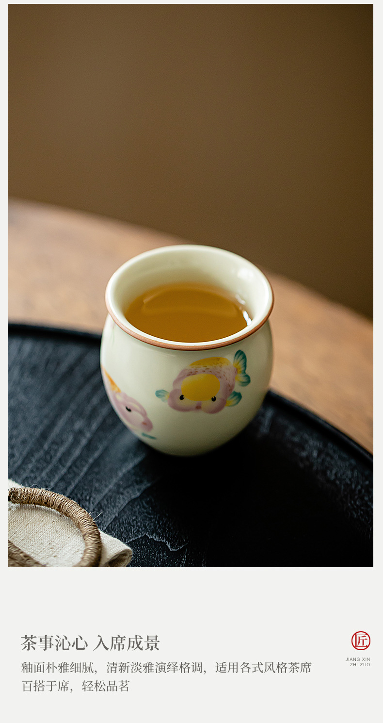 - Cốc trà gốm sứ cá vàng Ruyao cốc trứng có thể mở được cốc chủ nhân cốc nếm trà cốc đơn Bộ trà Kung Fu Trung Quốc