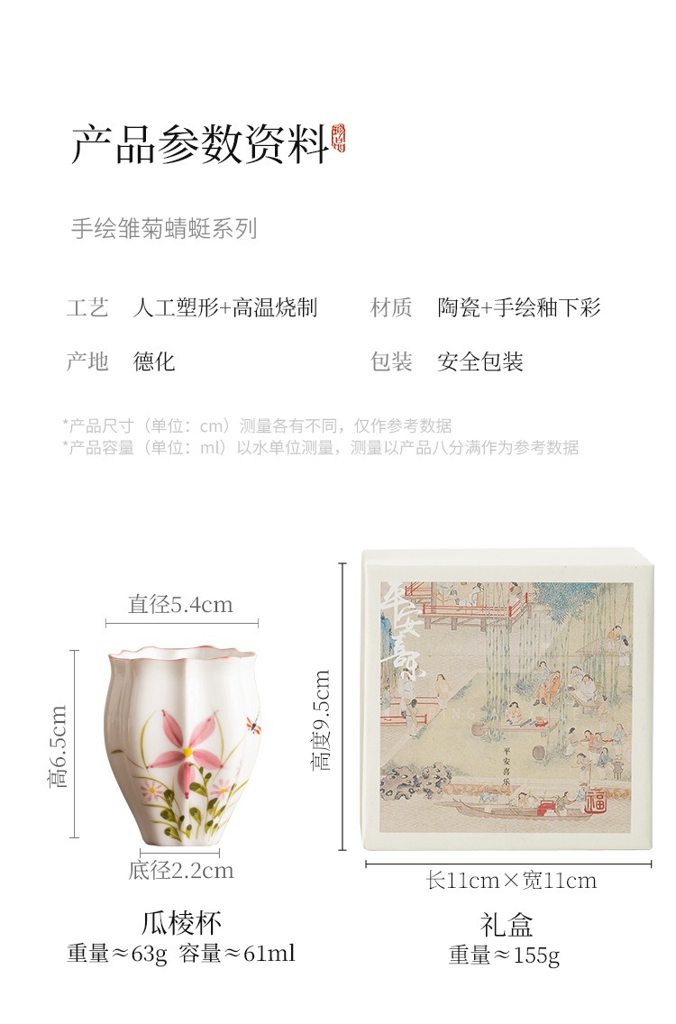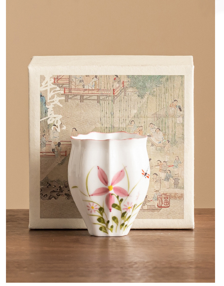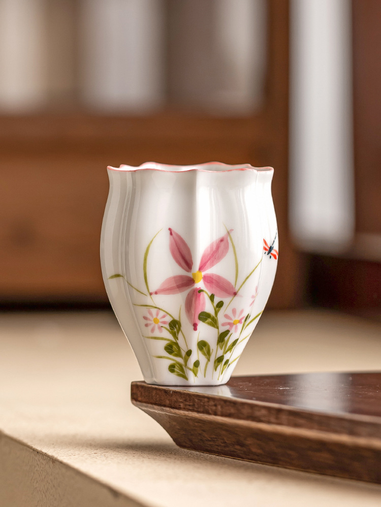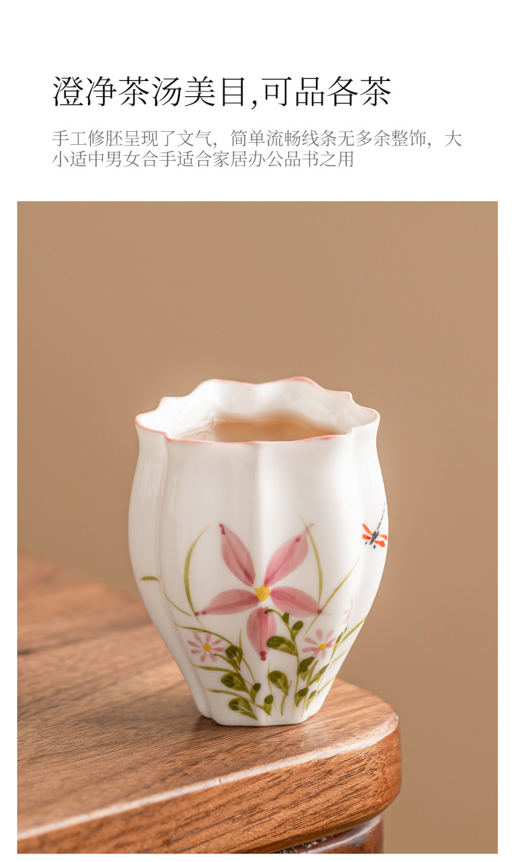 - Cốc trà gốm sứ cốc chủ nhân vẽ tay hoa cúc chuồn chuồn dưa lăng cốc Kung Fu trà trà cốc đặc biệt uống trà đơn