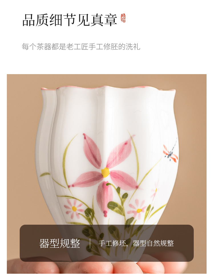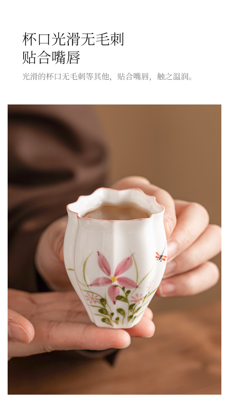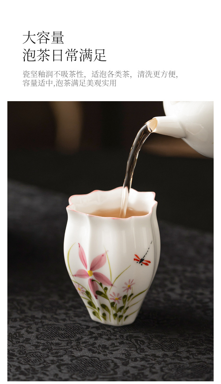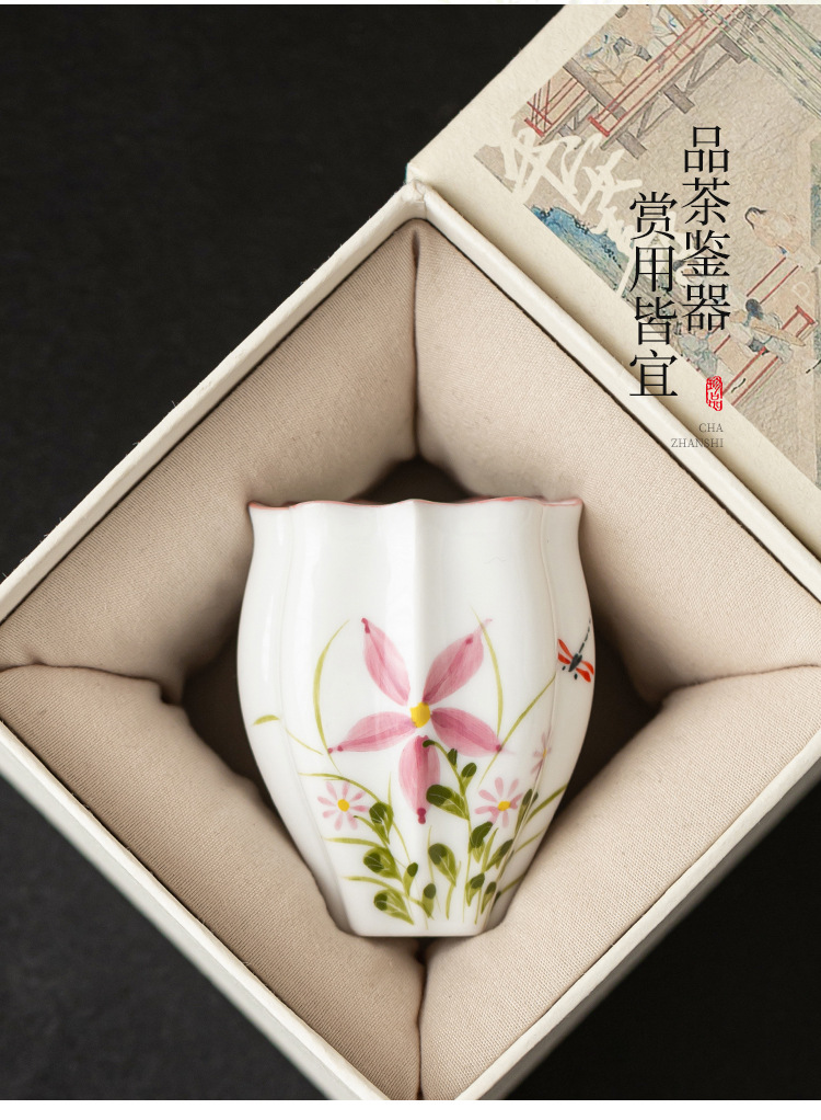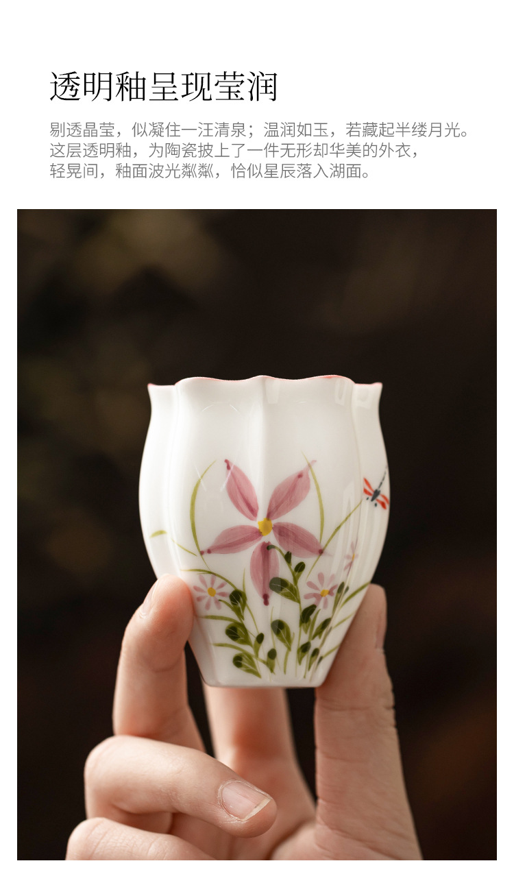 Cốc trà gốm sứ cốc chủ nhân vẽ tay hoa cúc chuồn chuồn dưa lăng cốc Kung Fu trà trà cốc đặc biệt uống trà đơn