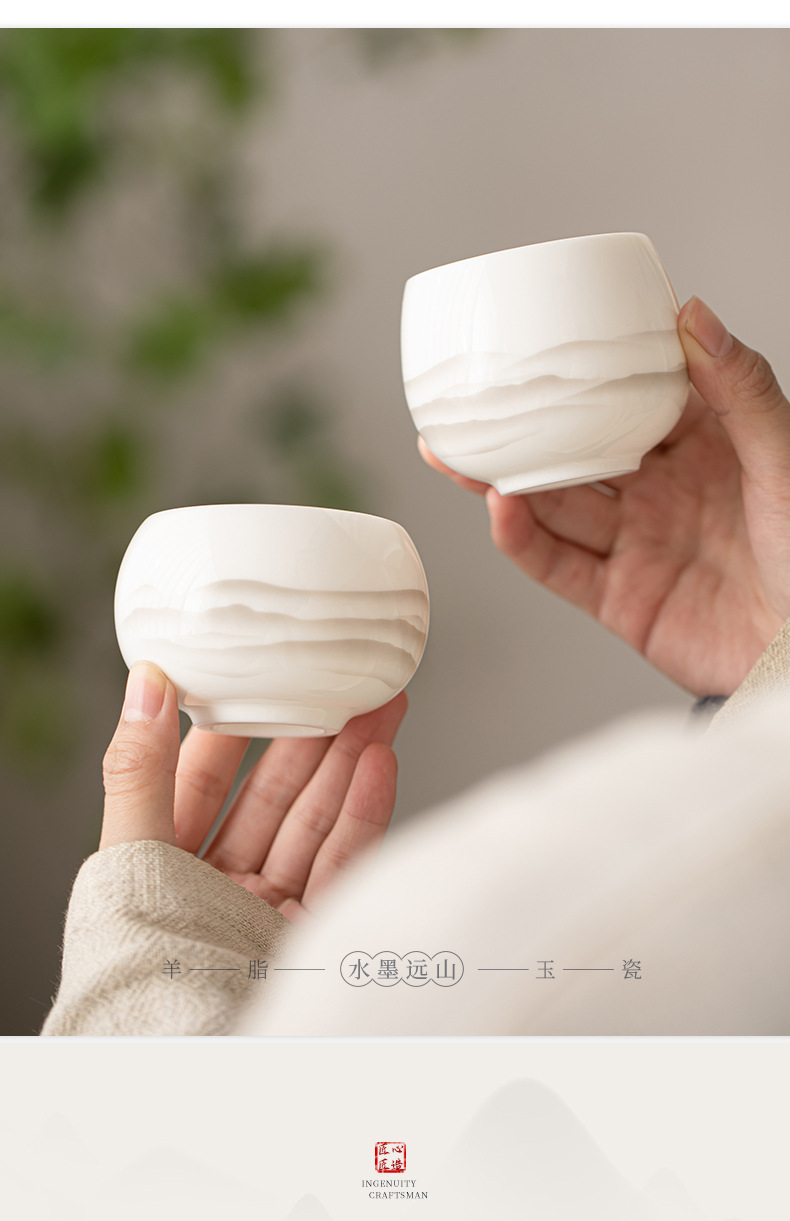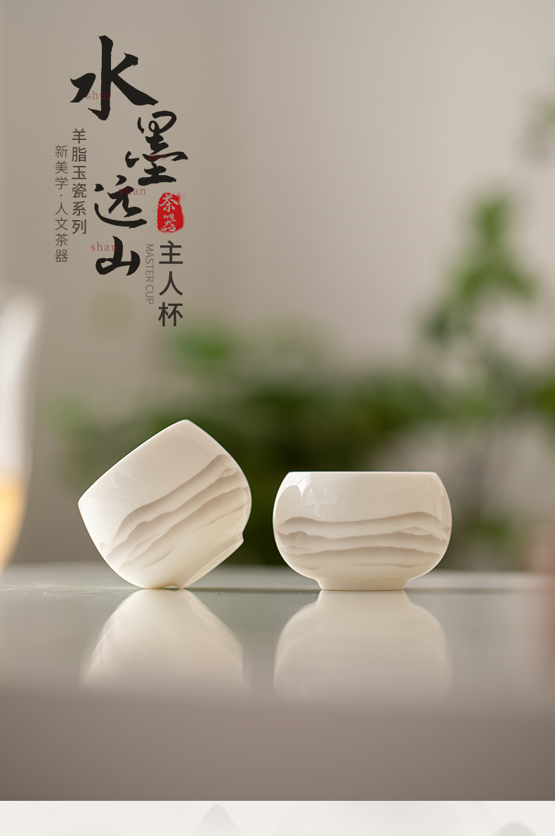 - Cốc trà gốm sứ Dehua cốc chủ nhân tách trà gia dụng Cốc cá nhân cốc trà Hộp quà tặng doanh nghiệp