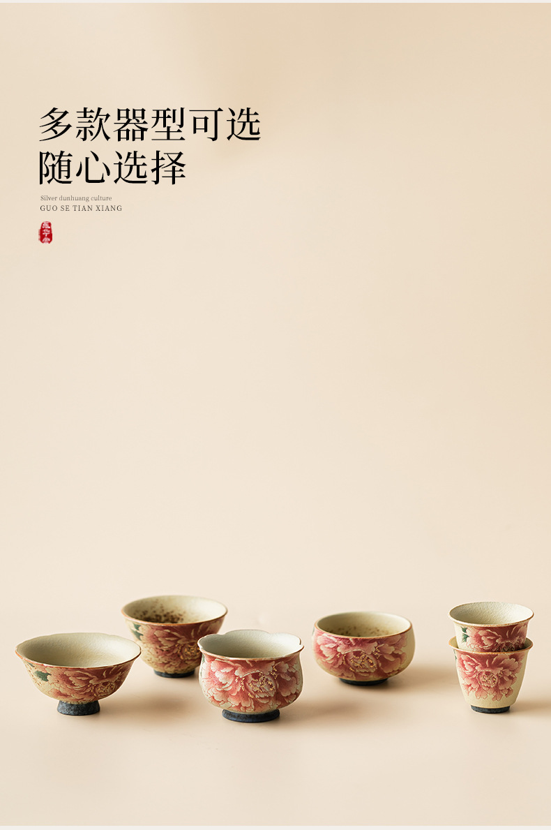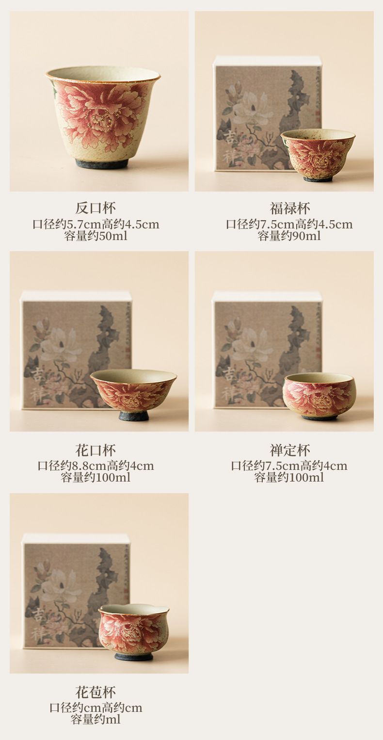 Cốc trà gốm sứ đỏ đá lửa xanh trắng cốc trà gia dụng cốc miệng hoa cốc thiền cốc uống trà cốc bộ trà cổ điển cốc đơn