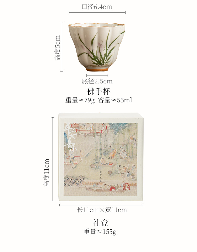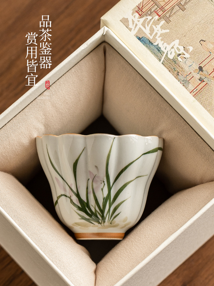 Cốc trà gốm sứ hoa lan vẽ tay cốc chủ nhân cốc uống trà gia dụng cốc nước cốc bergamot cốc trà hộp quà