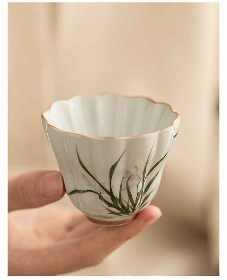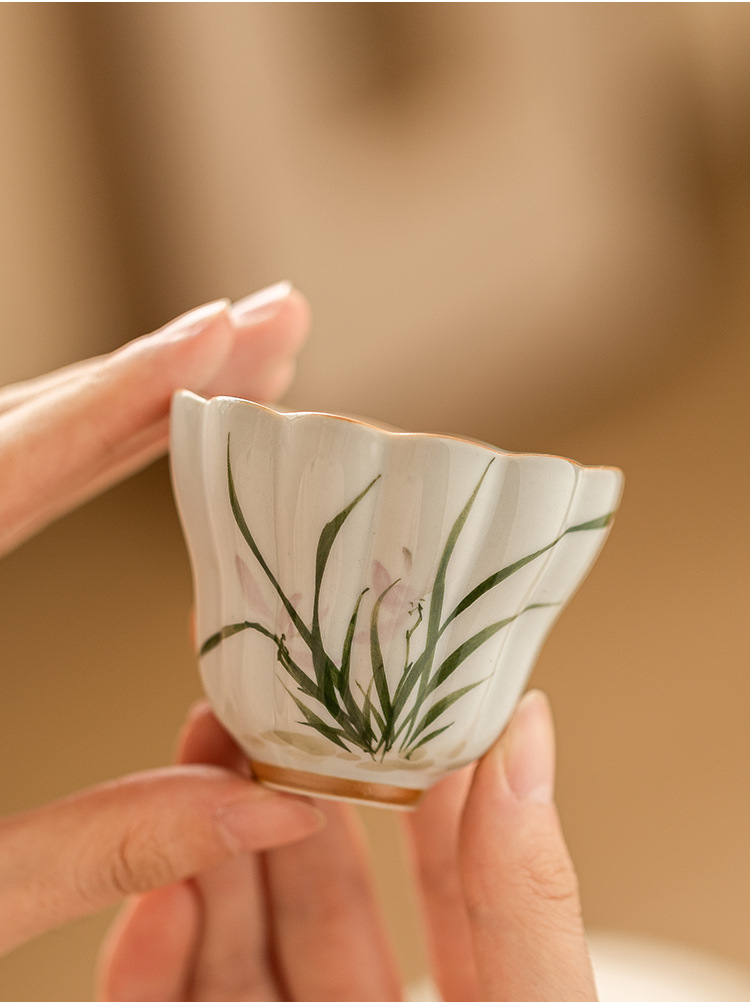 - Cốc trà gốm sứ hoa lan vẽ tay cốc chủ nhân cốc uống trà gia dụng cốc nước cốc bergamot cốc trà hộp quà