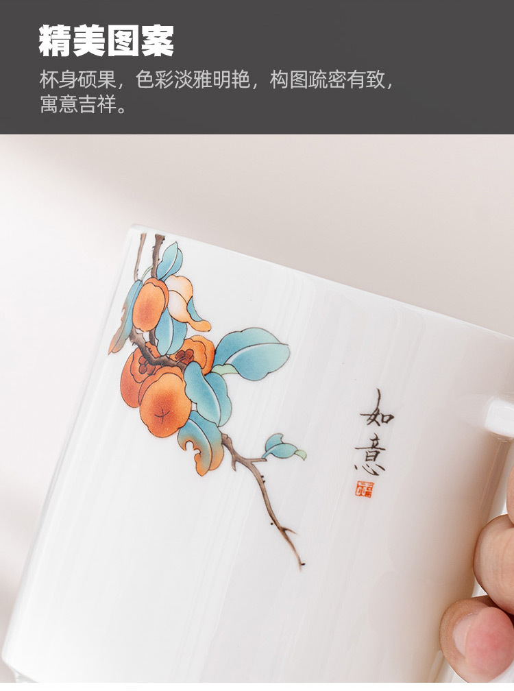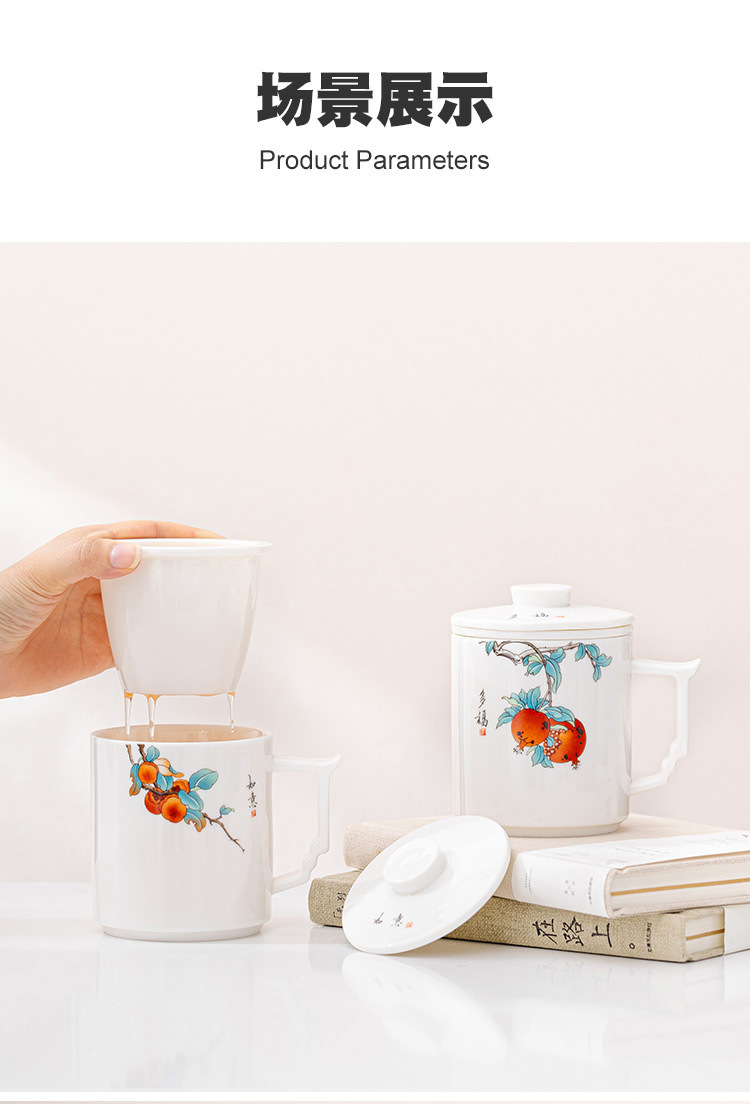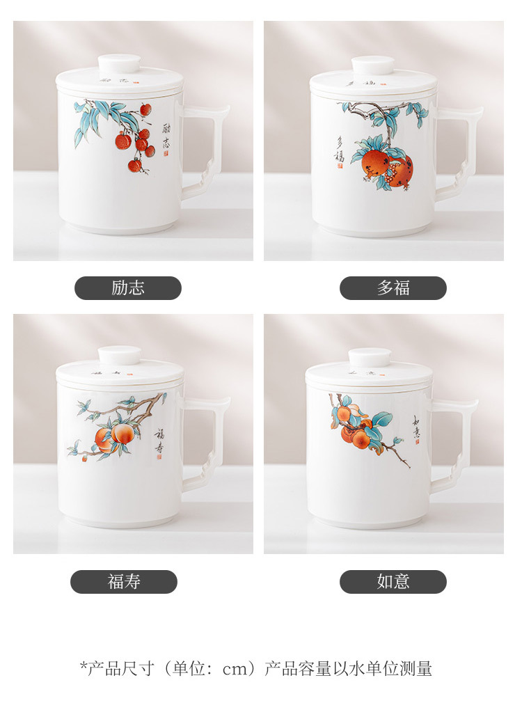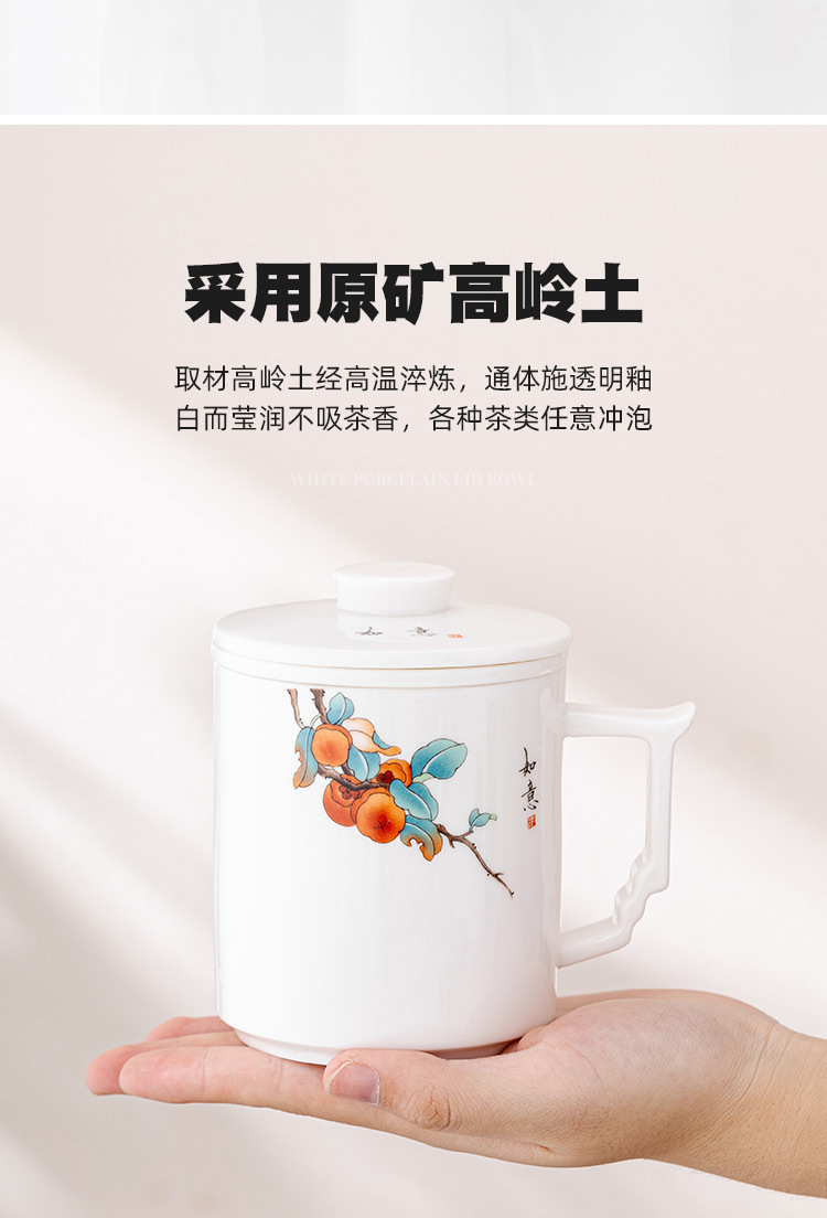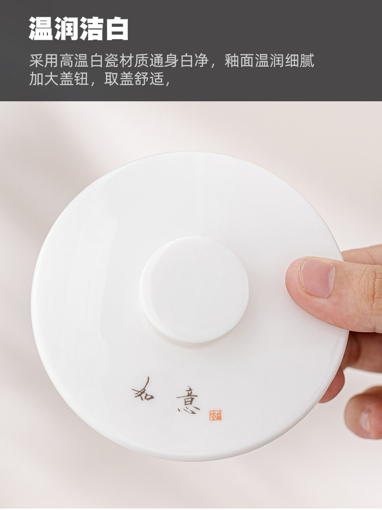Cốc trà gốm sứ ngọc bích mỡ cừu Cốc văn phòng chuyên dụng cá nhân cốc trà sứ trắng Có Nắp Cốc pha trà tách nước