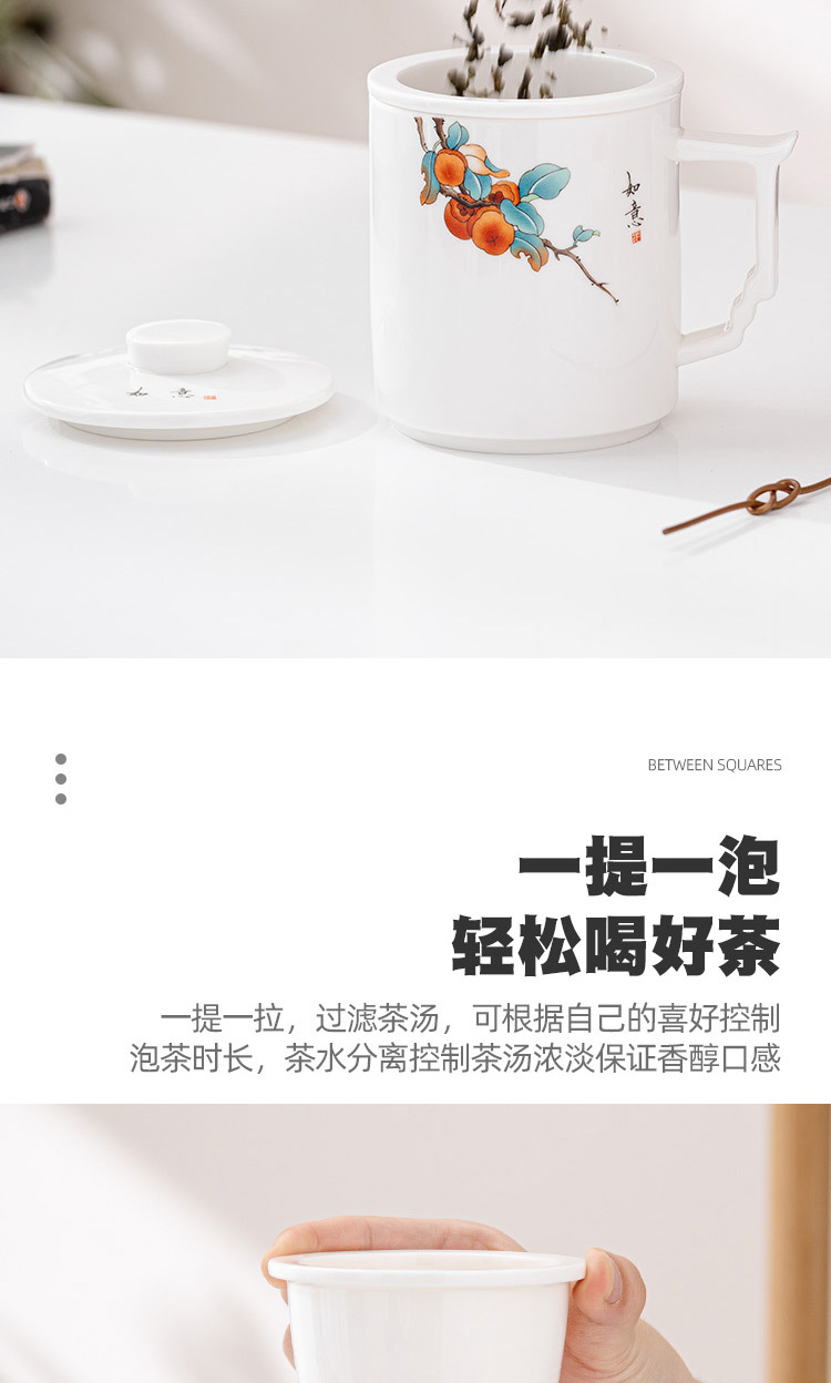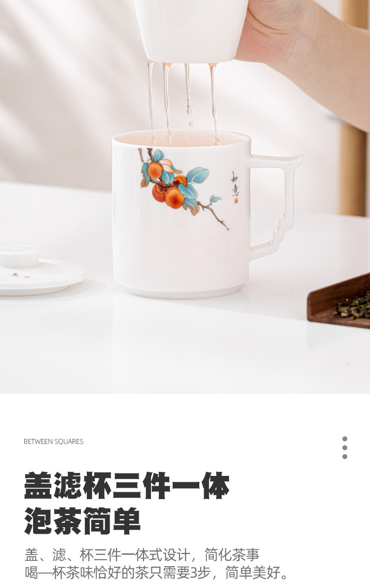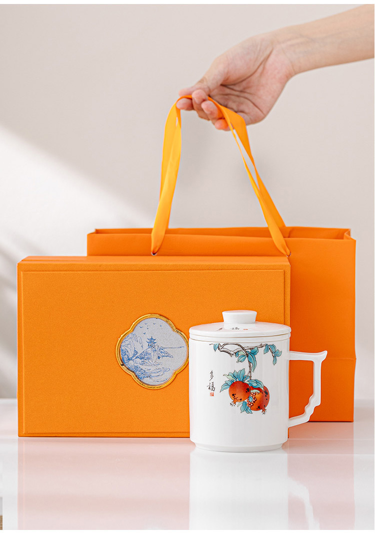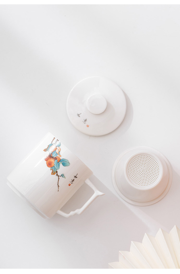 Cốc trà gốm sứ ngọc bích mỡ cừu Cốc văn phòng chuyên dụng cá nhân cốc trà sứ trắng Có Nắp Cốc pha trà tách nước