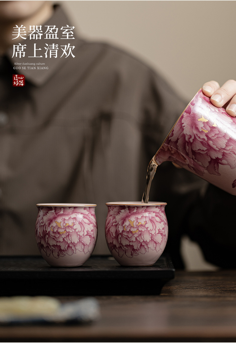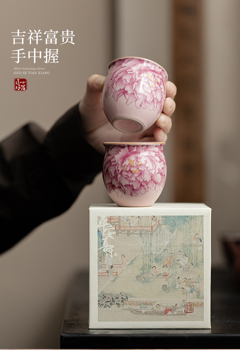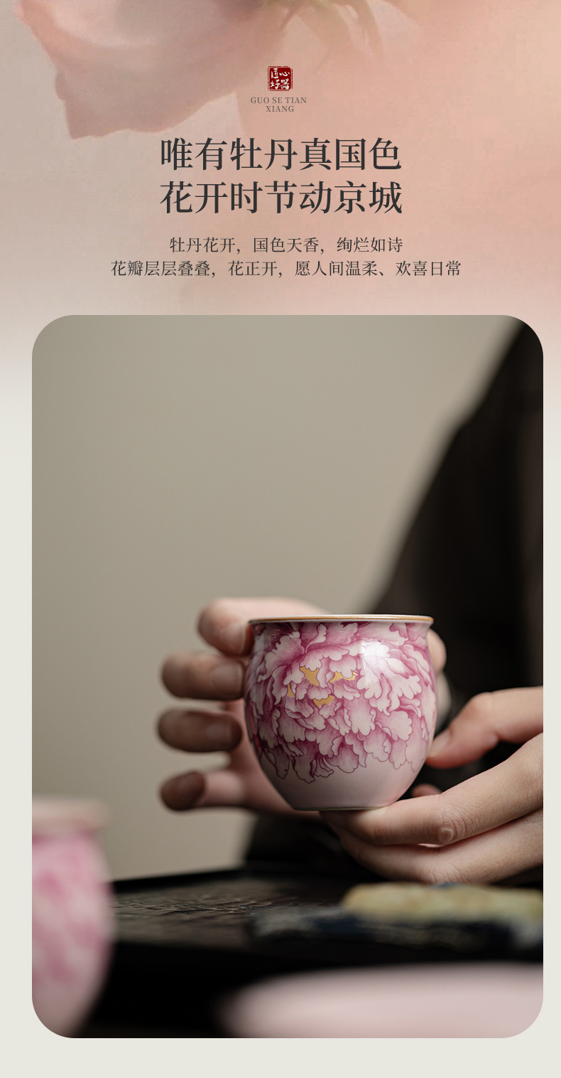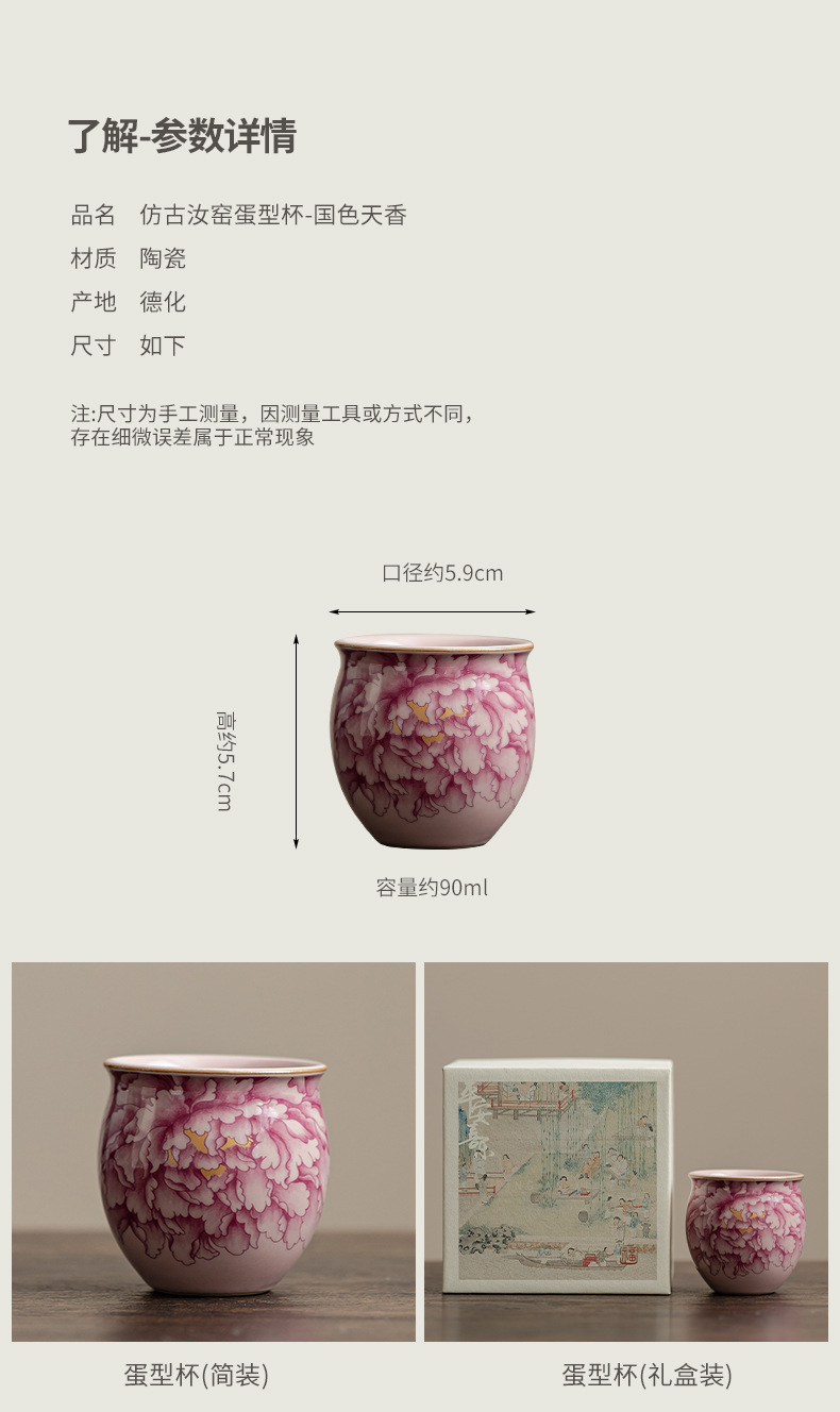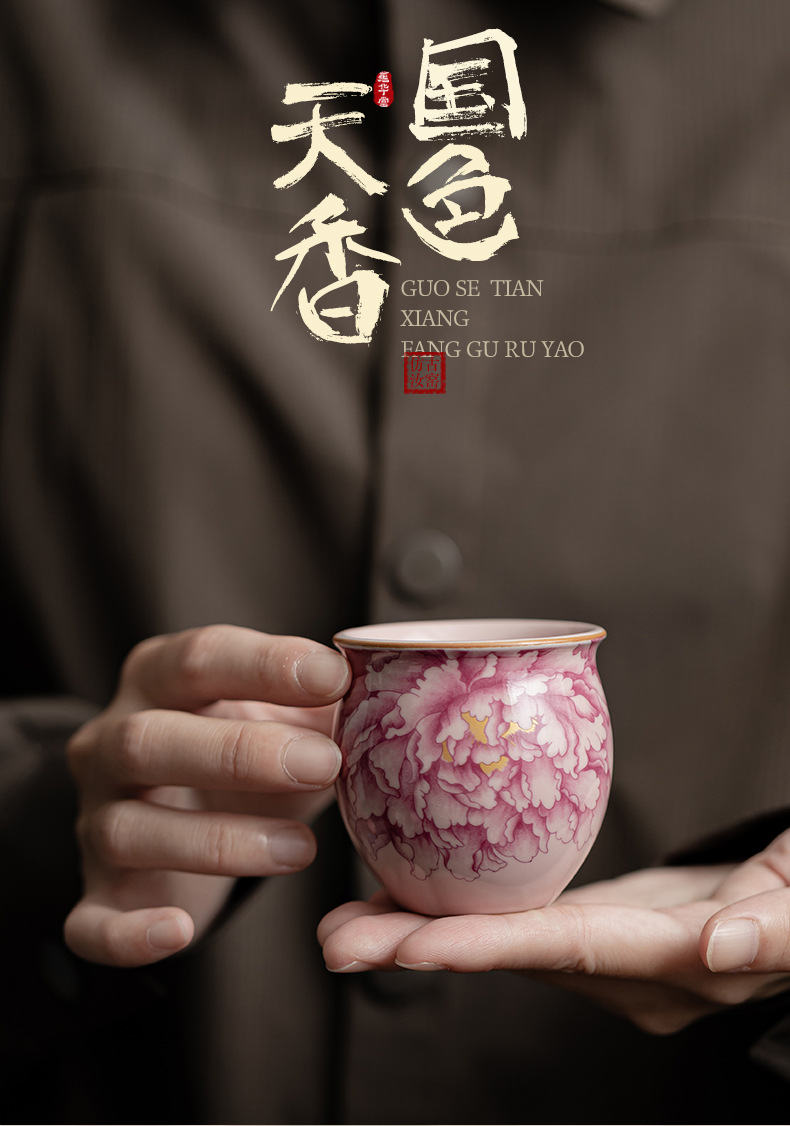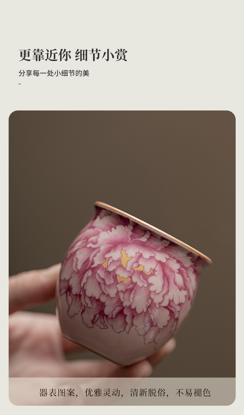 - Cốc trà gốm sứ Ru hoa mẫu đơn bột cổ cốc trứng cốc chủ nhân bộ trà Kung Fu cốc trà tách trà
