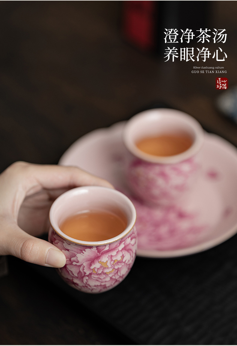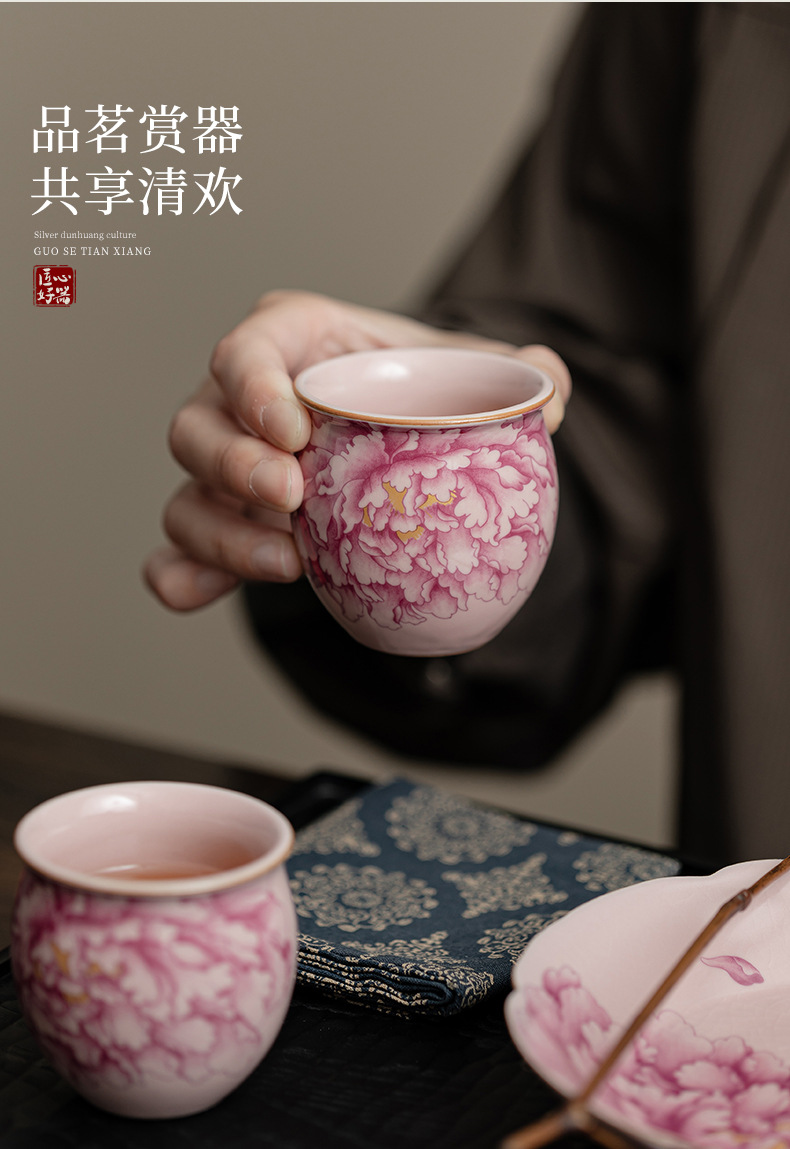 Cốc trà gốm sứ Ru hoa mẫu đơn bột cổ cốc trứng cốc chủ nhân bộ trà Kung Fu cốc trà tách trà