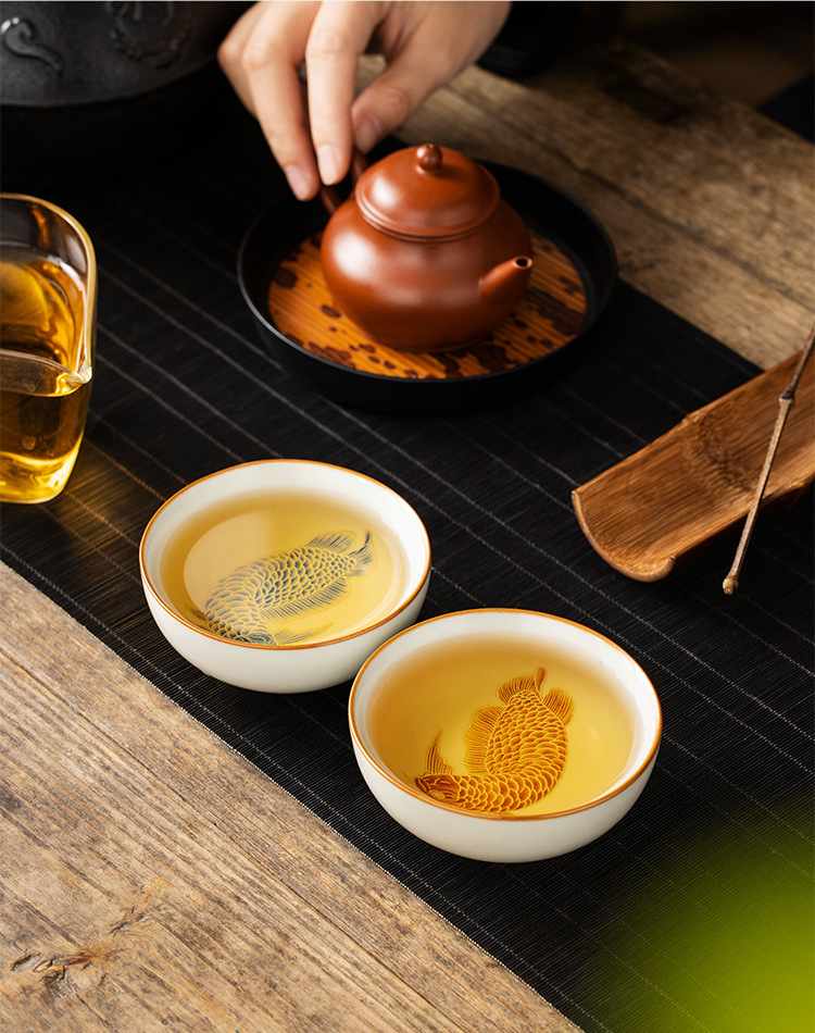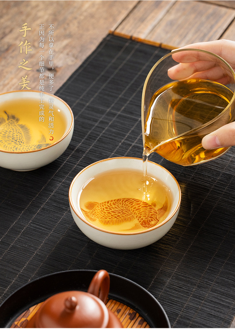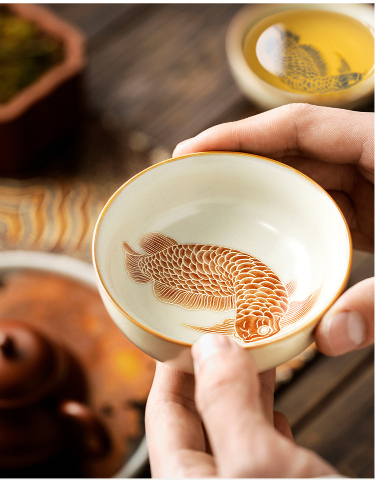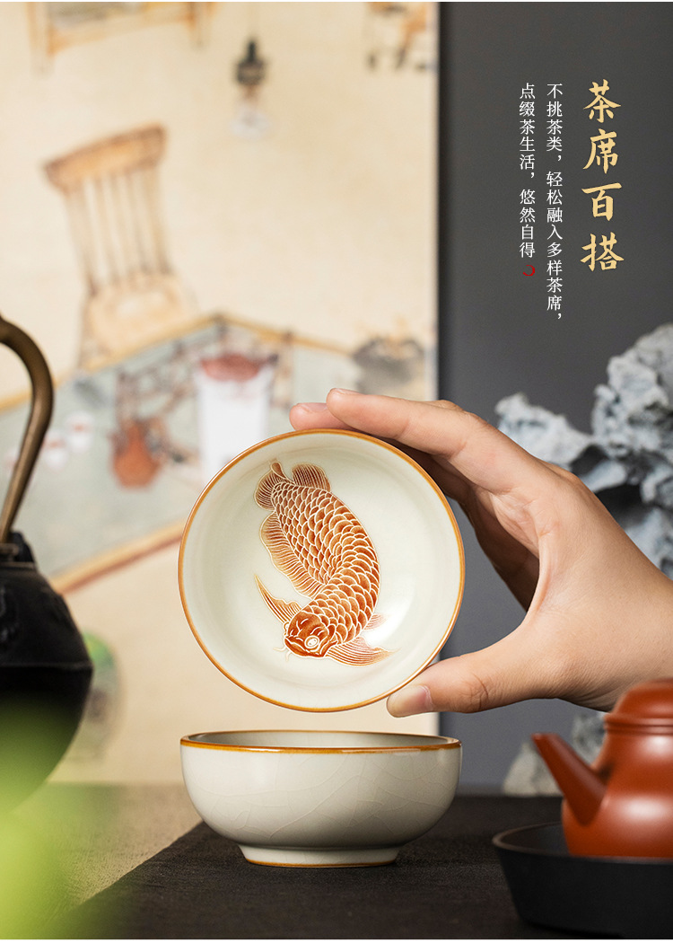 - Cốc trà gốm sứ Ruyao vảy bạc Yulong Pu'er cốc chủ sở hữu cốc đơn gia dụng bộ trà cá nhân cốc trà