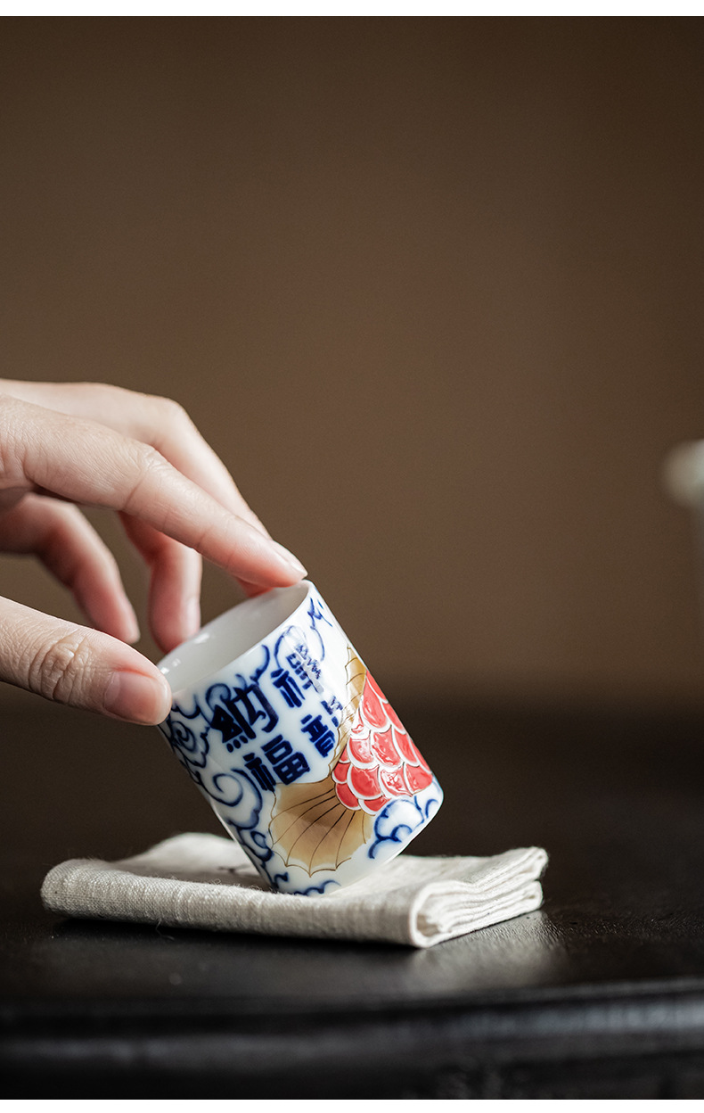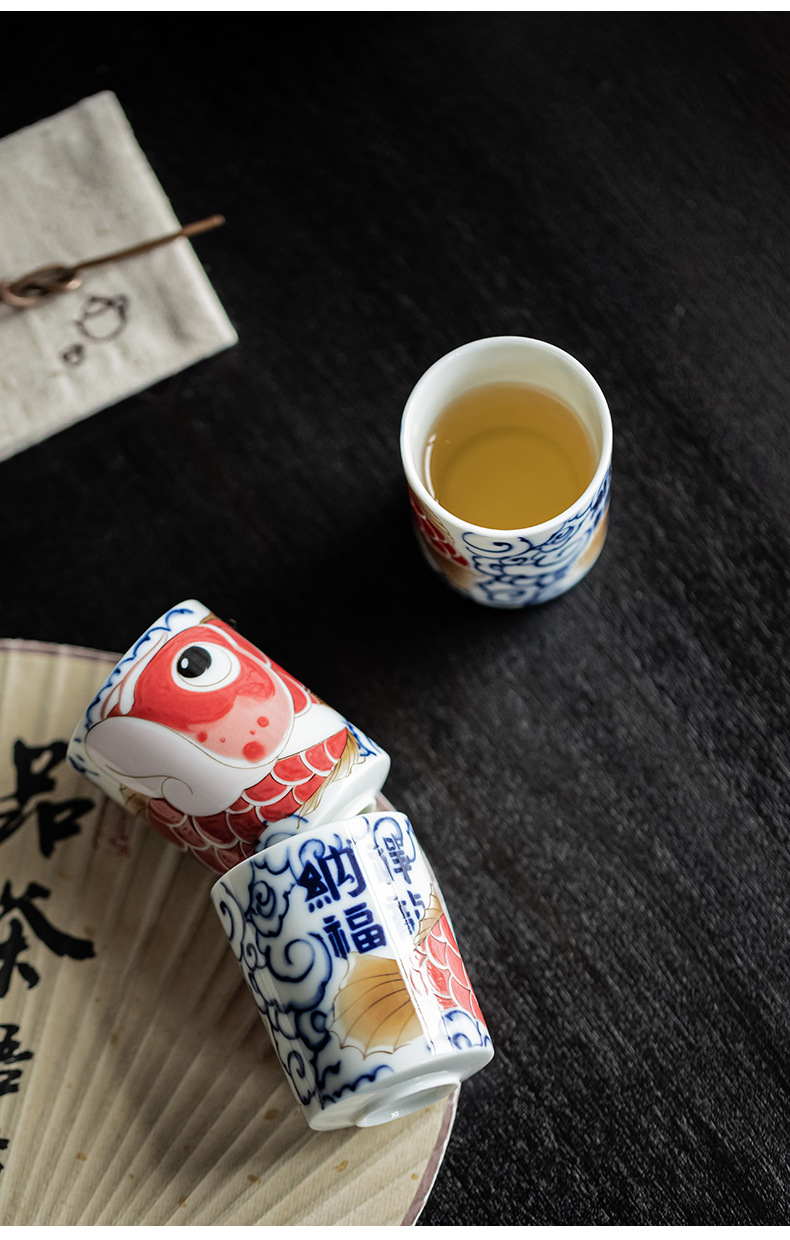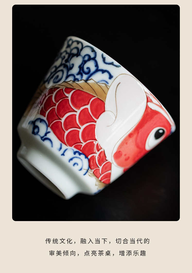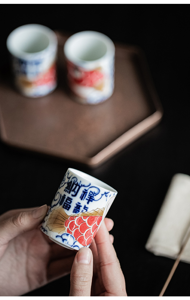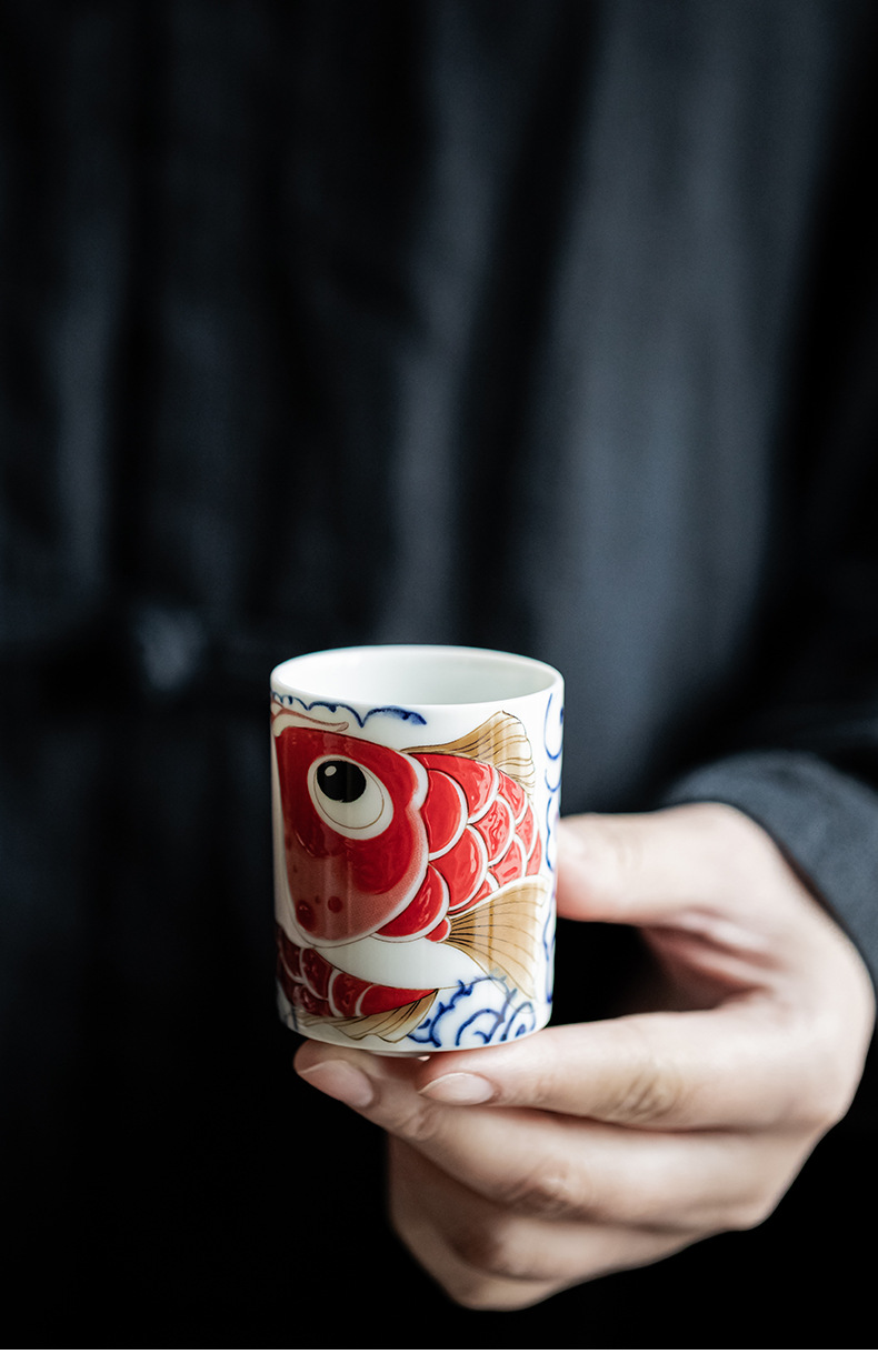 Cốc trà gốm sứ thủy triều cá rồng cốc trà cốc chủ nhân cốc ống thẳng cốc hình thang cốc Miệng Lớn cốc thủ công kiểu Trung Quốc mới