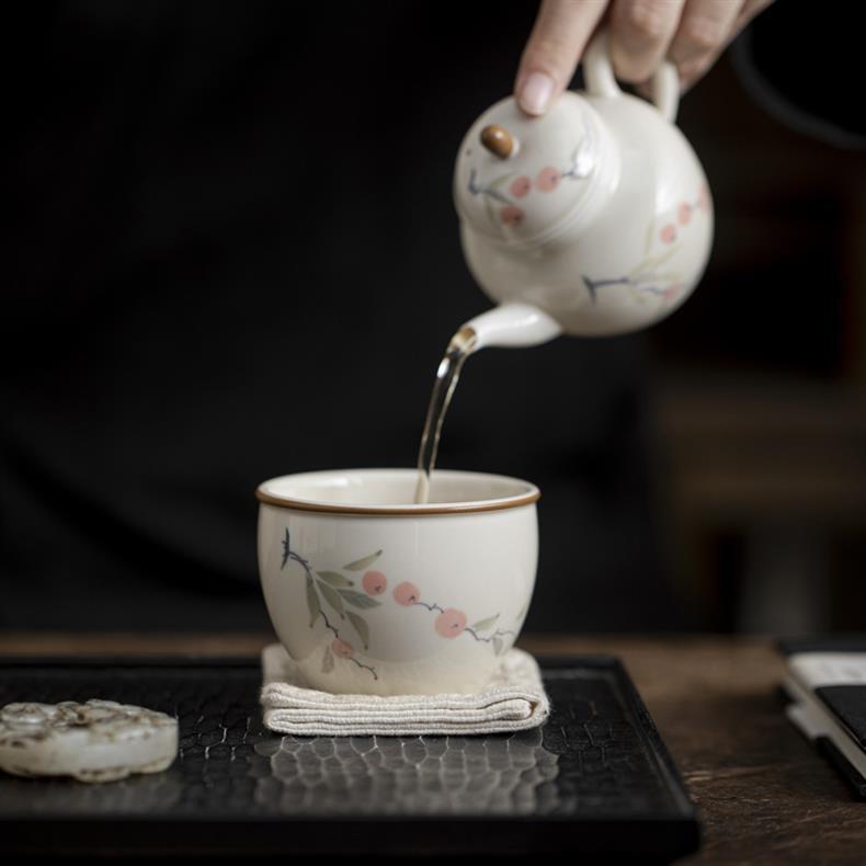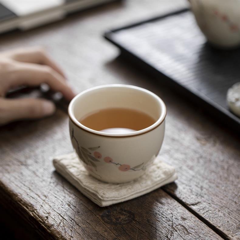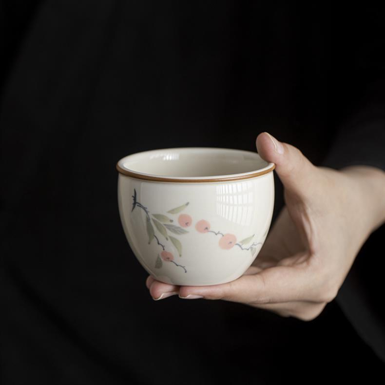 - Cốc trà gốm sứ tráng men màu hồng cốc đơn cốc chủ nhân cao cấp dụng cụ trà Kung Fu Trung Quốc mới gia dụng cốc trà gốm sứ