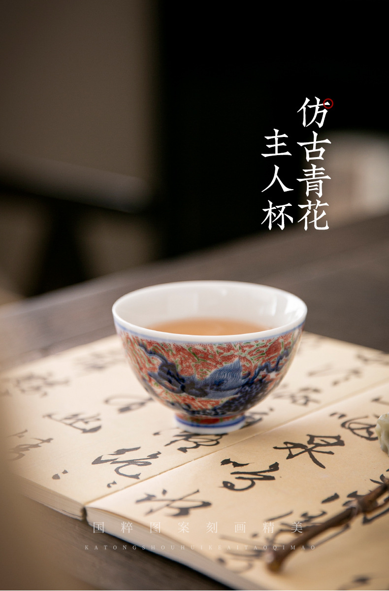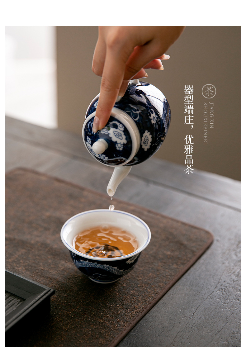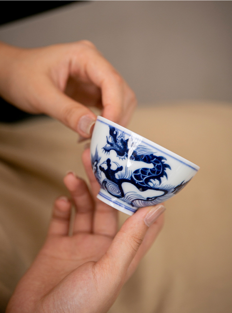 - Cốc trà gốm sứ tráng men rồng xanh trắng cổ điển cốc trà Kung Fu chuyên dụng gia dụng cốc trà Kung Fu