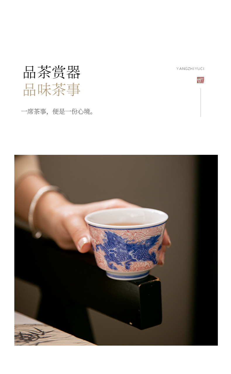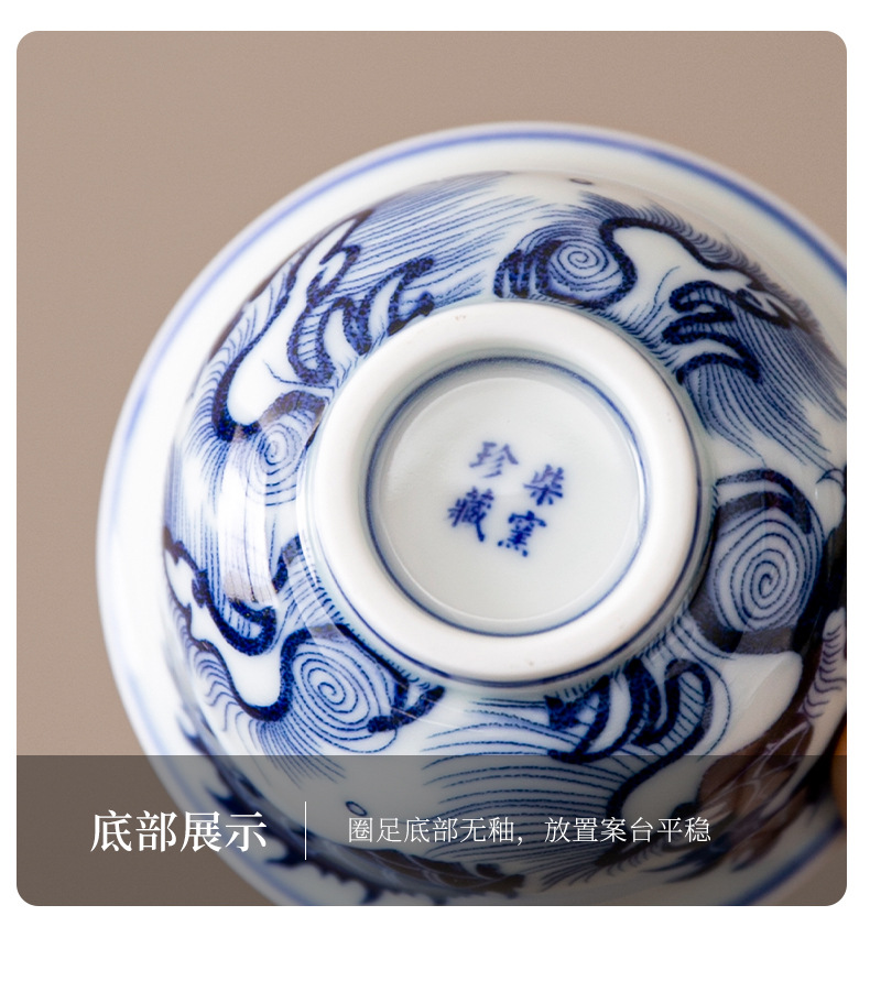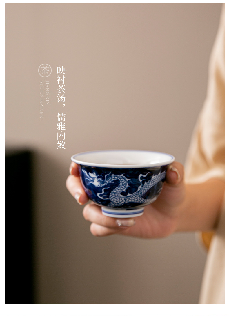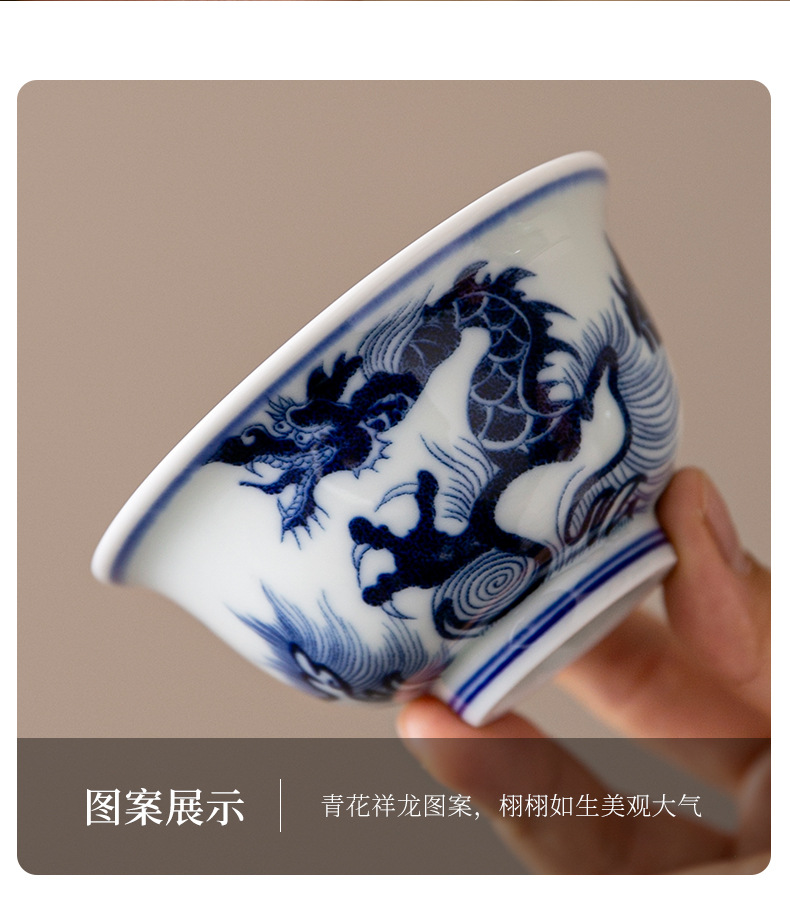 Cốc trà gốm sứ tráng men rồng xanh trắng cổ điển cốc trà Kung Fu chuyên dụng gia dụng cốc trà Kung Fu