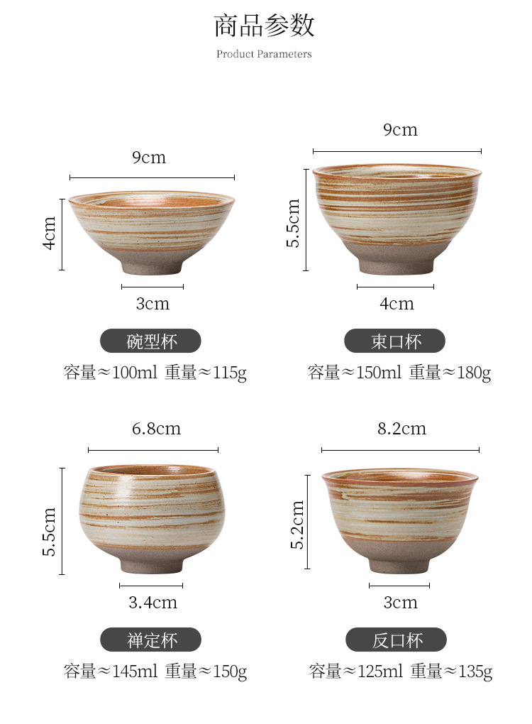 Cốc trà gốm thô, cốc chủ nhân, Bộ trà Kung Fu gió tuyệt đẹp, cốc đơn, cốc trà gốm sứ, cốc trà ren thủ công kiểu Nhật