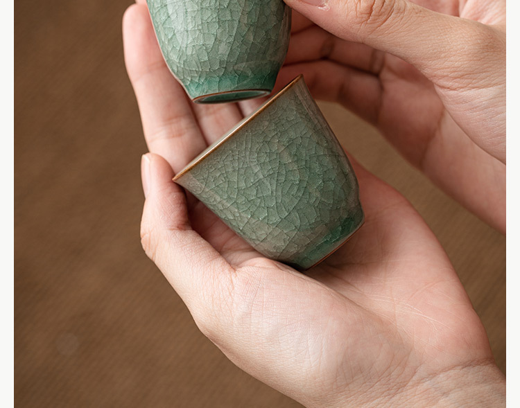 - Cốc trà hoa băng Ru Kiln cốc chủ nhân cốc đơn bộ trà công phu gốm sứ mở cốc trà gia dụng