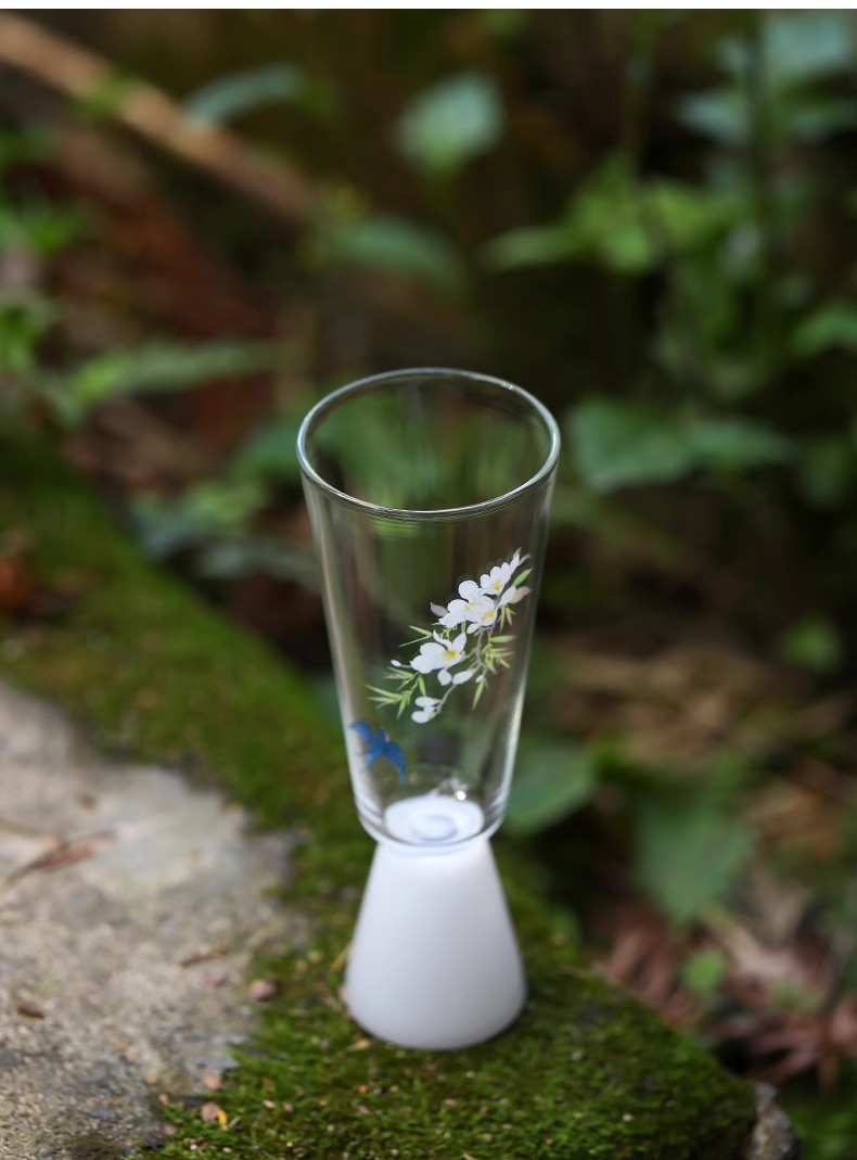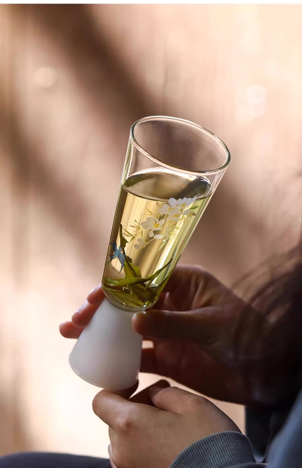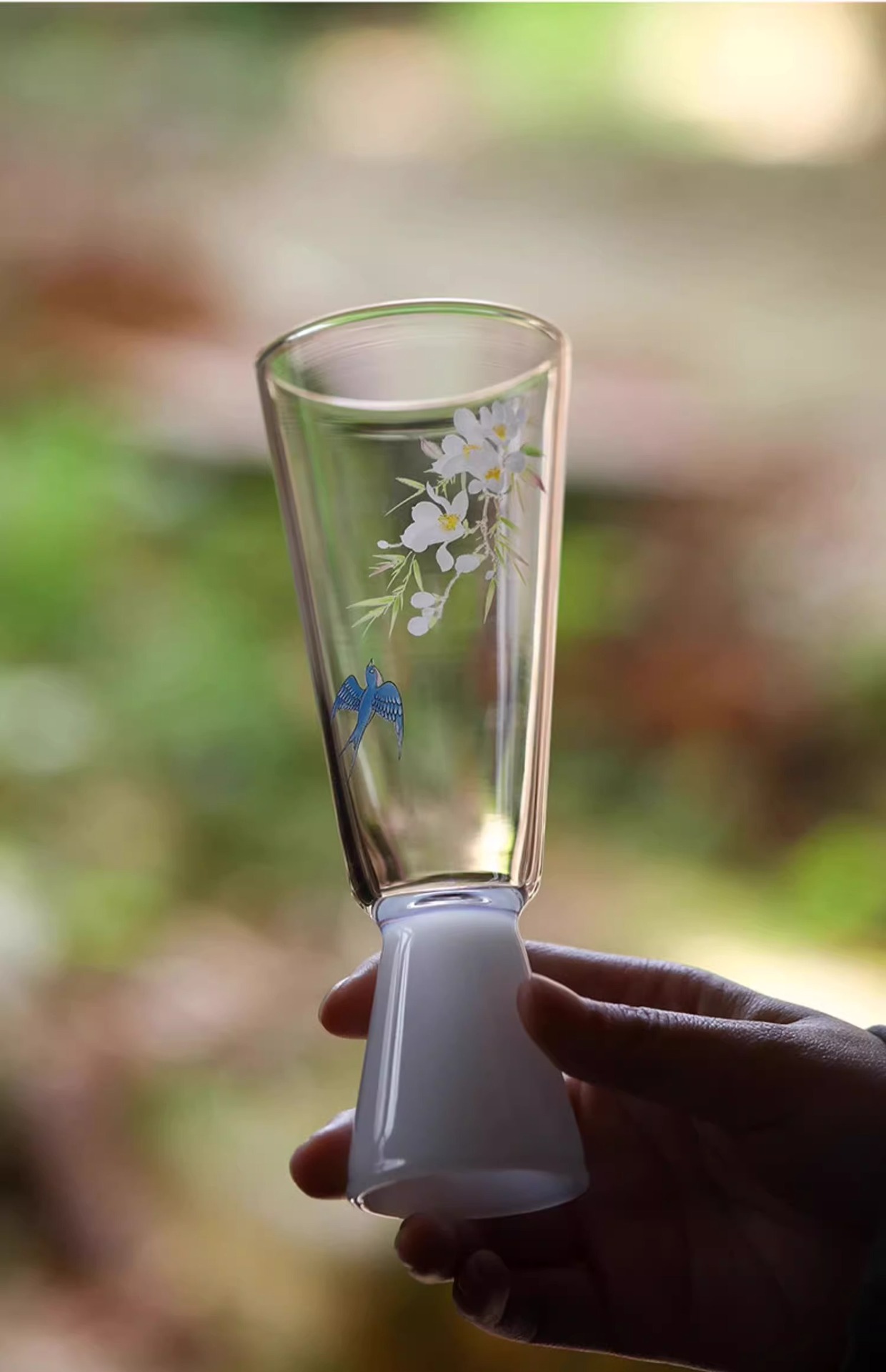 Cốc Trà Hoa Mộc Lan chân cao cốc thủy tinh chịu nhiệt cao gia dụng cốc chủ nhân chống bỏng cốc trà cao cấp Trung Quốc thủ công