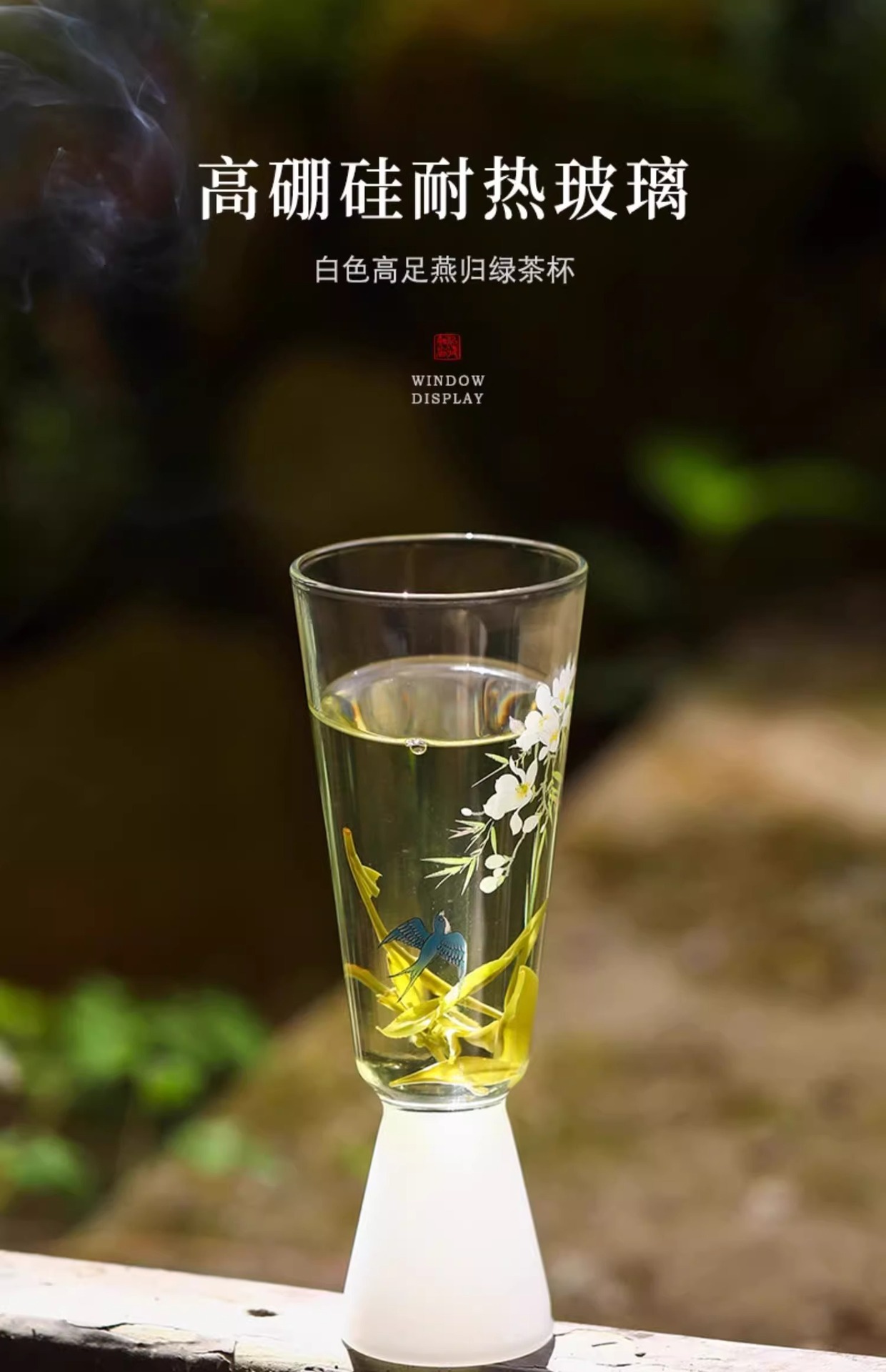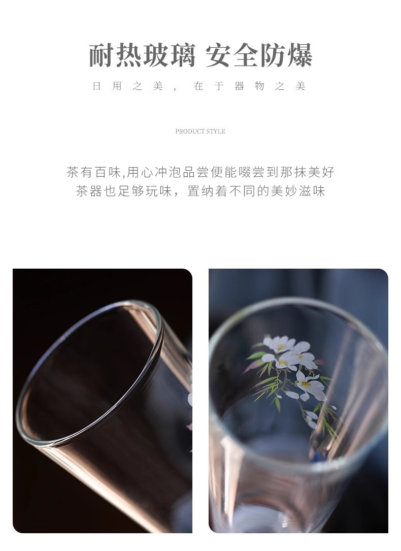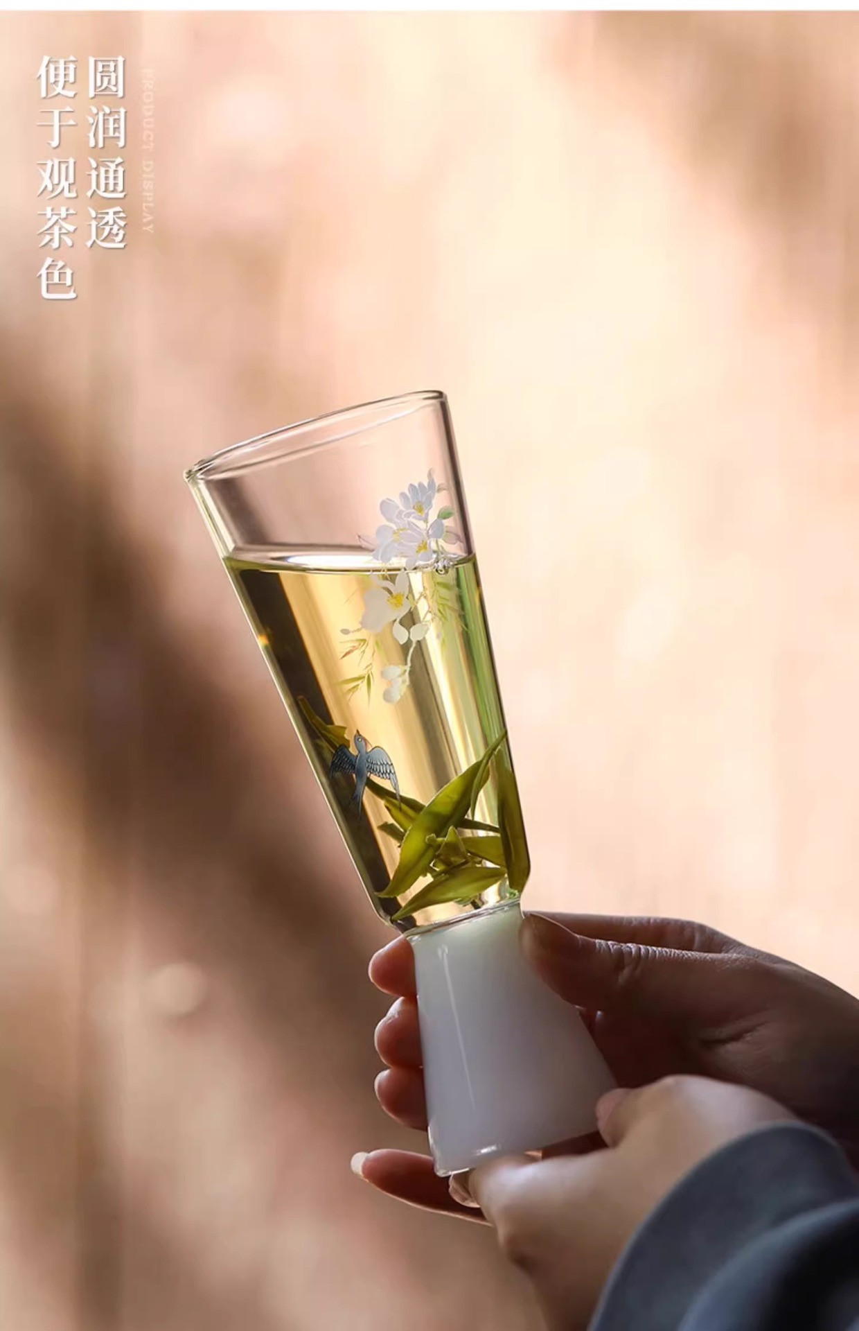 - Cốc Trà Hoa Mộc Lan chân cao cốc thủy tinh chịu nhiệt cao gia dụng cốc chủ nhân chống bỏng cốc trà cao cấp Trung Quốc thủ công